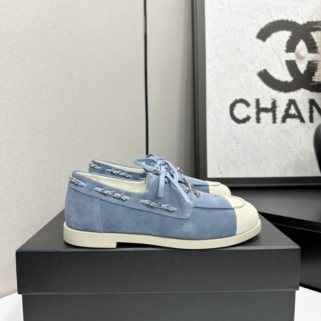 Chanel light blue color-blocked casual shoes with chain embellishments
