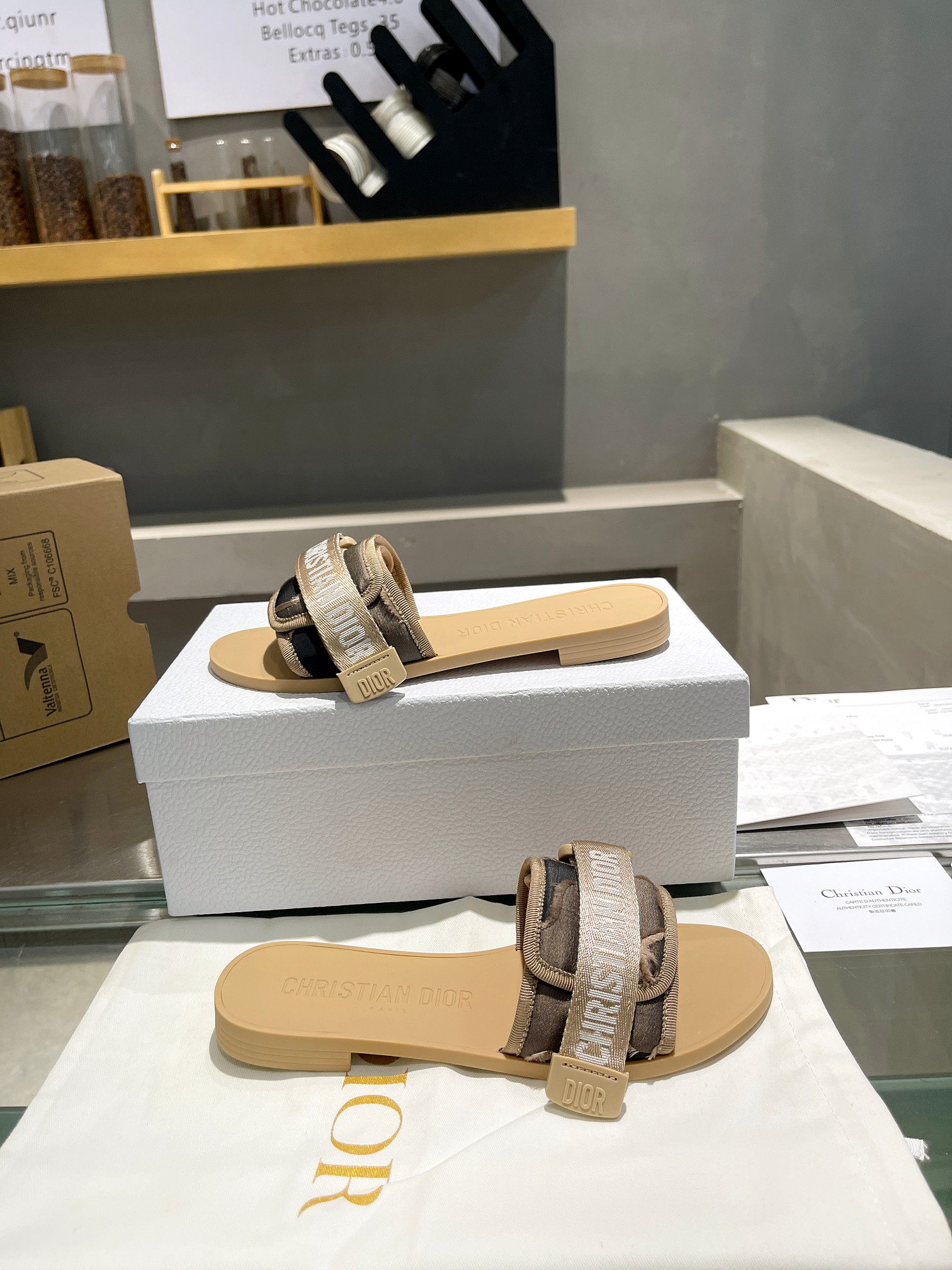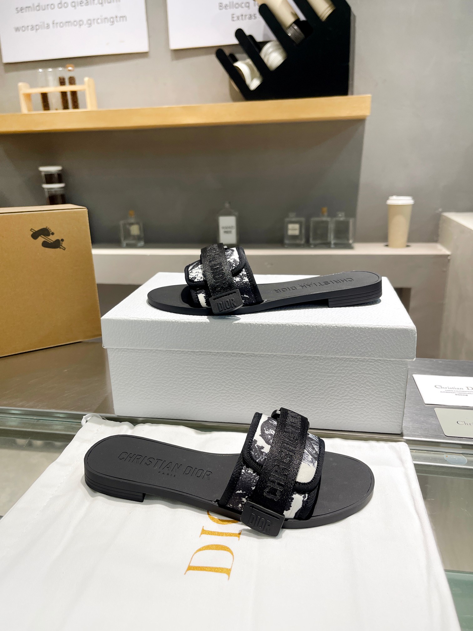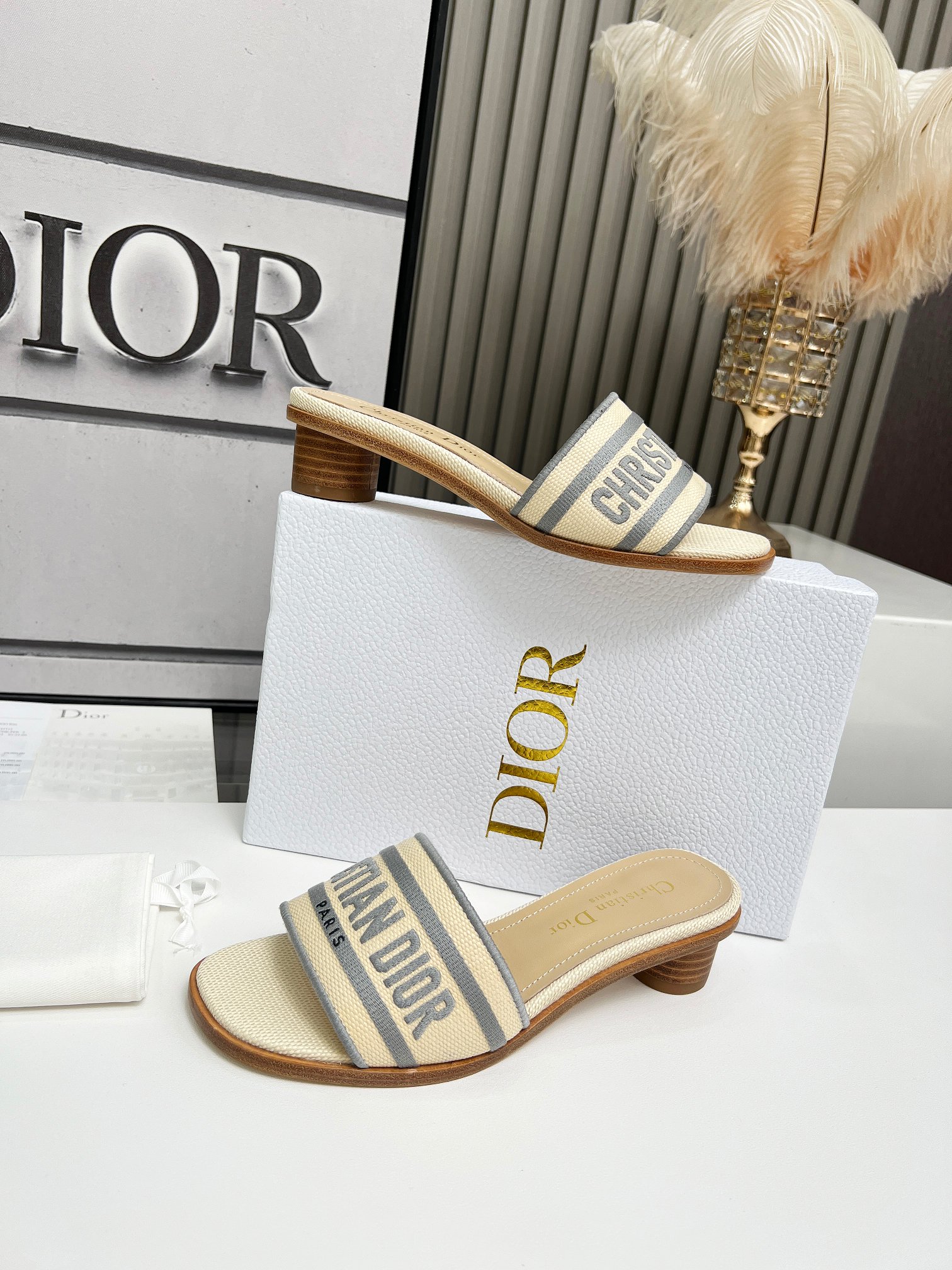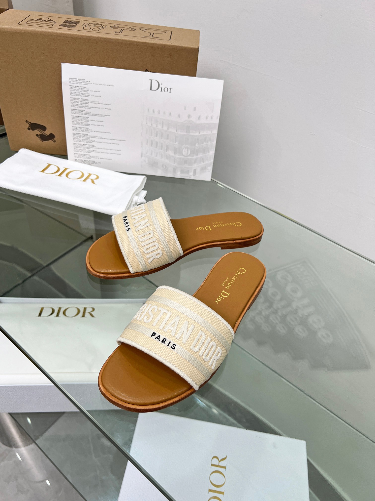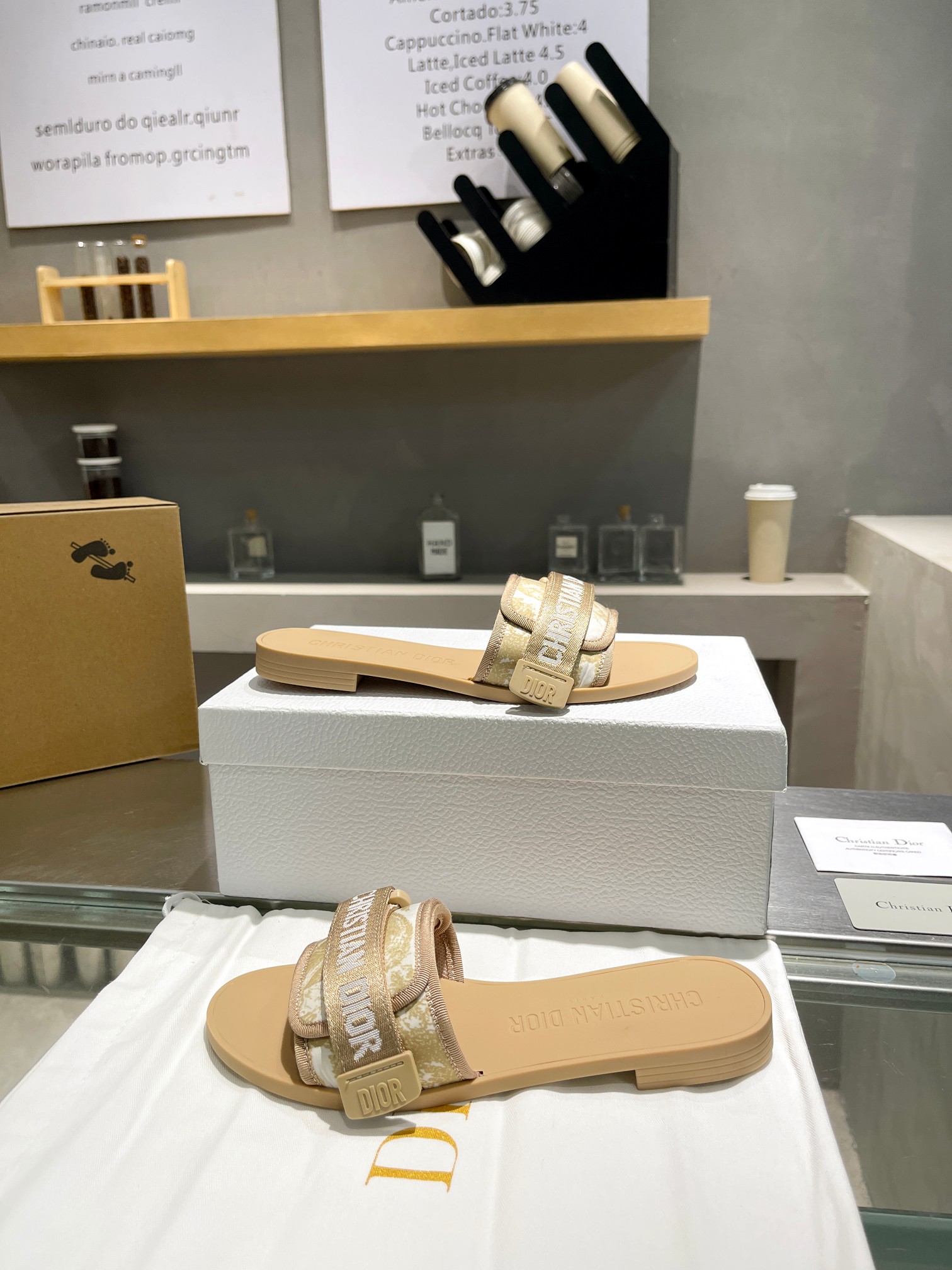$154.87Upper: Features contrasting off-white and light brown woven straps (made of the same cotton blend fabric as the official store), paired with a three-dimensional “CHRISTIAN DIOR PARIS” logo. The soft color scheme exudes a sophisticated, low-saturation aesthetic;