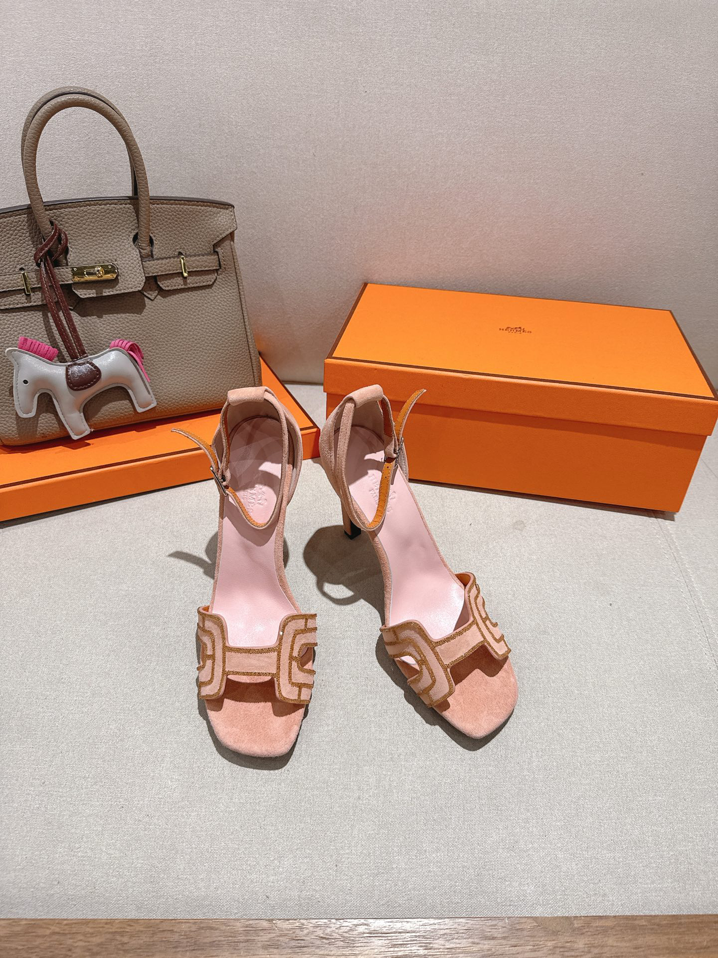 Design Features: These sandals feature a stiletto heel approximately 105mm (10.5cm) high, an upper adorned with the signature silver “H” shaped strap (also known as the “Chaine d’Ancre” design), and an adjustable ankle strap.