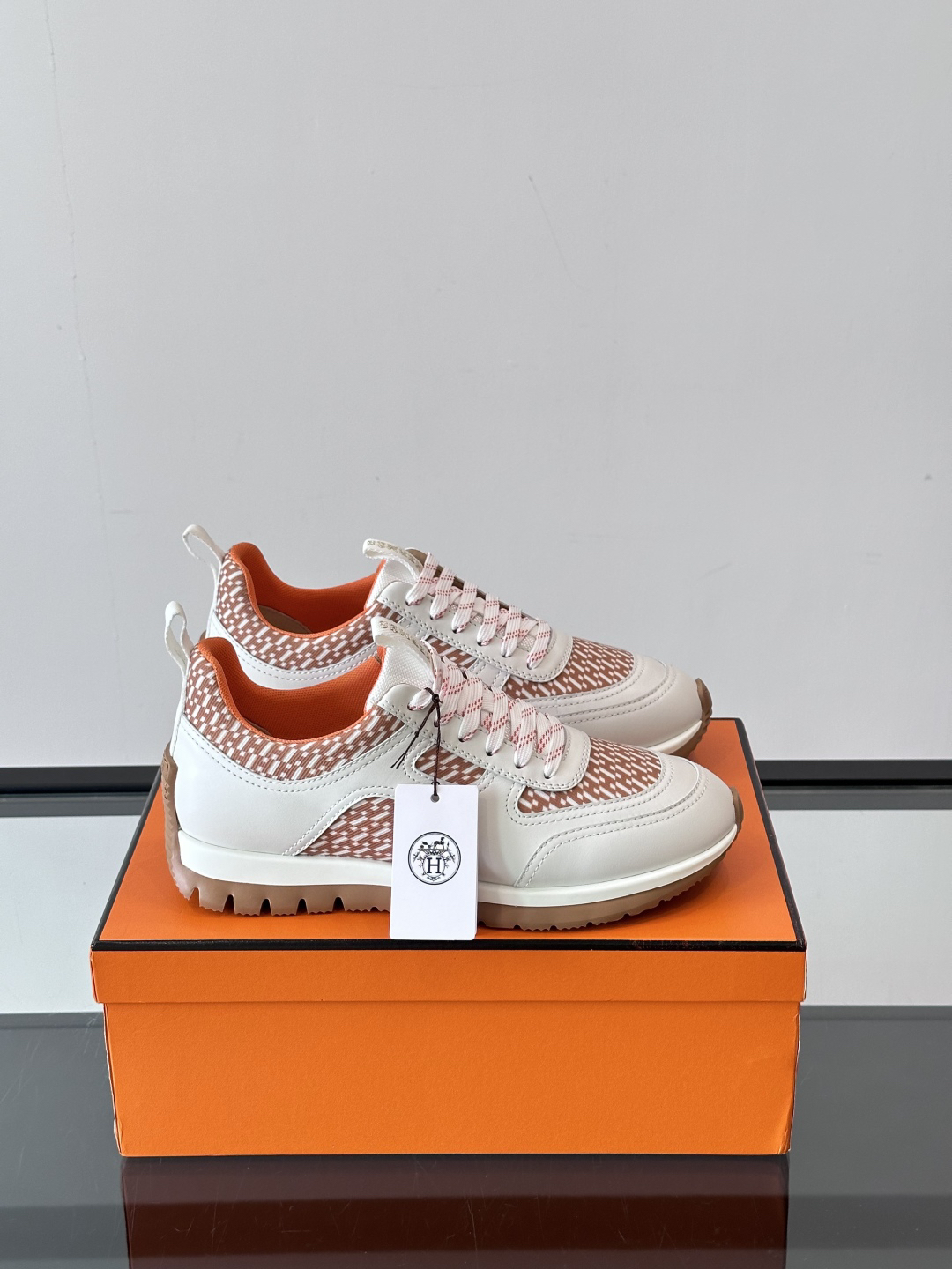 $136.03These casual athletic couple shoes feature high-tech canvas paired with cashmere suede, and a rubber sole adorned with a striking “H” letter. The italic design and vibrant colors continue the brand’s design philosophy. Enjoy effortless strides through the city streets.