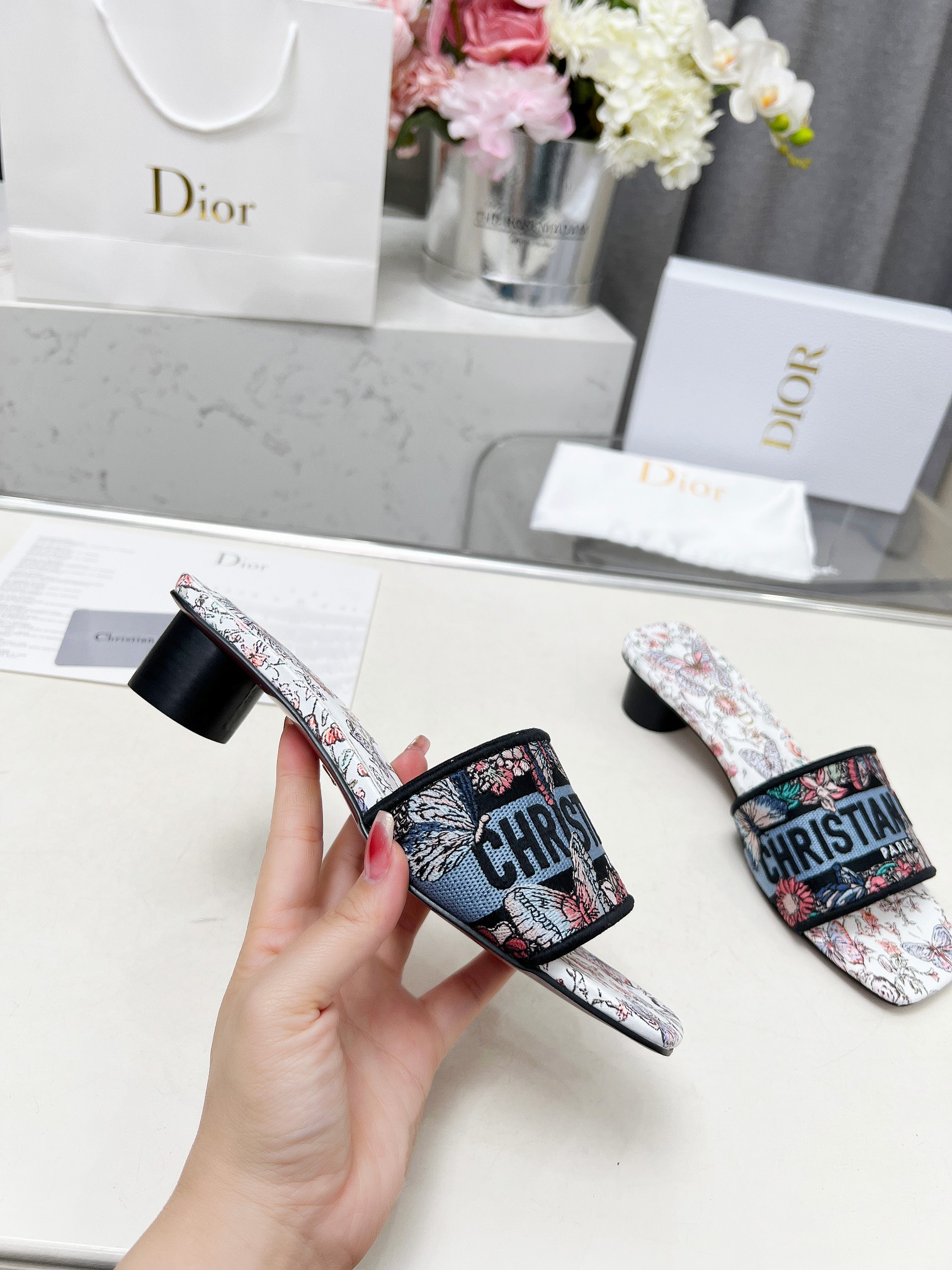 Dior Garden Butterfly & Floral Logo Mules