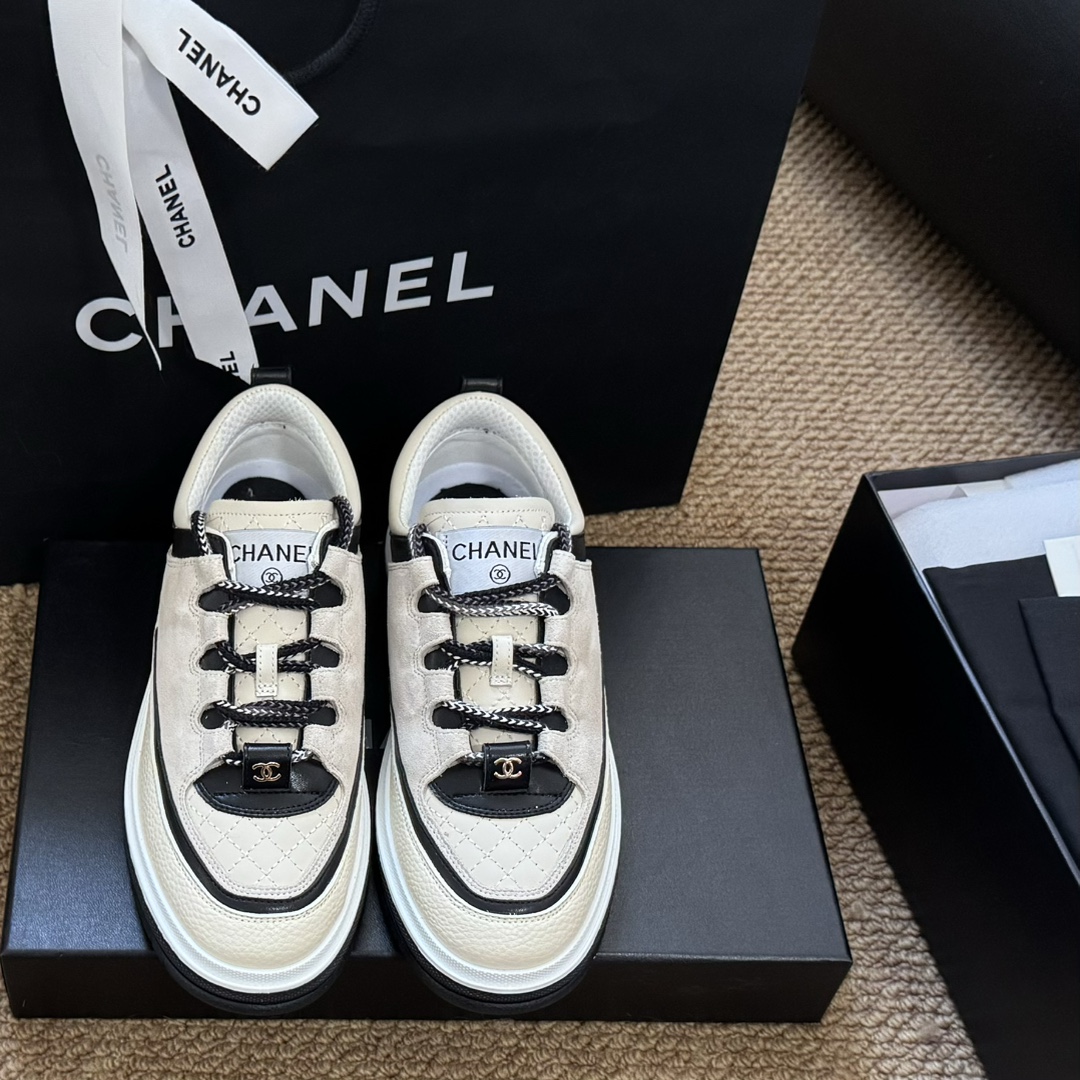 Chanel Panda Color Light Diamond Quilted Hidden Style Tennis Shoes ⚾️ Baseball Shoes