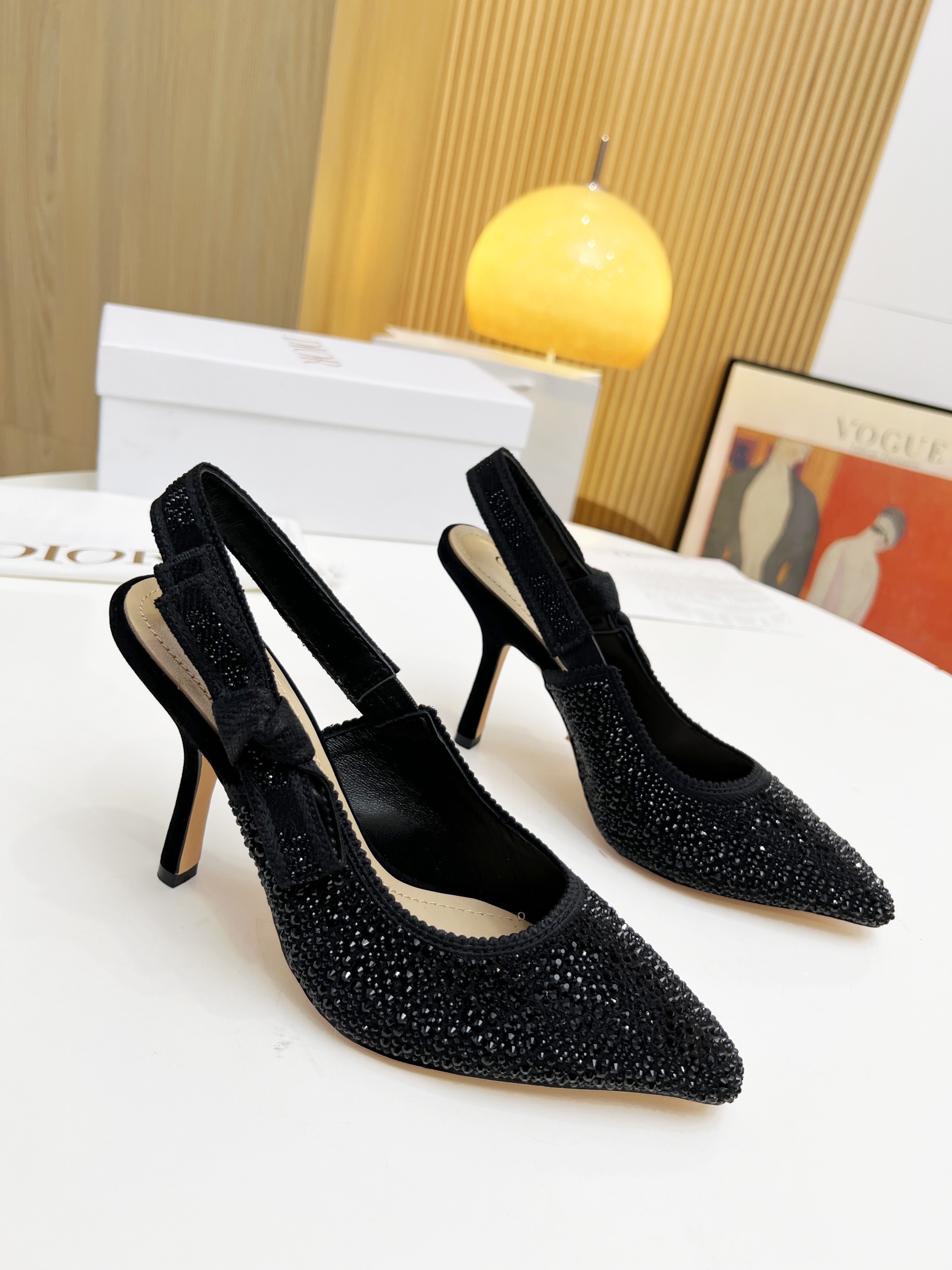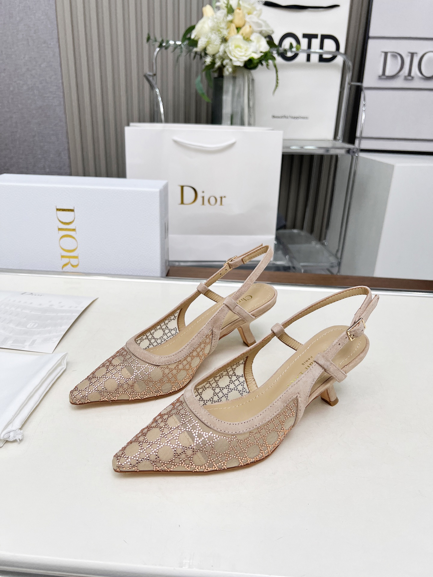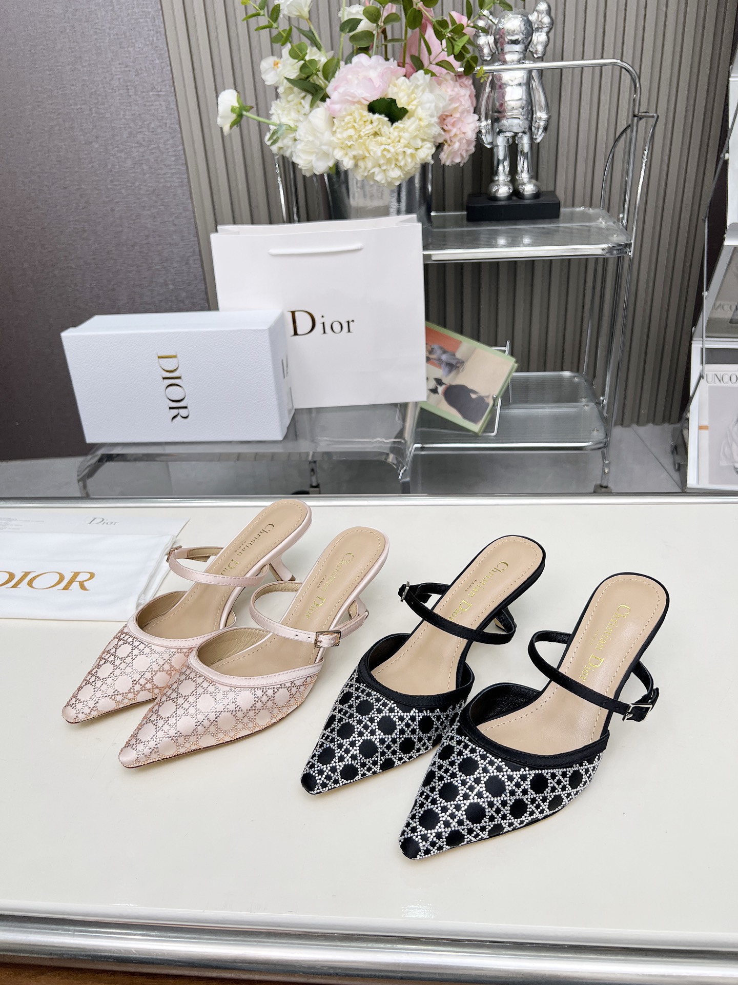 Embellishing: A matching bow at the toe, centered with a pearl buckle (a signature Dior element), combining elegance and sophistication;