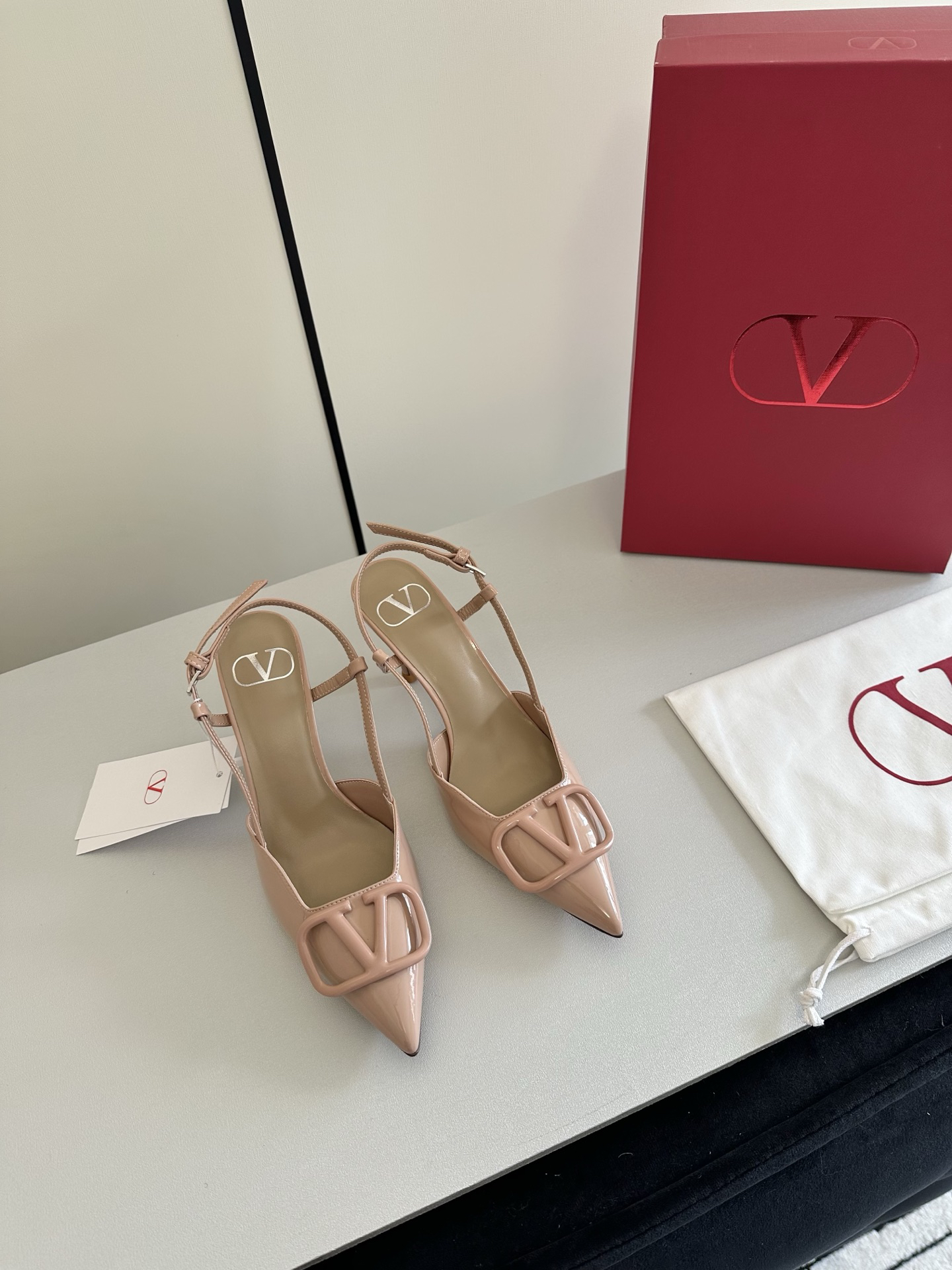 Features: The upper is adorned with an oversized VLogo signature accessory, and high-frequency welding is used to cover the patent leather details in the same color. These shoes feature a stiletto heel, typically available in heights of 80 mm (3.15 inches) or 40 mm (1.6 inches).Sizes: 5-10