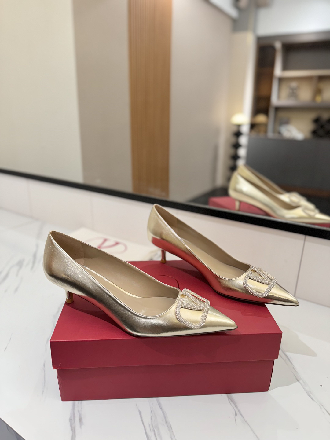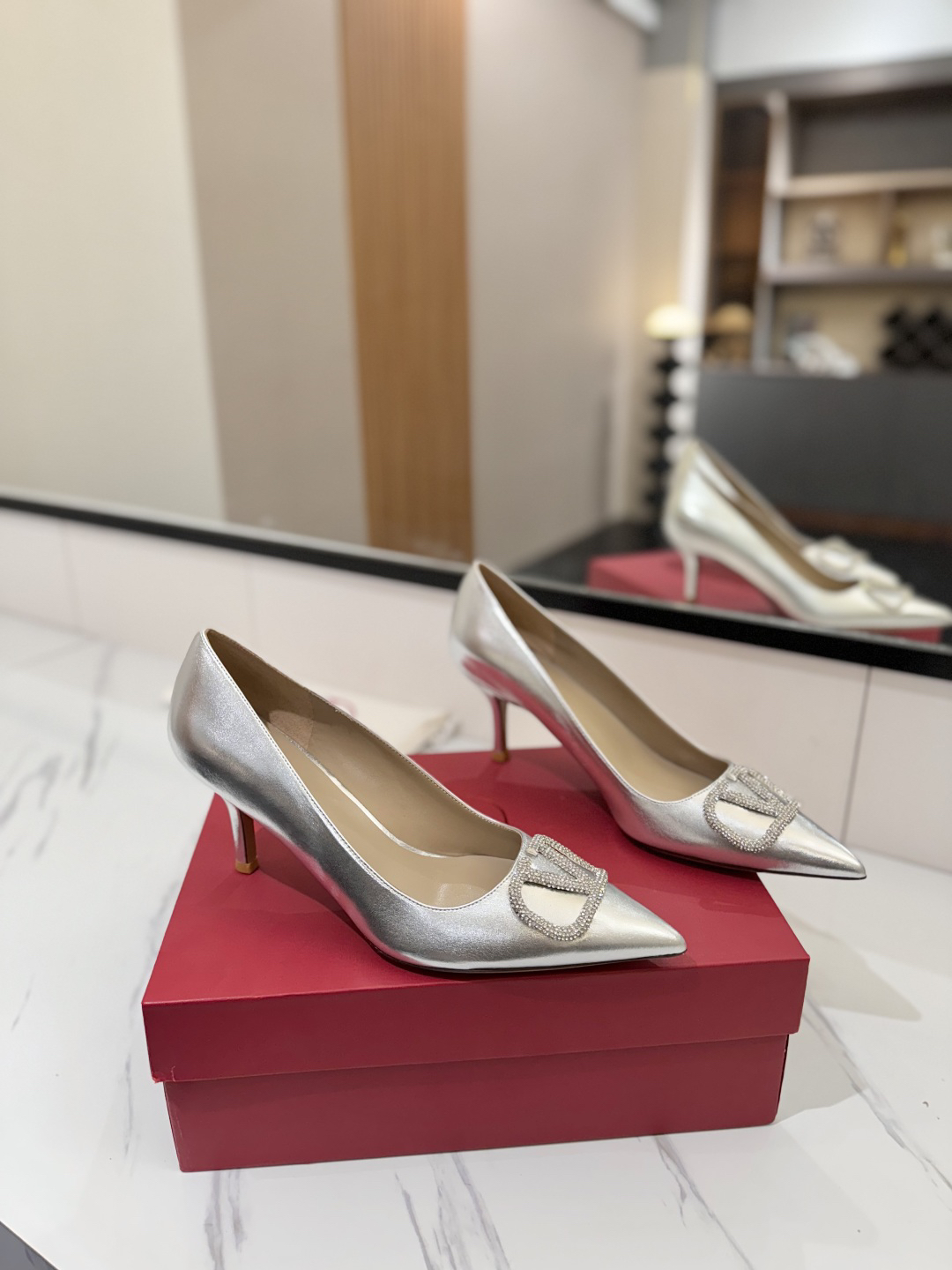 Valentino launches a new collection featuring pointed toes and V-shaped buckles.💝👉Valentino’s Latest Collection ♡ͥ 💯 Valentino’s new season replaces traditional rivet elements with bronze (diamond-encrusted) V-shaped buckles, simplifying the design and making it more refined and timeless. Suitable for all ages, especially for slender feet! The new season lives up to expectations! Worth buying!