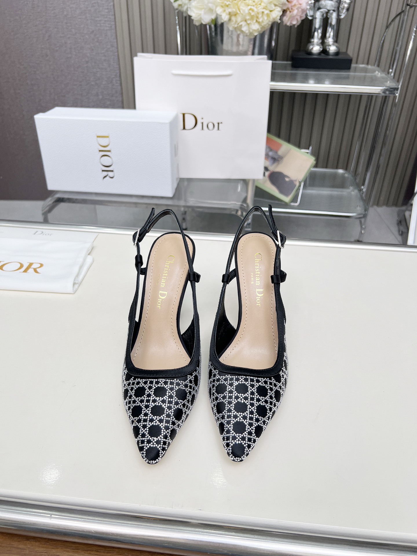 Dior’s latest 2025 Spring/Summer collection of rhinestone-embellished high heels and sandals featuring a jacquard rhinestone pattern.