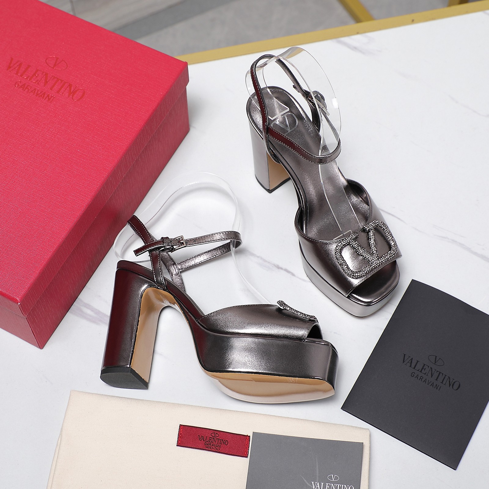 $177.05🔥🔥🔥💯💯💯 Original Valentino 2025SS New Arrival Metal Logo High-Heeled Platform Sandals! Top-quality original purchase! Exquisite last design, perfect side curve!