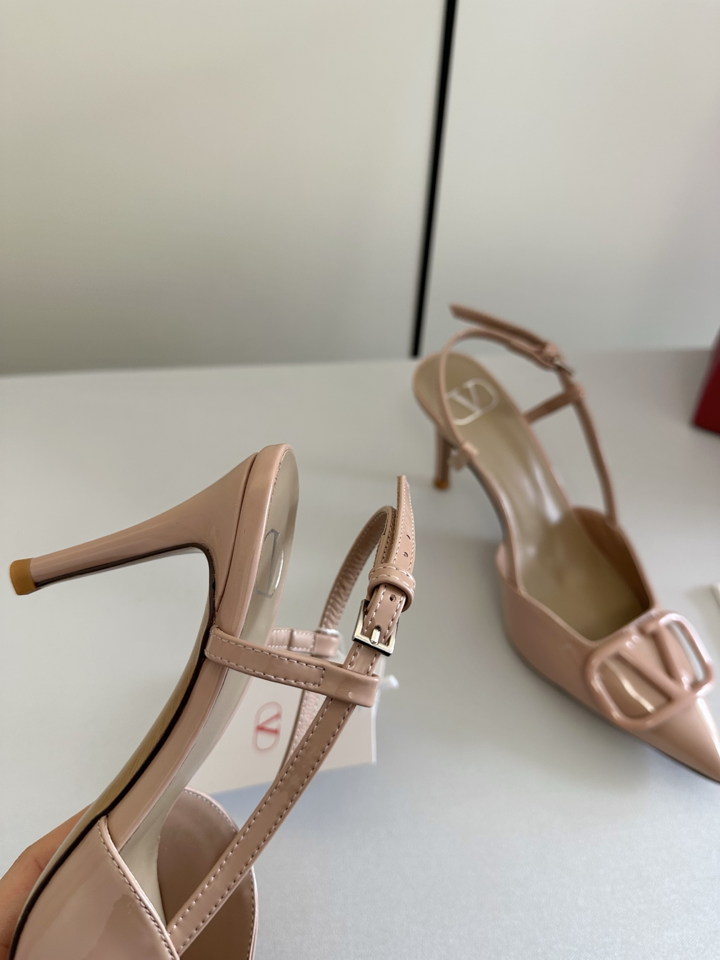 Valentino Classic Vlogo Patent Leather Pointed Toe Versatile High-Heeled Sandals✔️