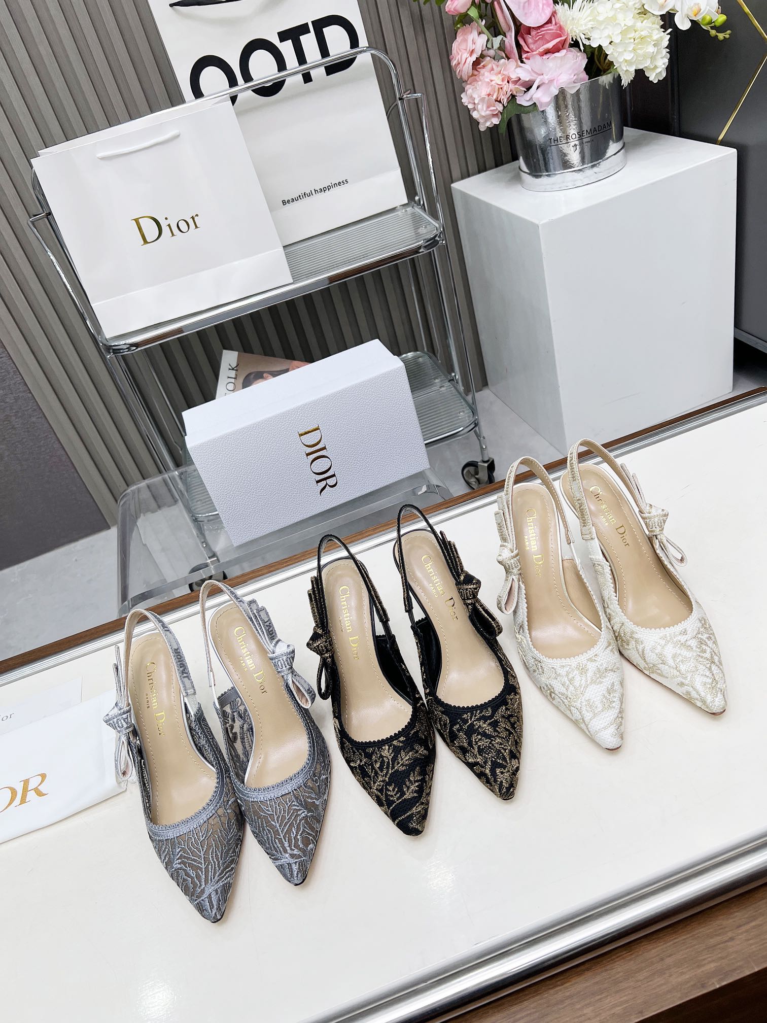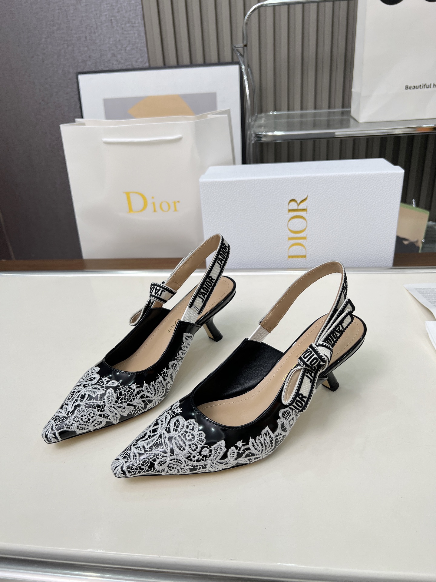 Dior Addict Lace Satin Slingback Pumps