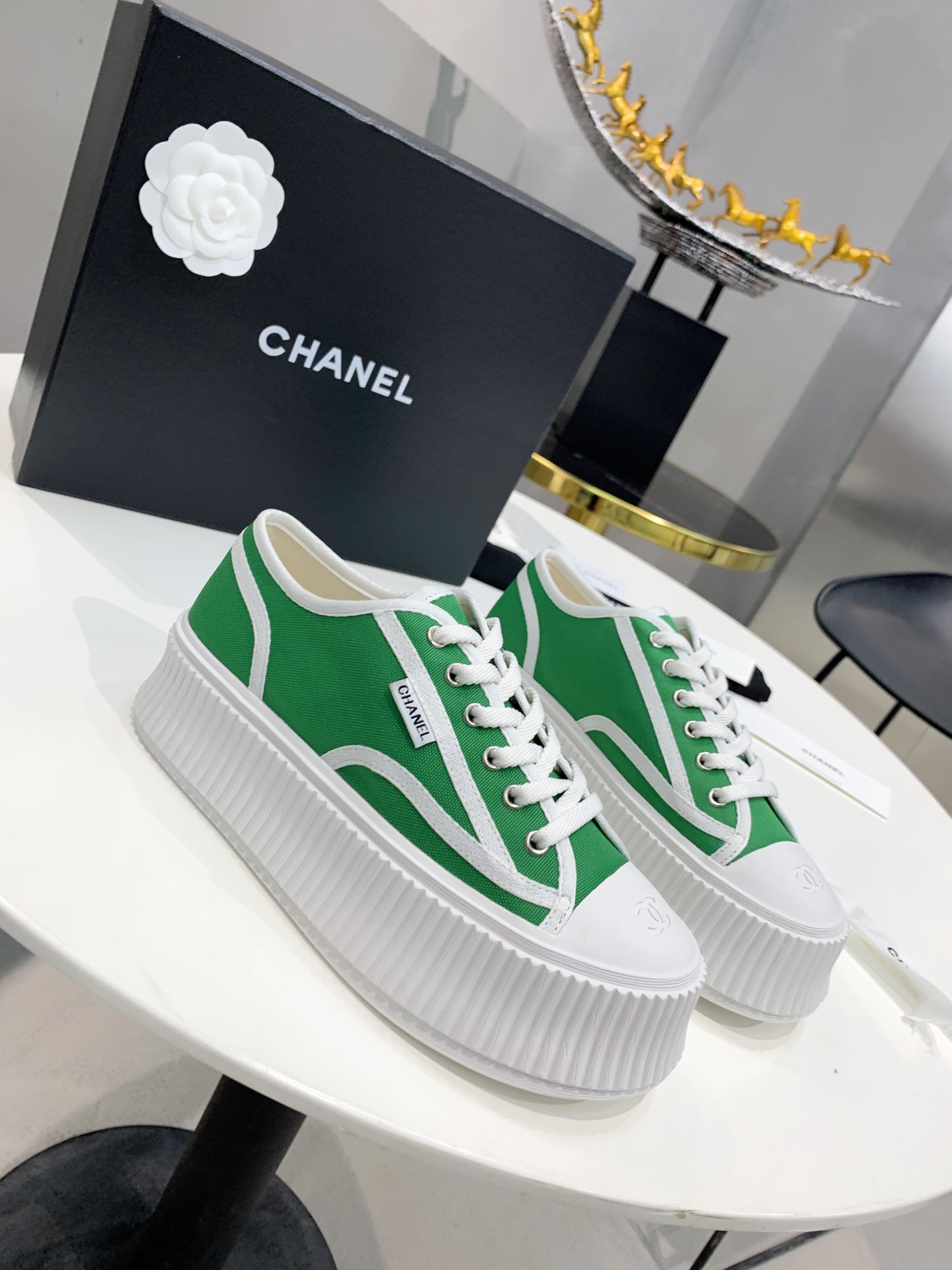 Chanel-style platform canvas shoes