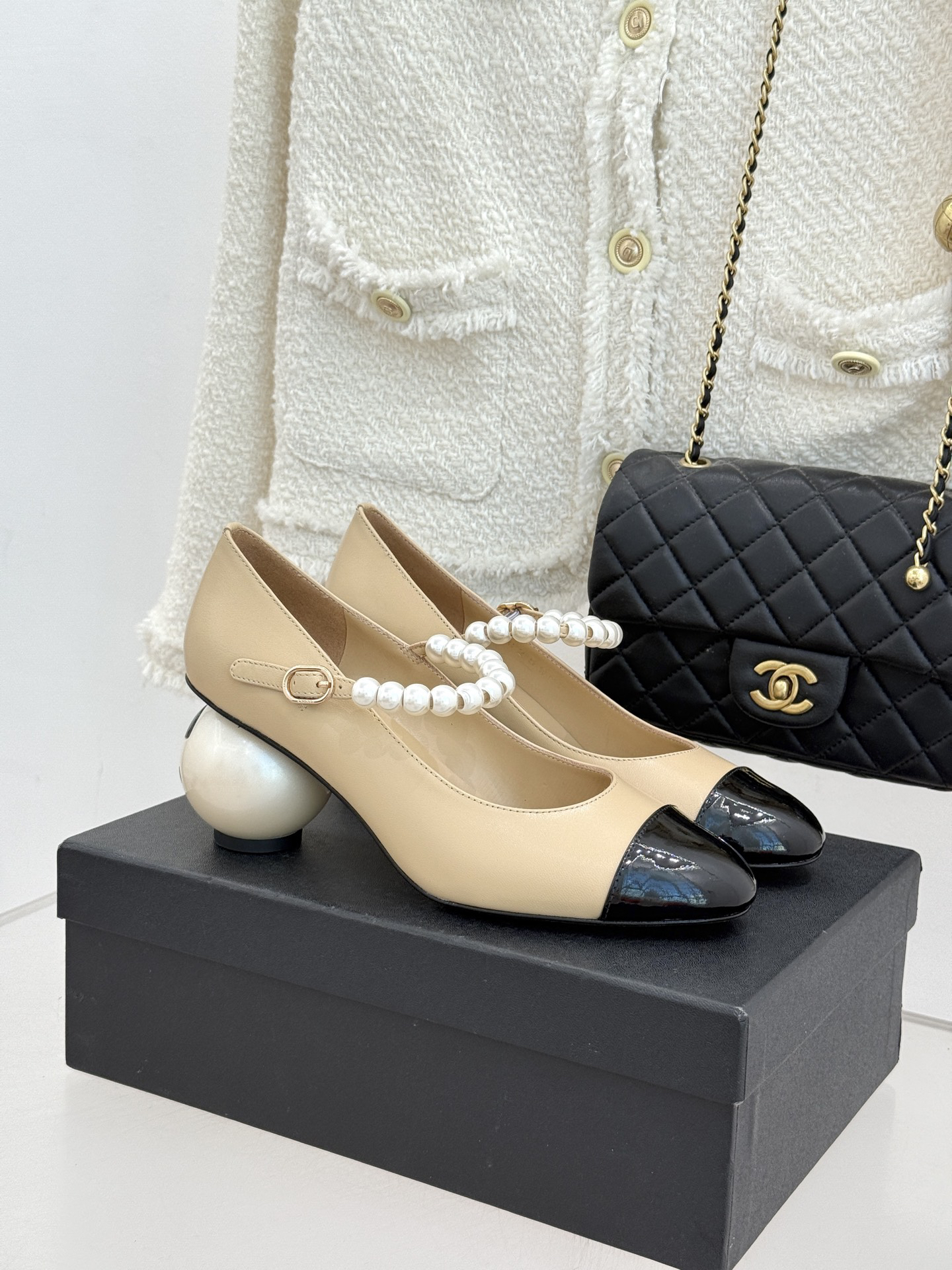 • CHANE*|The classic Chanel double C giant pearl heel