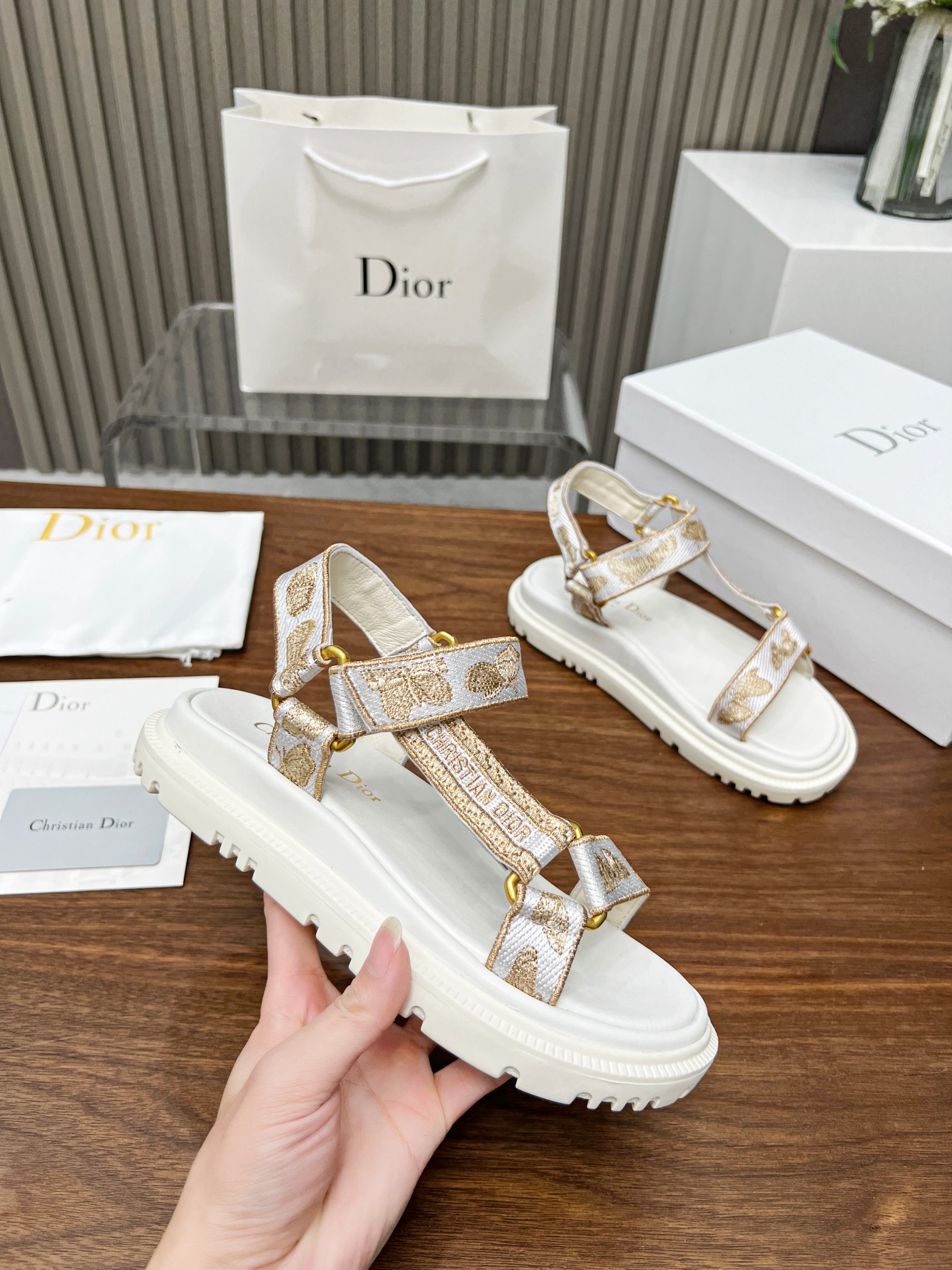 Dior Oblique Metallic Monogram Platform Sandals