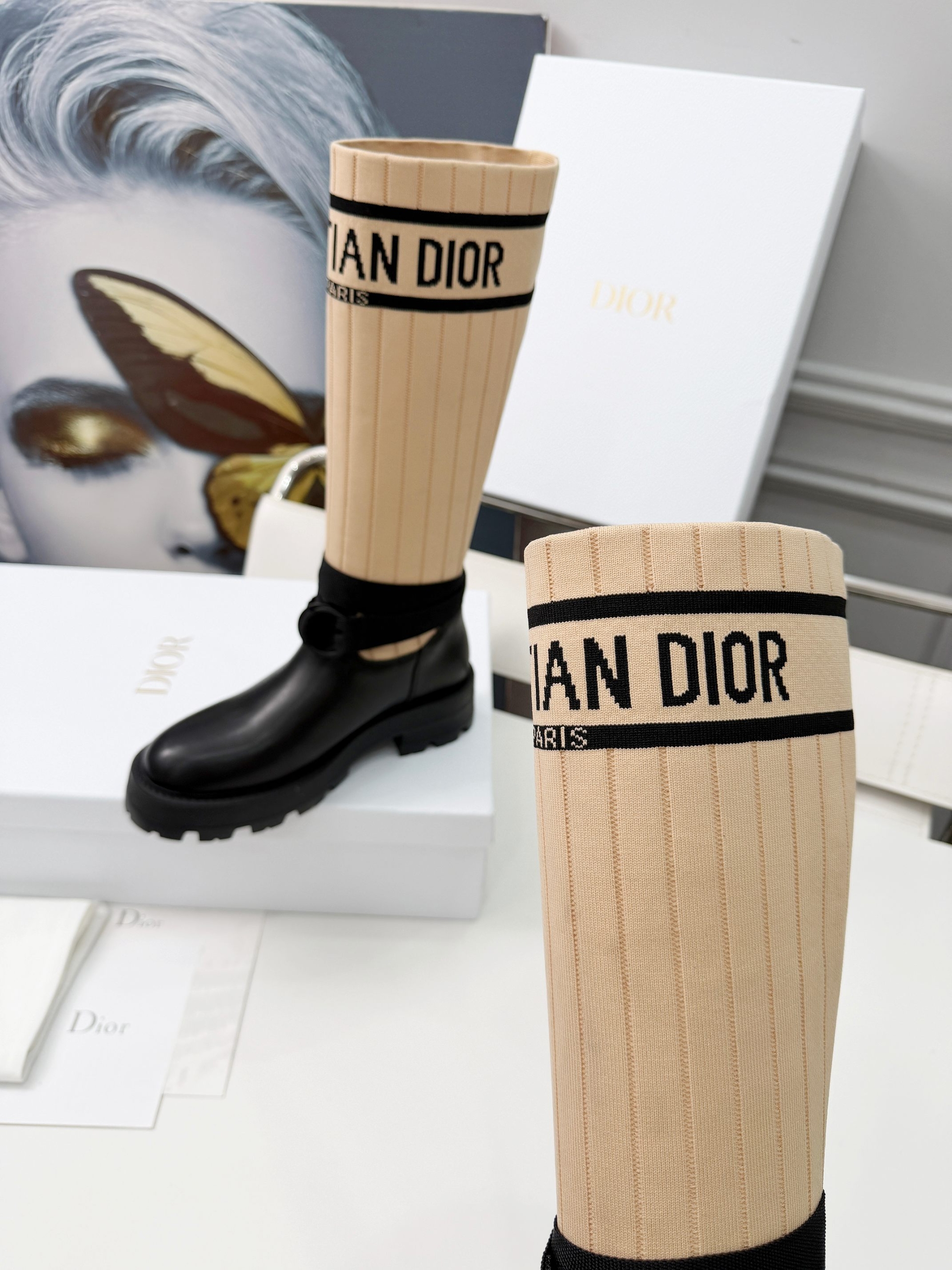 Details: Adjustable straps at the boot shaft to accommodate different leg sizes; the sole features Dior’s iconic star decoration, enhancing brand recognition.