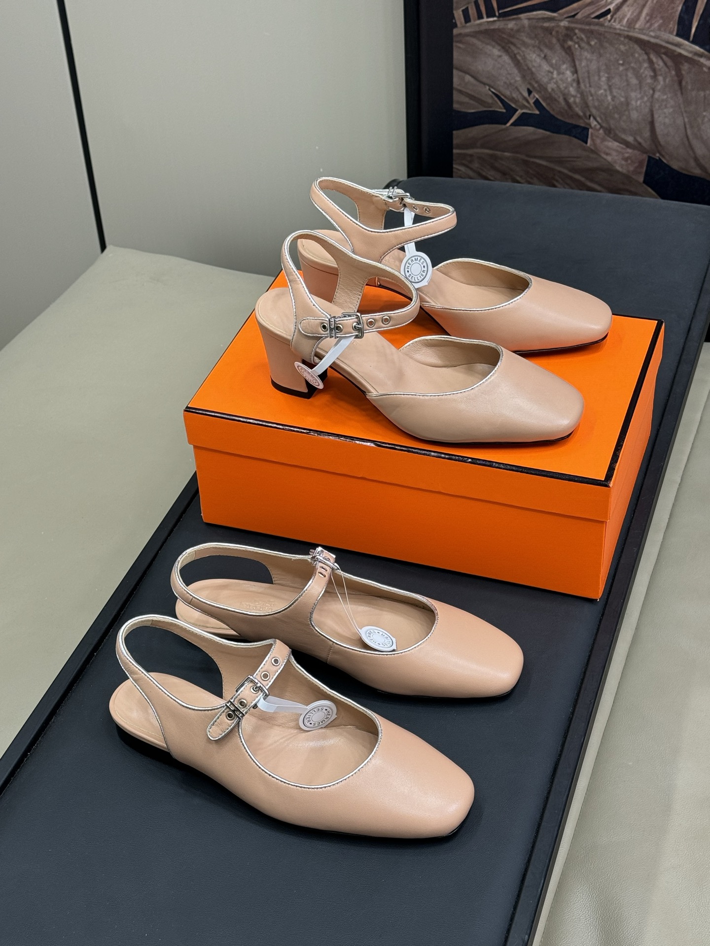 Material: Brown goatskin suede upper with a silver “H” logo buckle.