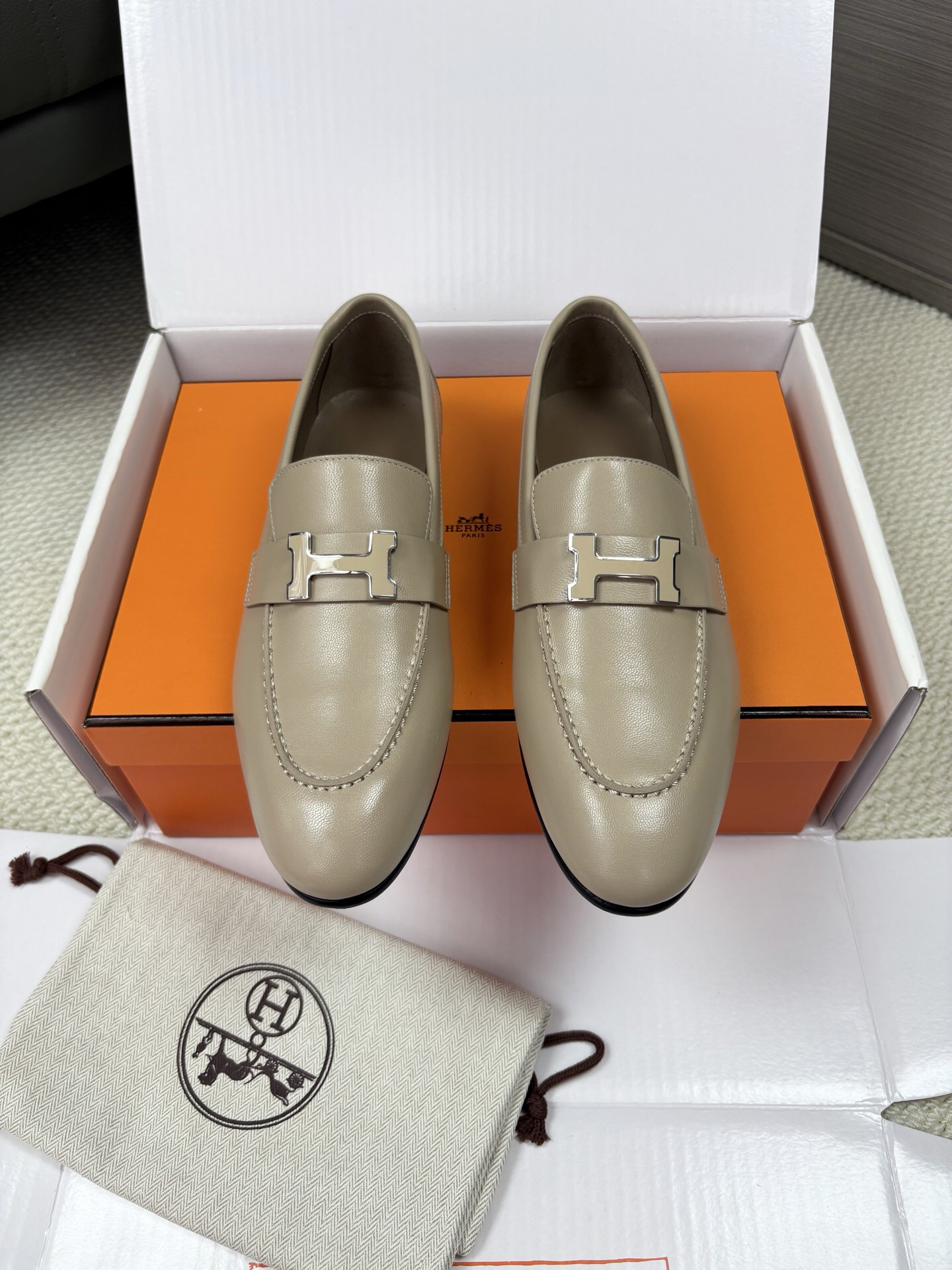 Features: These loafers are known for their signature “H” buckle; their classic and elegant design pairs well with various outfits. The sole is usually made of leather and features a rubber insole for comfort and slip resistance.