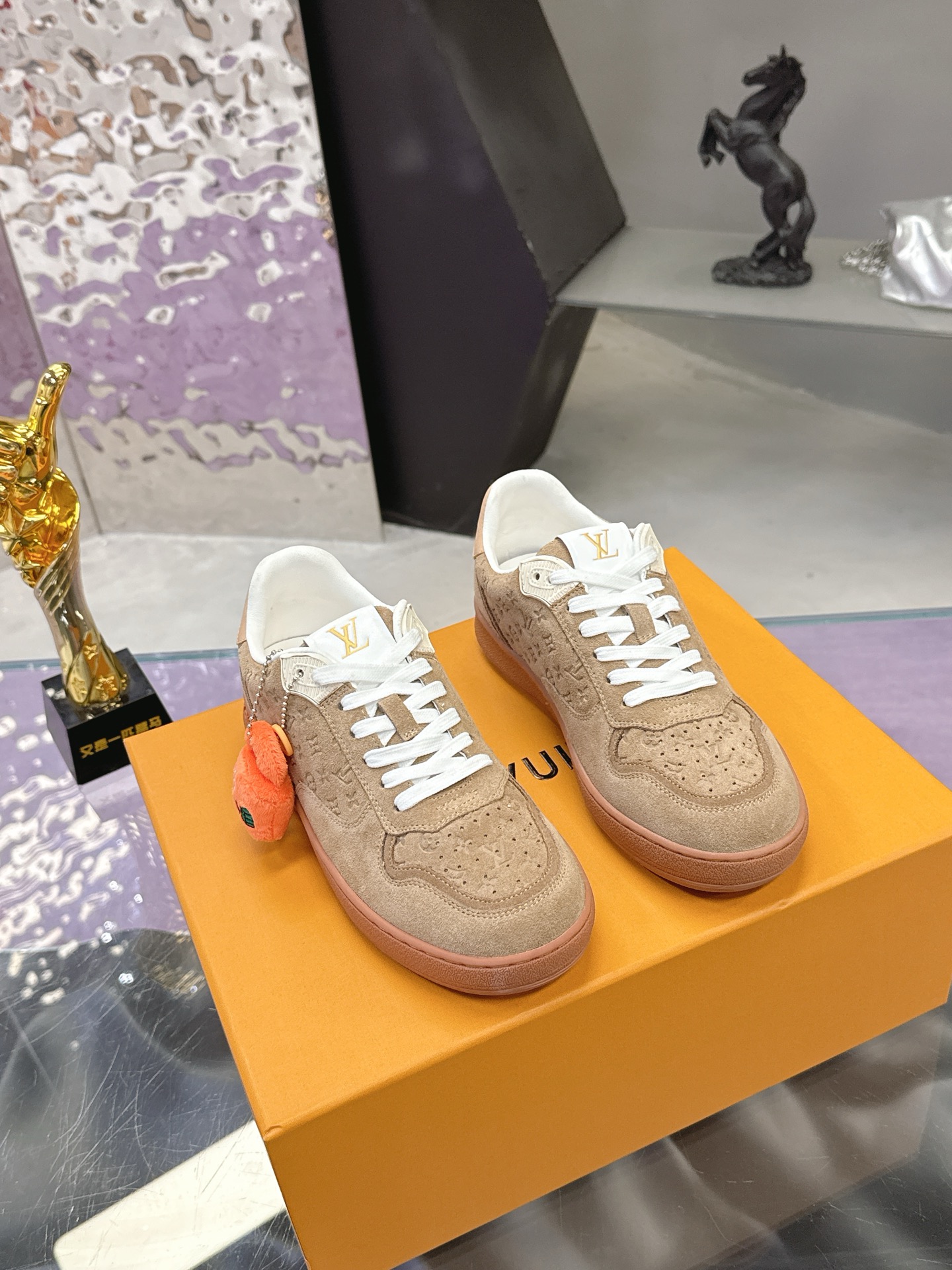 LV Initials logo tag on the tongue; perforated toe; Louis Vuitton signature logo on the outsole. Low-top casual sneakers