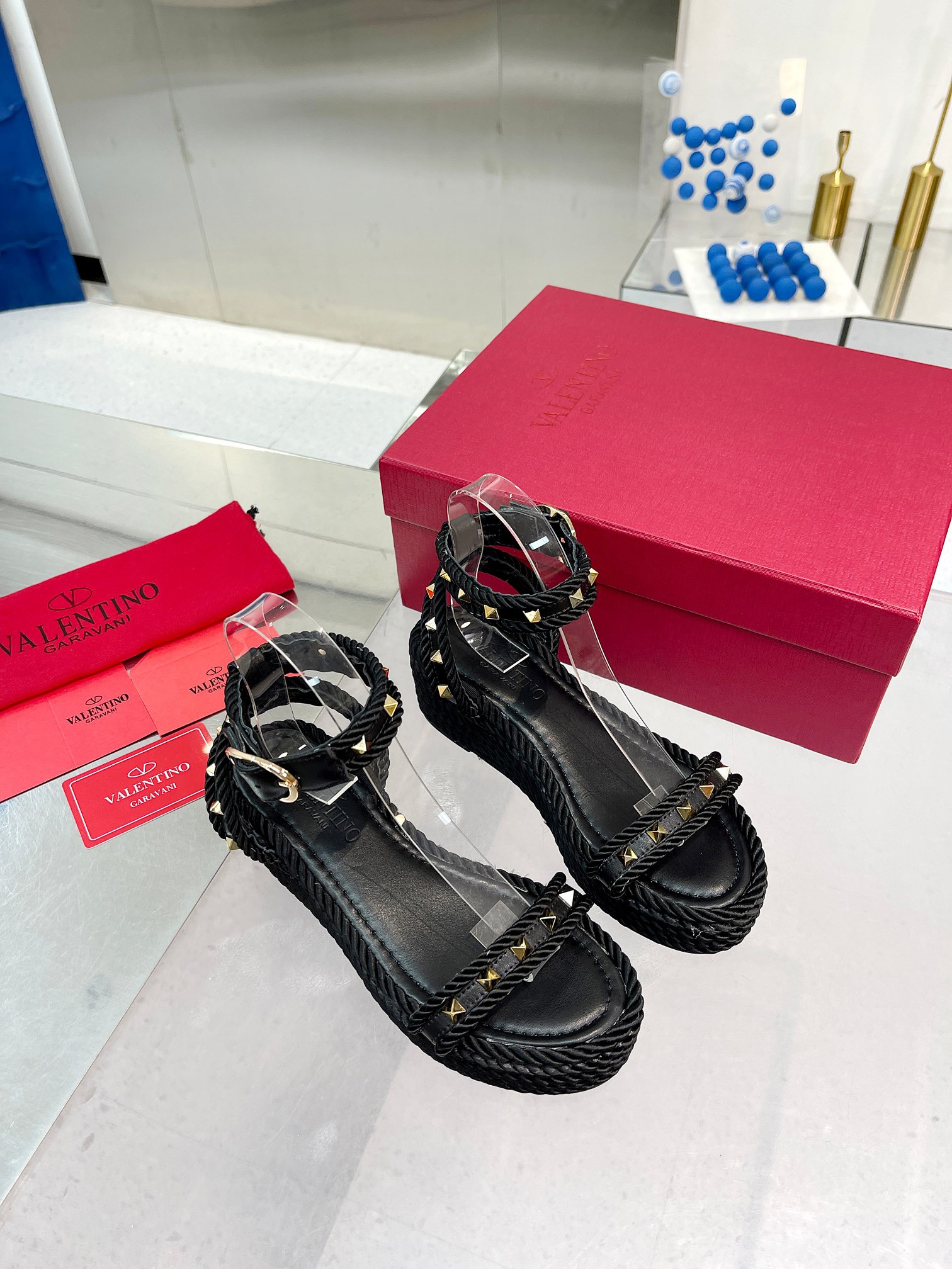 The shoes you see are Valentino Garavani Rockstud Flatform sandals.