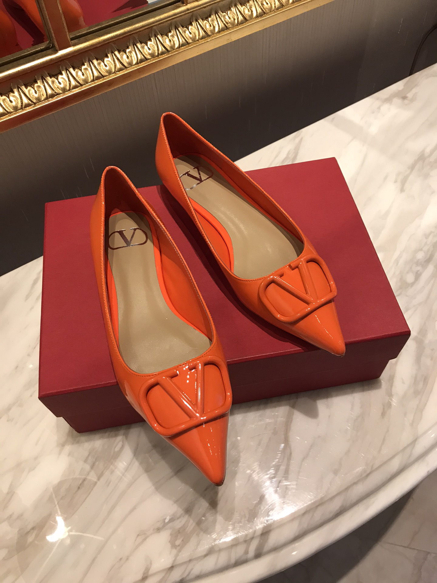 The shoe you see is the Valentino Garavani VLogo iconic patent leather flat.