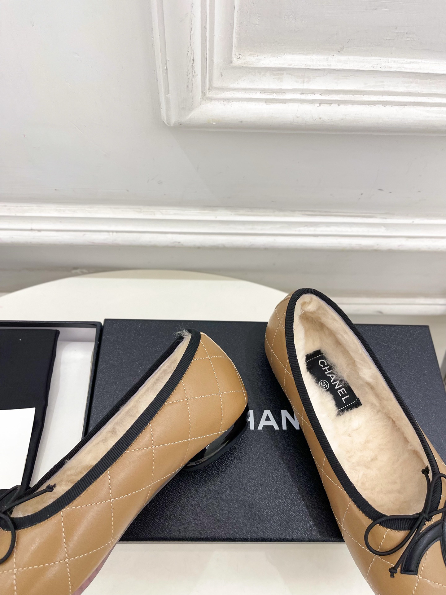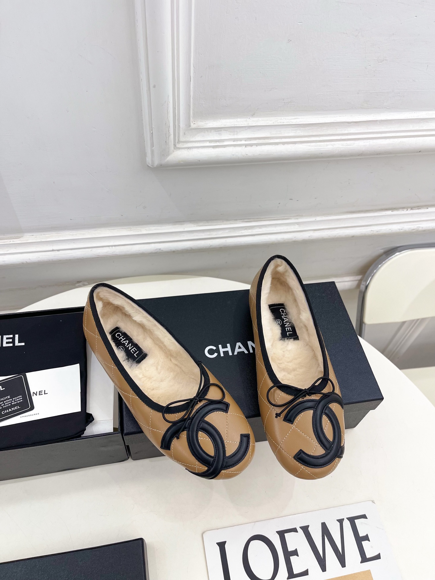 2025 Autumn/Winter New Arrivals: Classic Runway Style Chanel Double C Wool Quilted Bow Ballet Flats