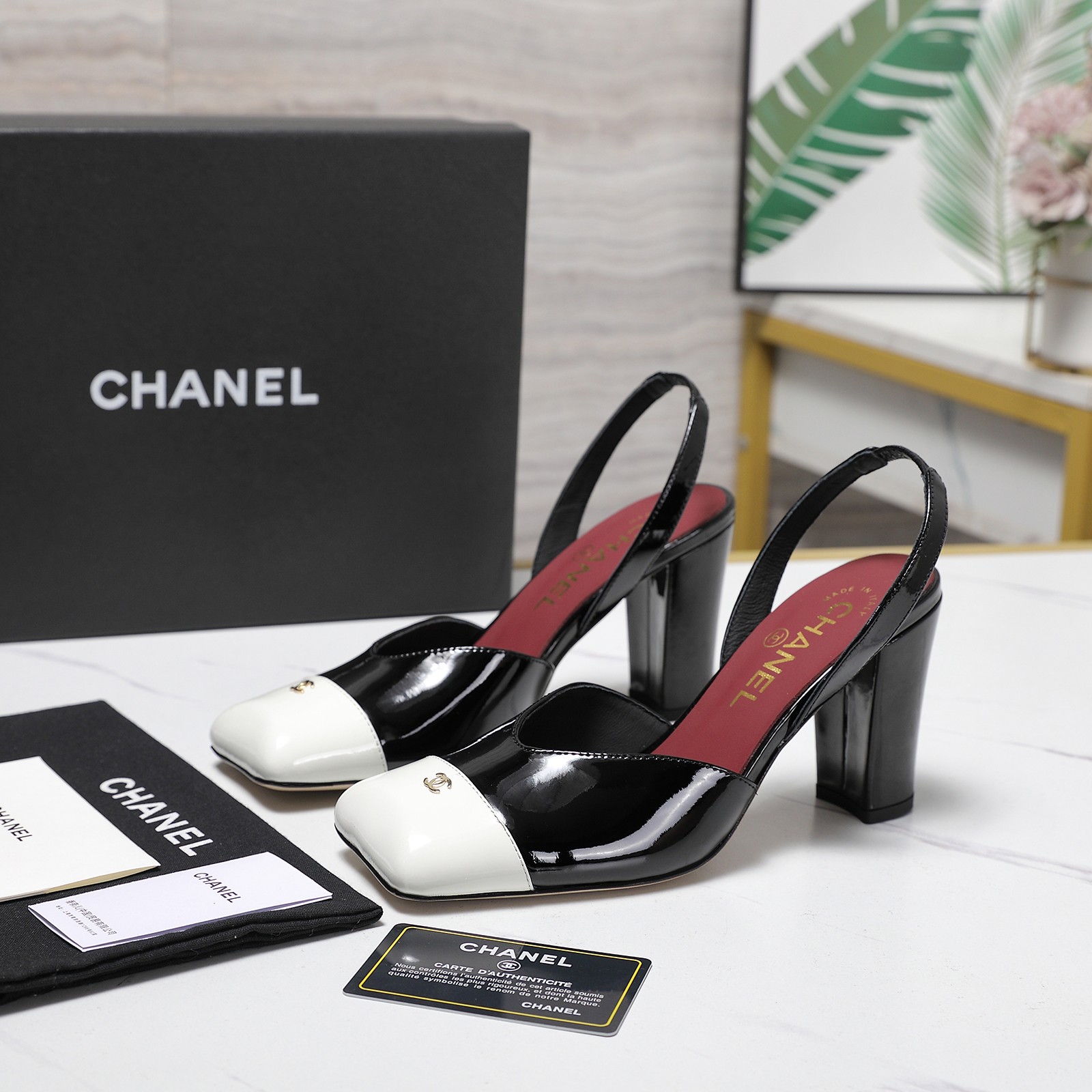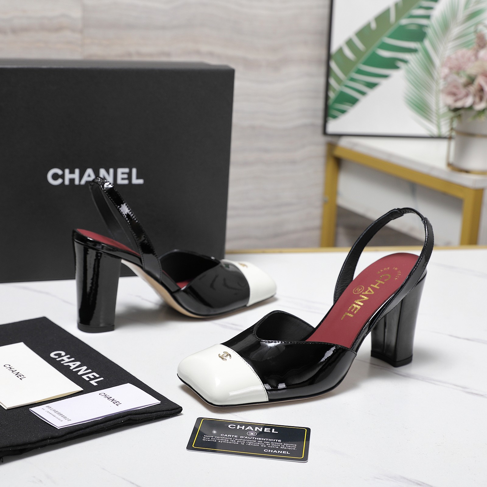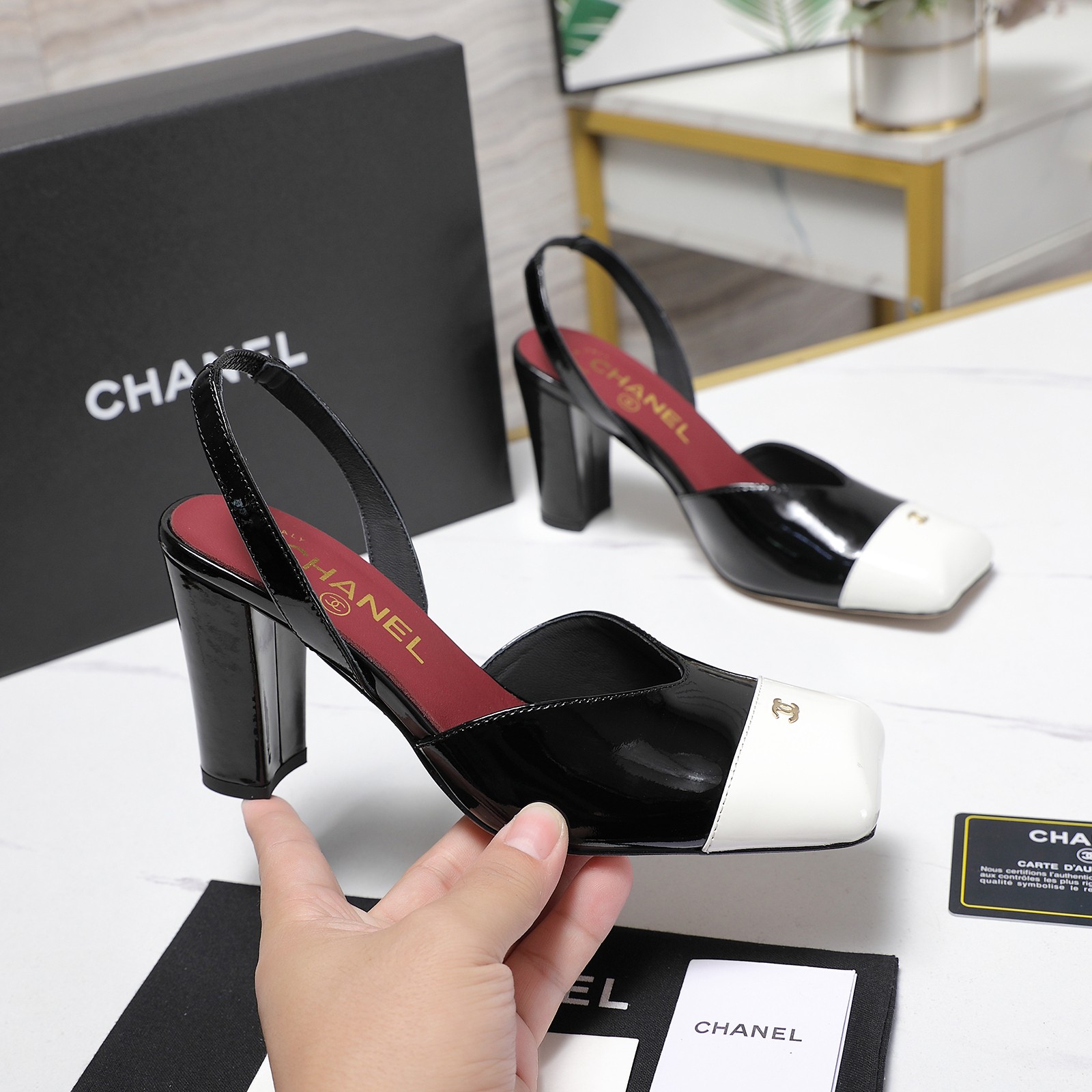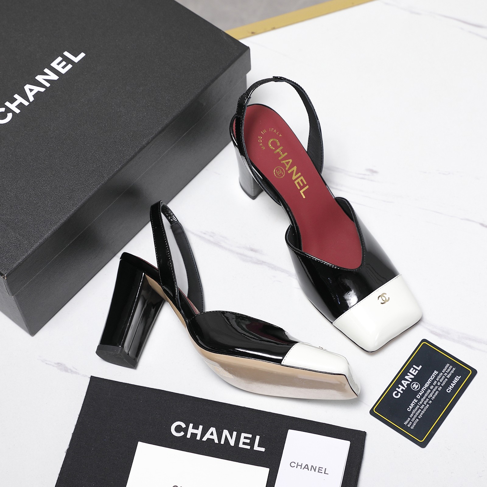 Metal double C logo 3D inlaid on the toe