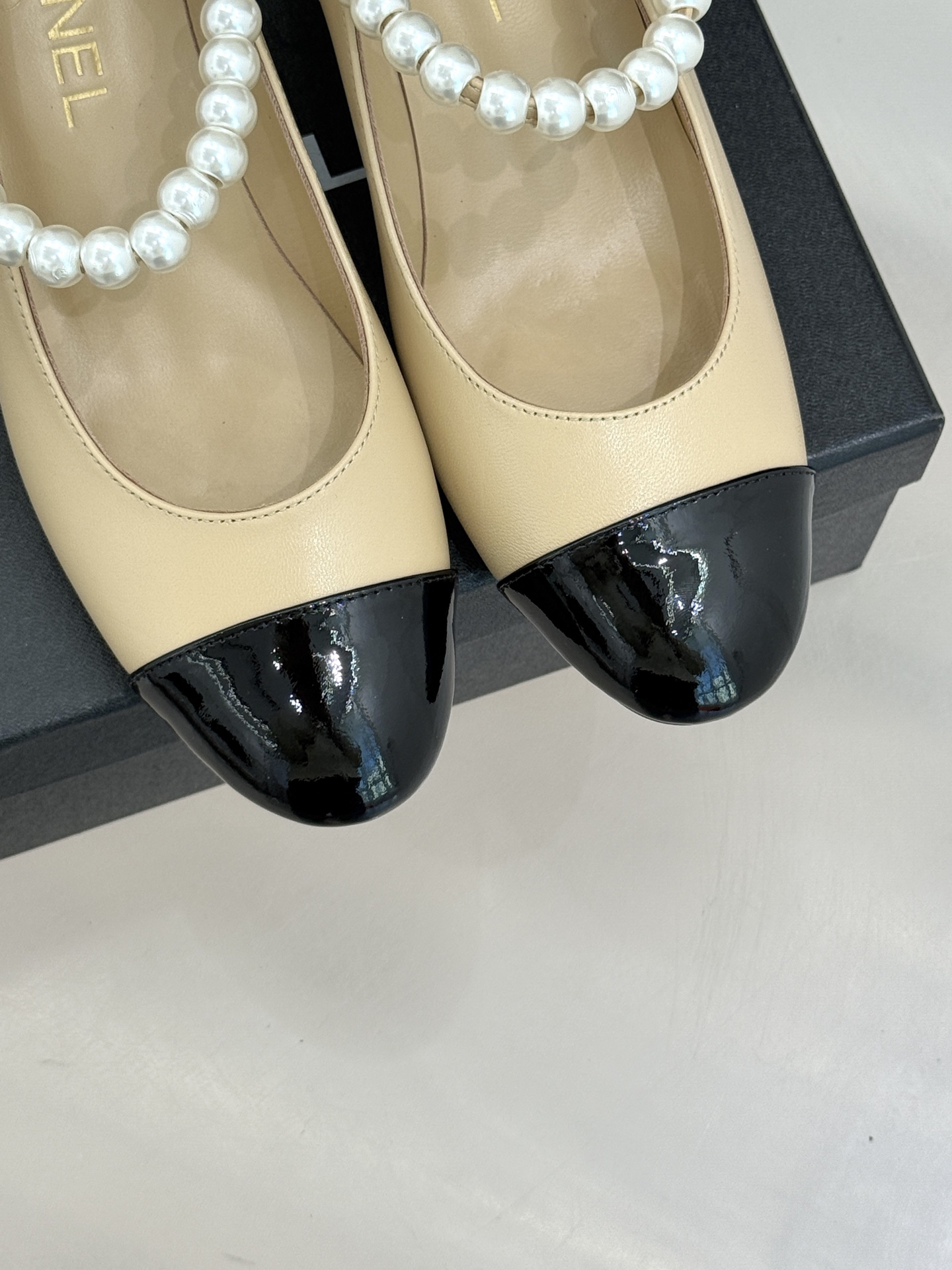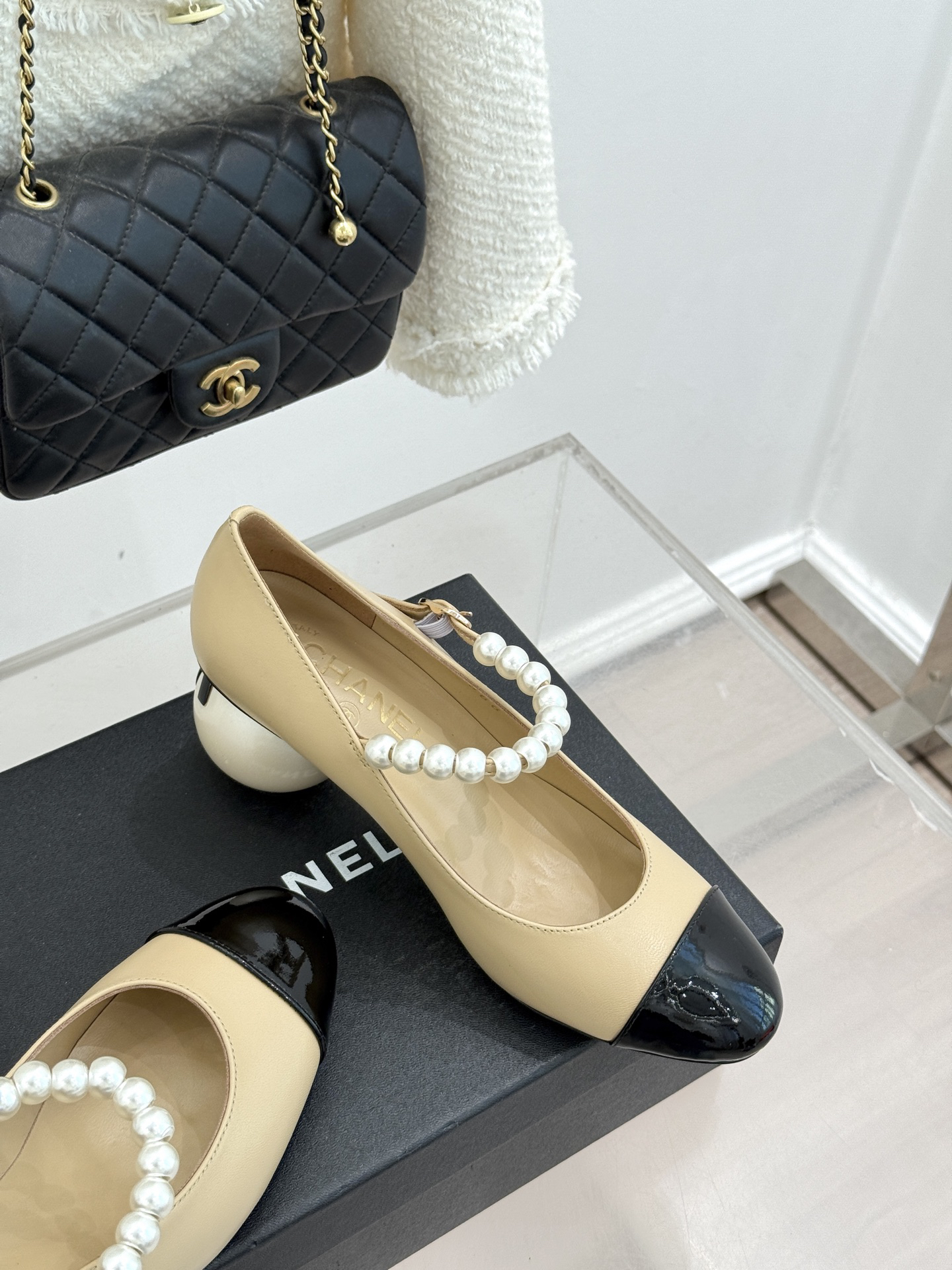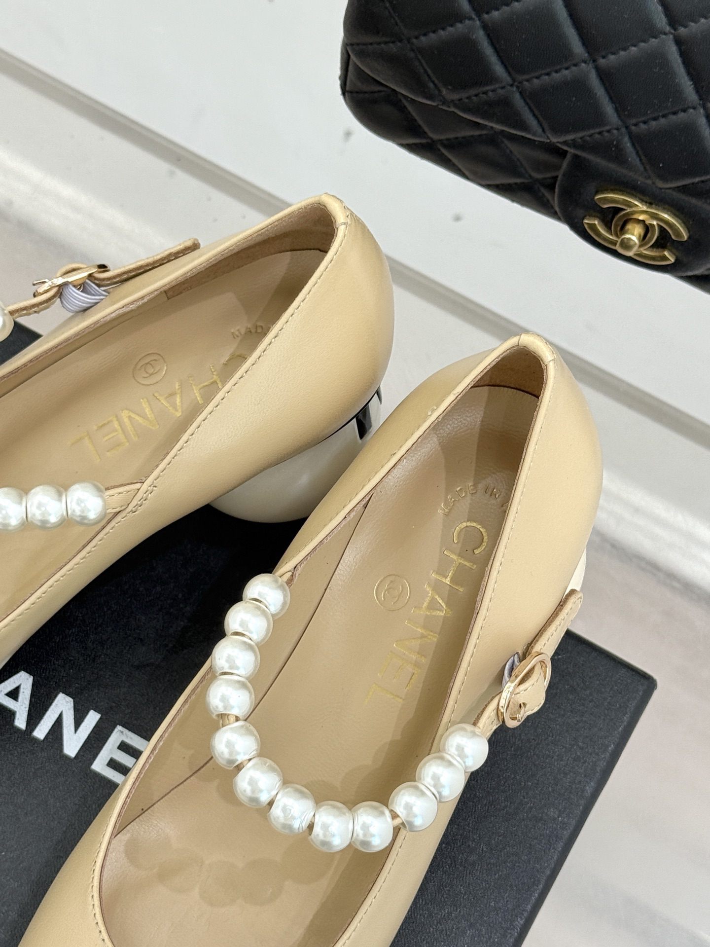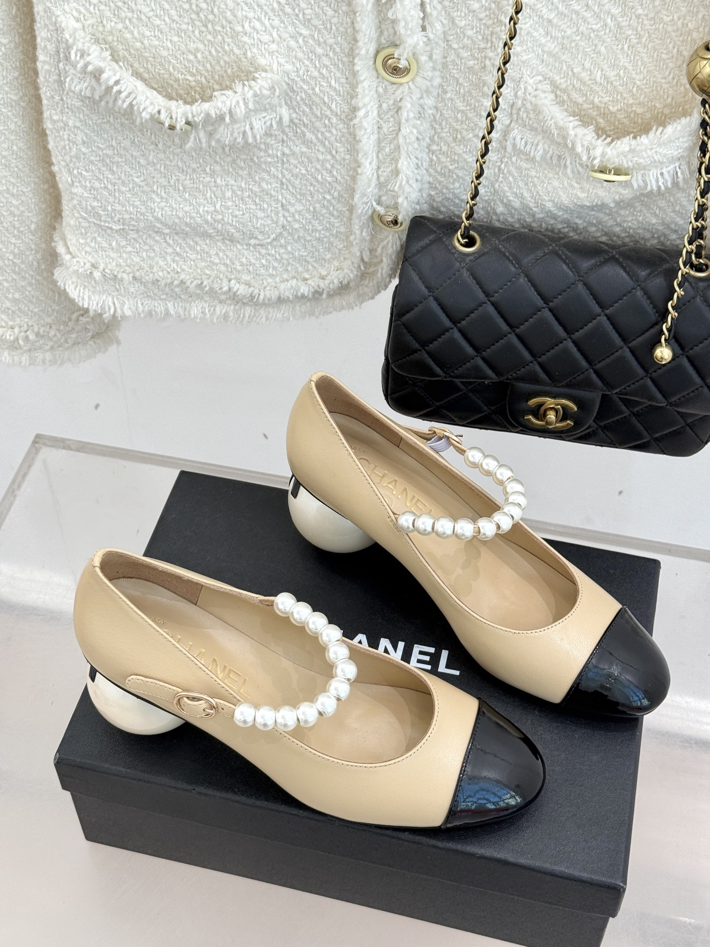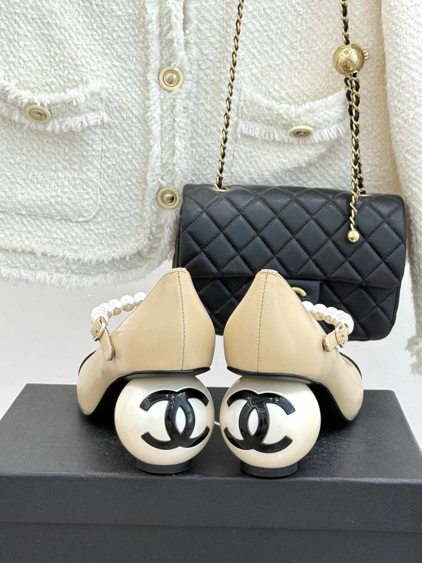 CHANE*|The classic Chanel double C giant pearl heel