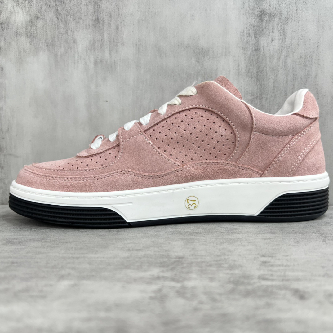 These sneakers feature a youthful, pastel pink color scheme and upgraded craftsmanship for exceptional comfort. They are made of suede with a premium imported leather lining. Sizes: 5-11