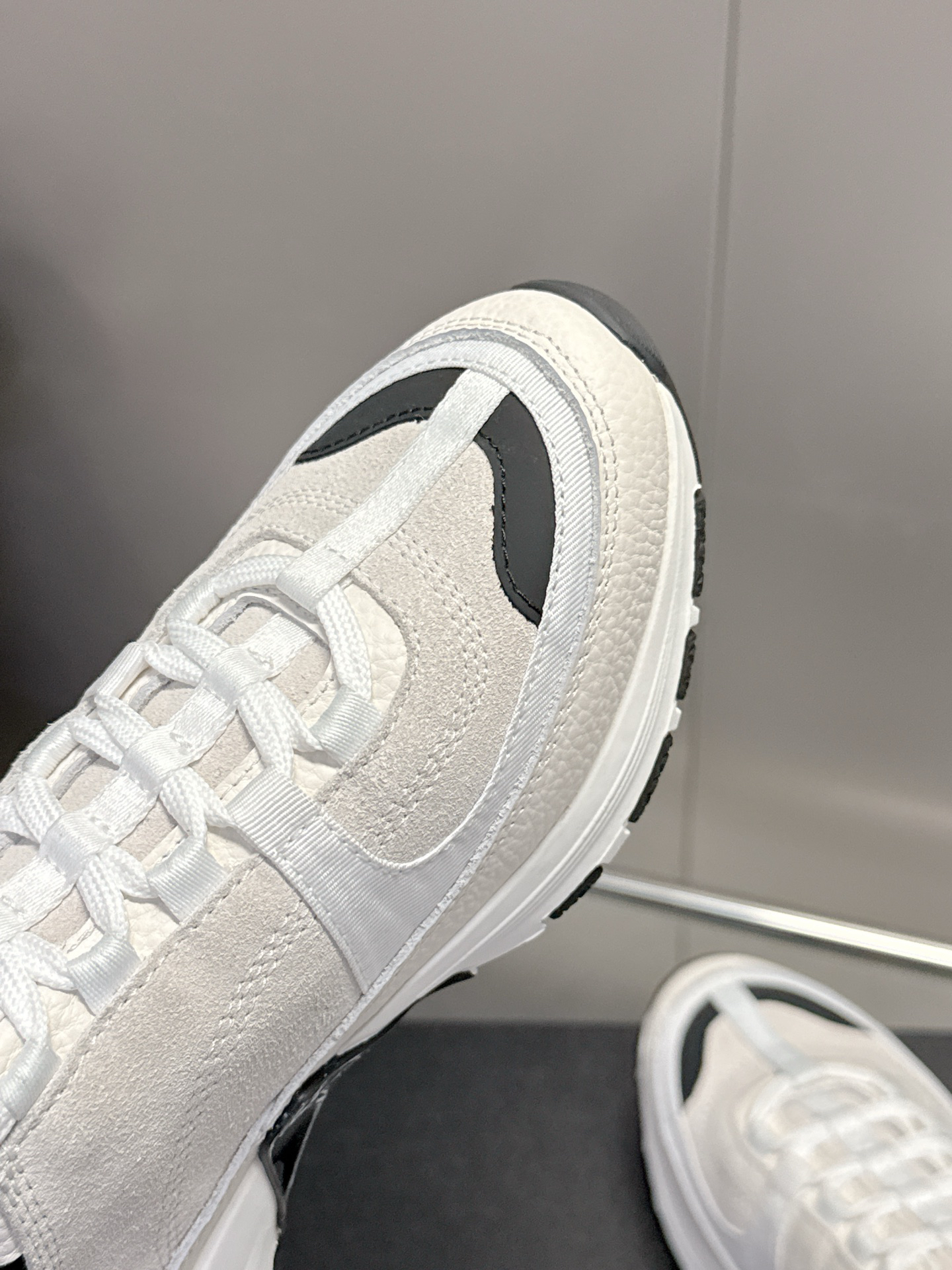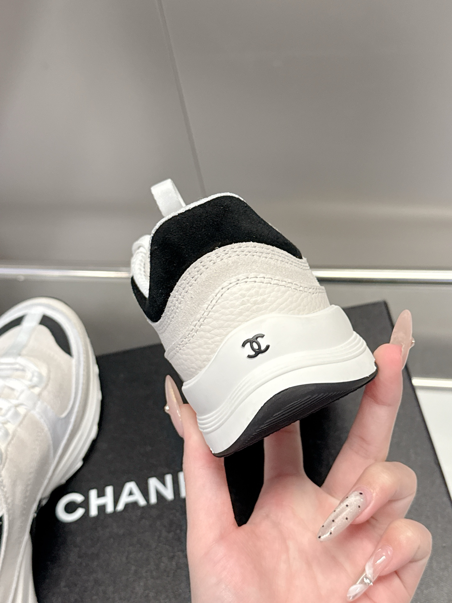 The iconic double-C element is cleverly integrated into the shoe design, subtly showcasing the brand identity and highlighting fashionable taste. The shoe’s lines are sleek, combining sportiness and elegance, while the platform sole adds a trendy touch and subtly elongates the leg line.