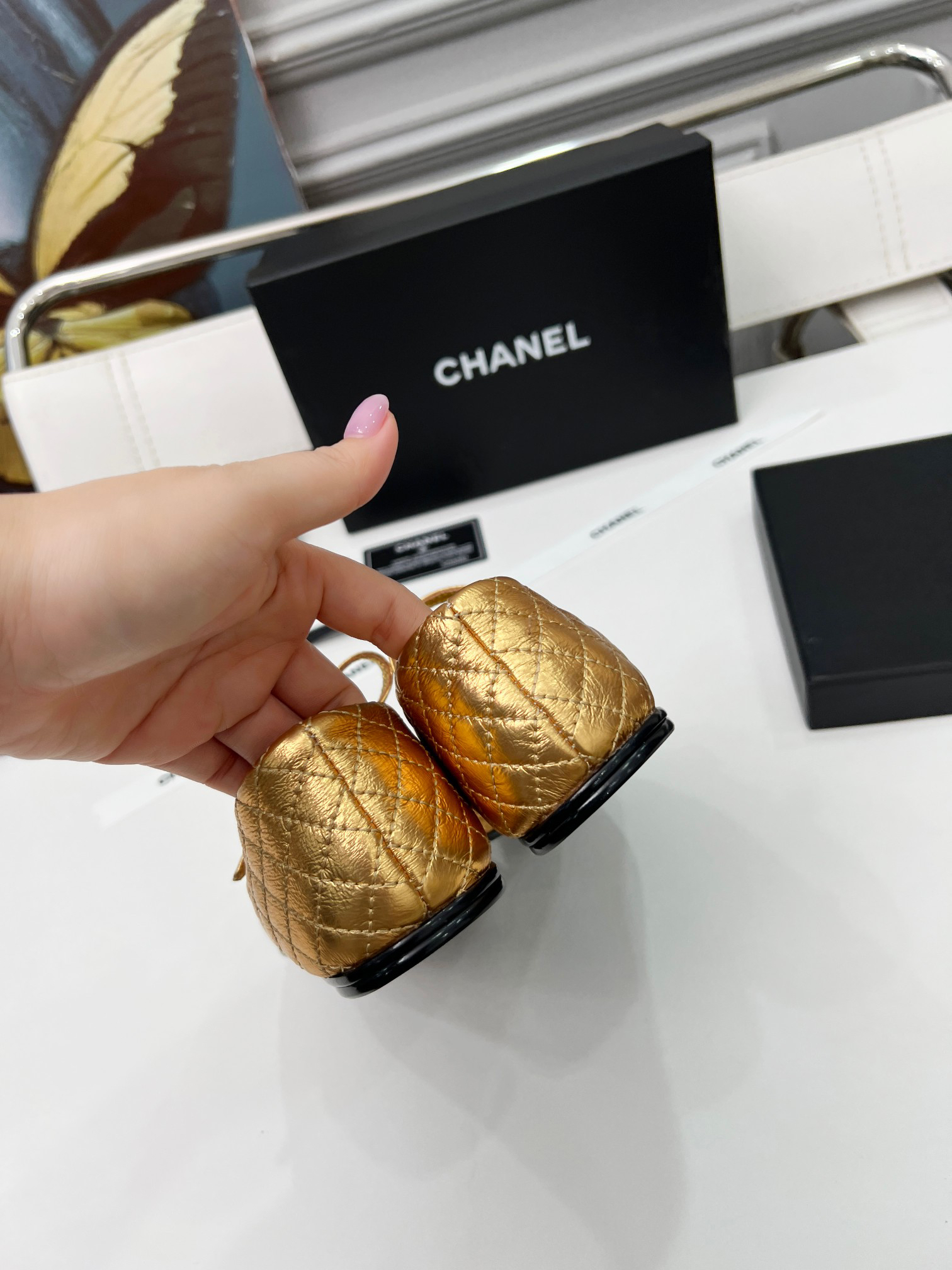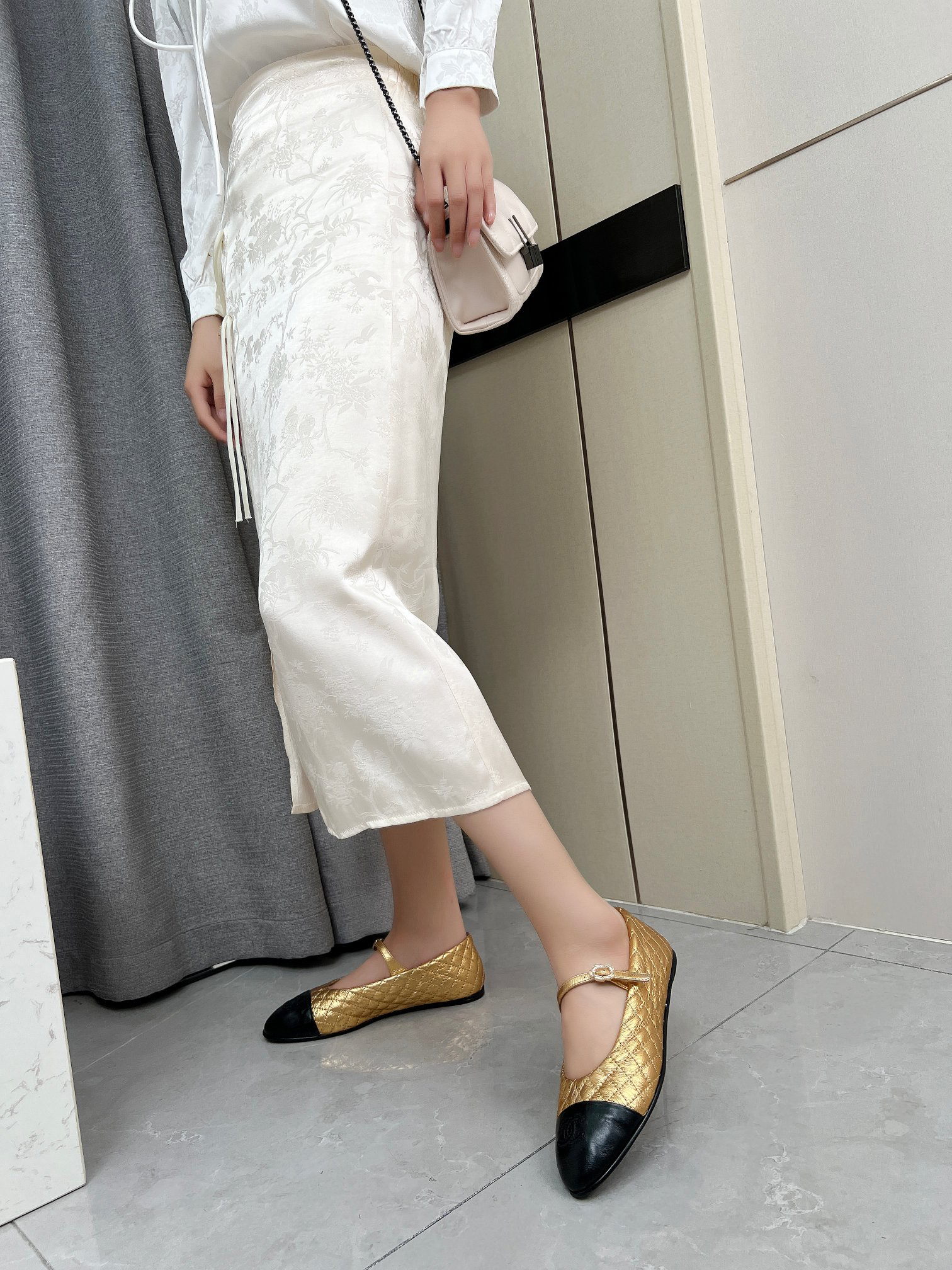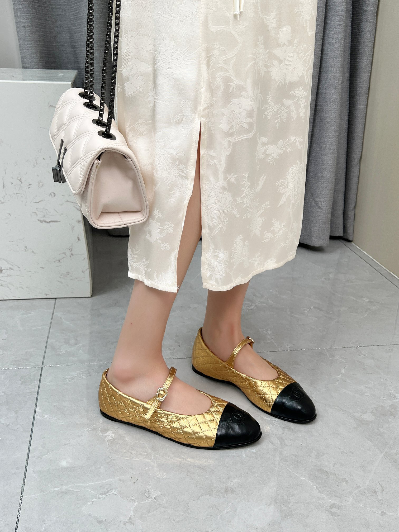 The classic and elegant quilted pattern, along with the stunning color combinations—black and gold, black and silver, black and beige—creates a sophisticated look. Whether for everyday wear or special occasions, slipping on these shoes instantly gives you a chic French vibe. Who understands the power of these shoes? A reliable fashion statement! 👠 Material: Sheepskin Lining: Sheepskin Outsole: Genuine leather Sizes: 5-11 Colors: Gold, Silver, Black, Apricot, White