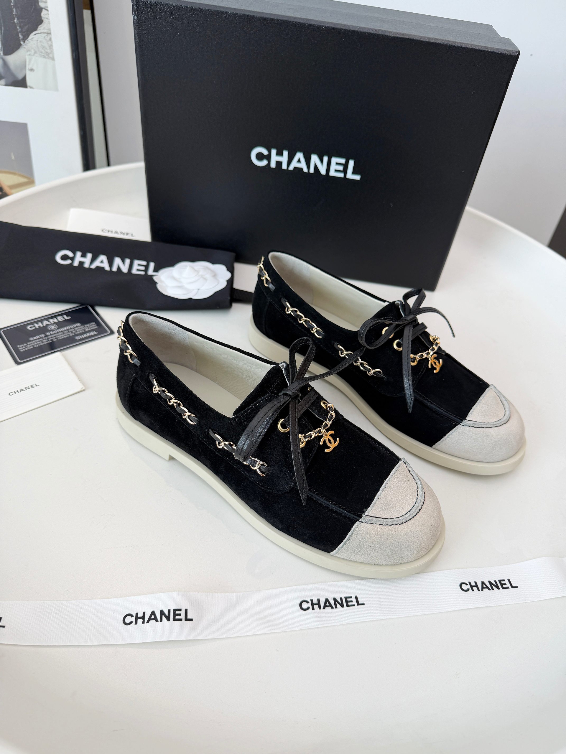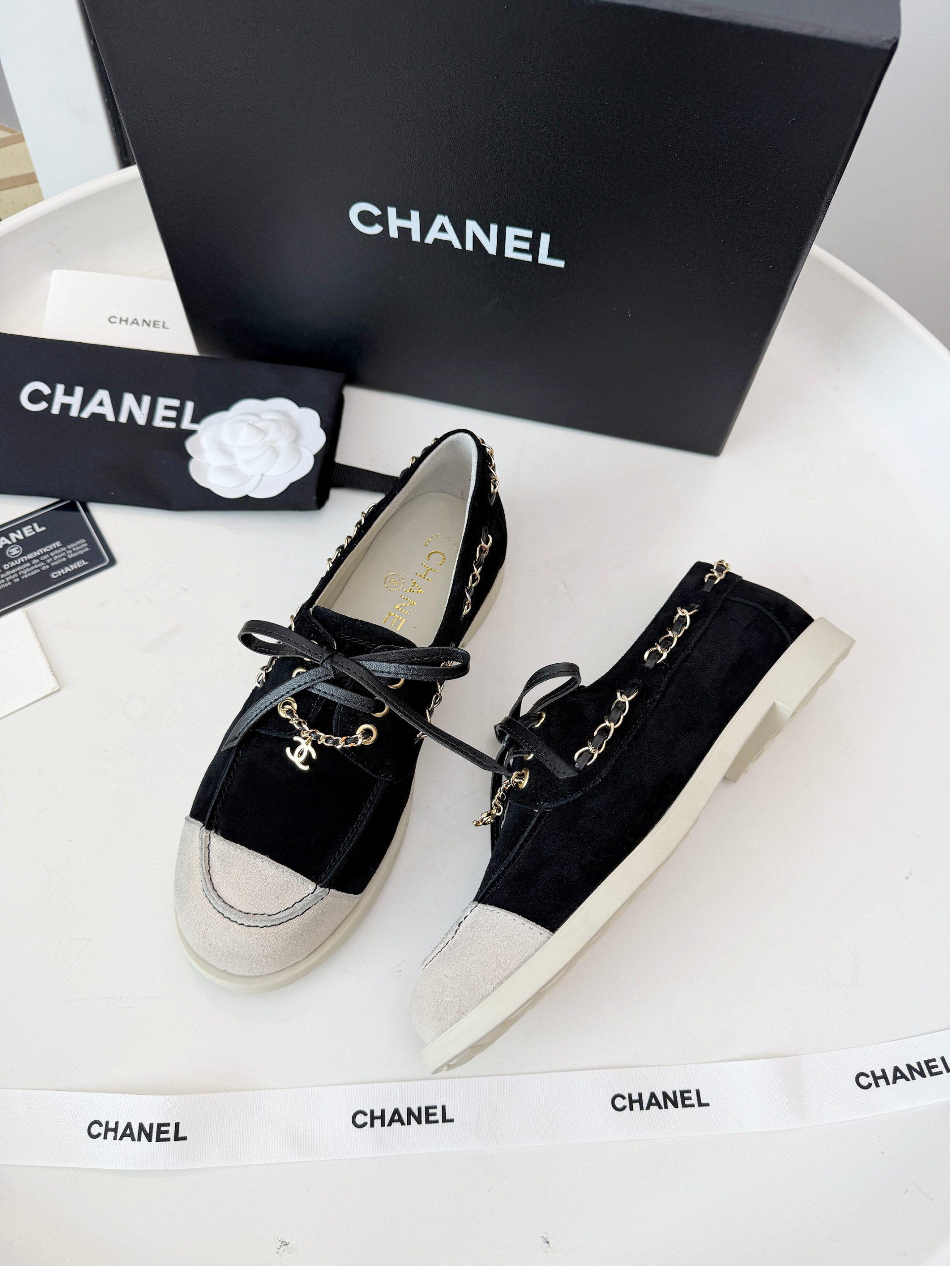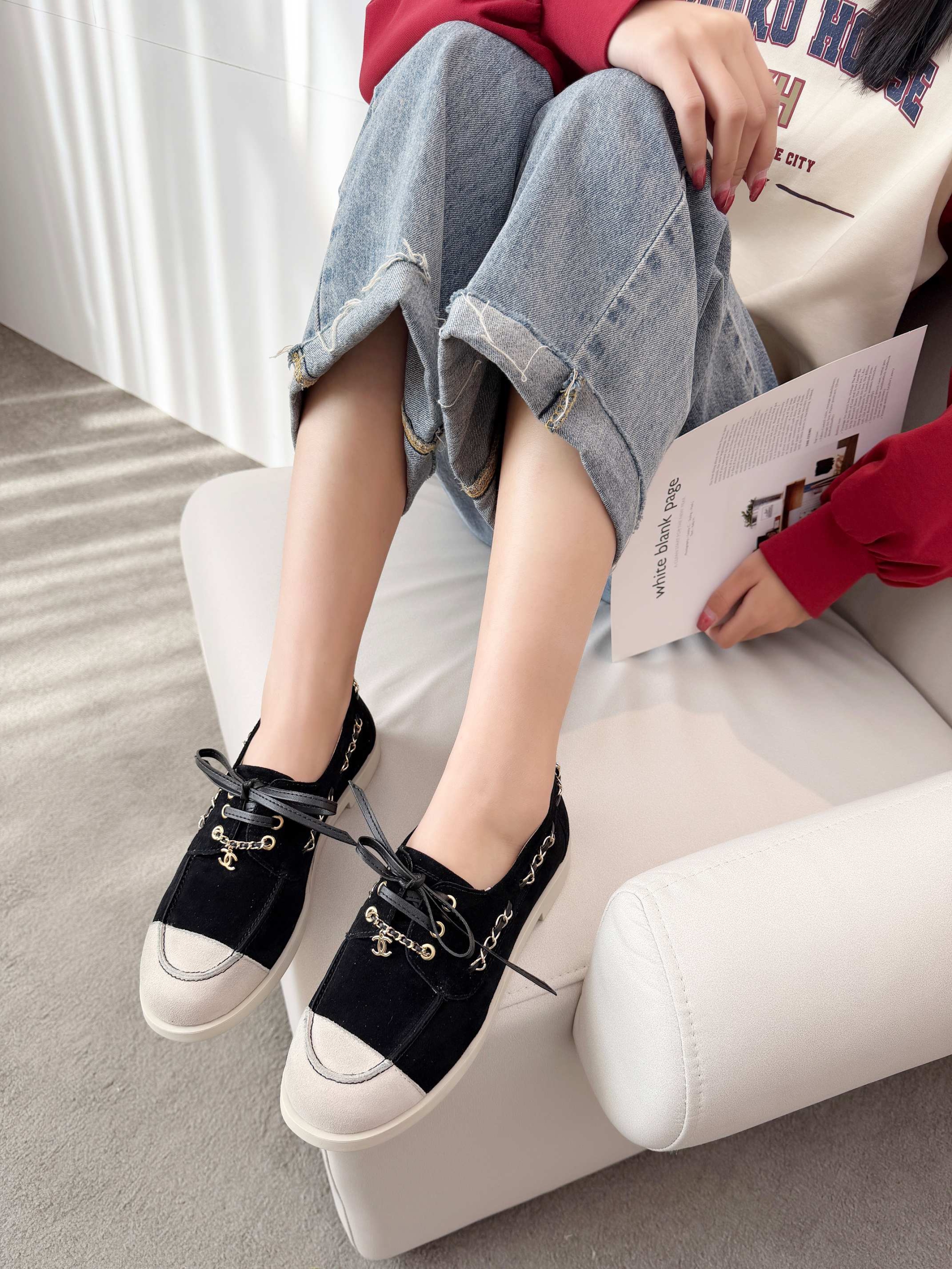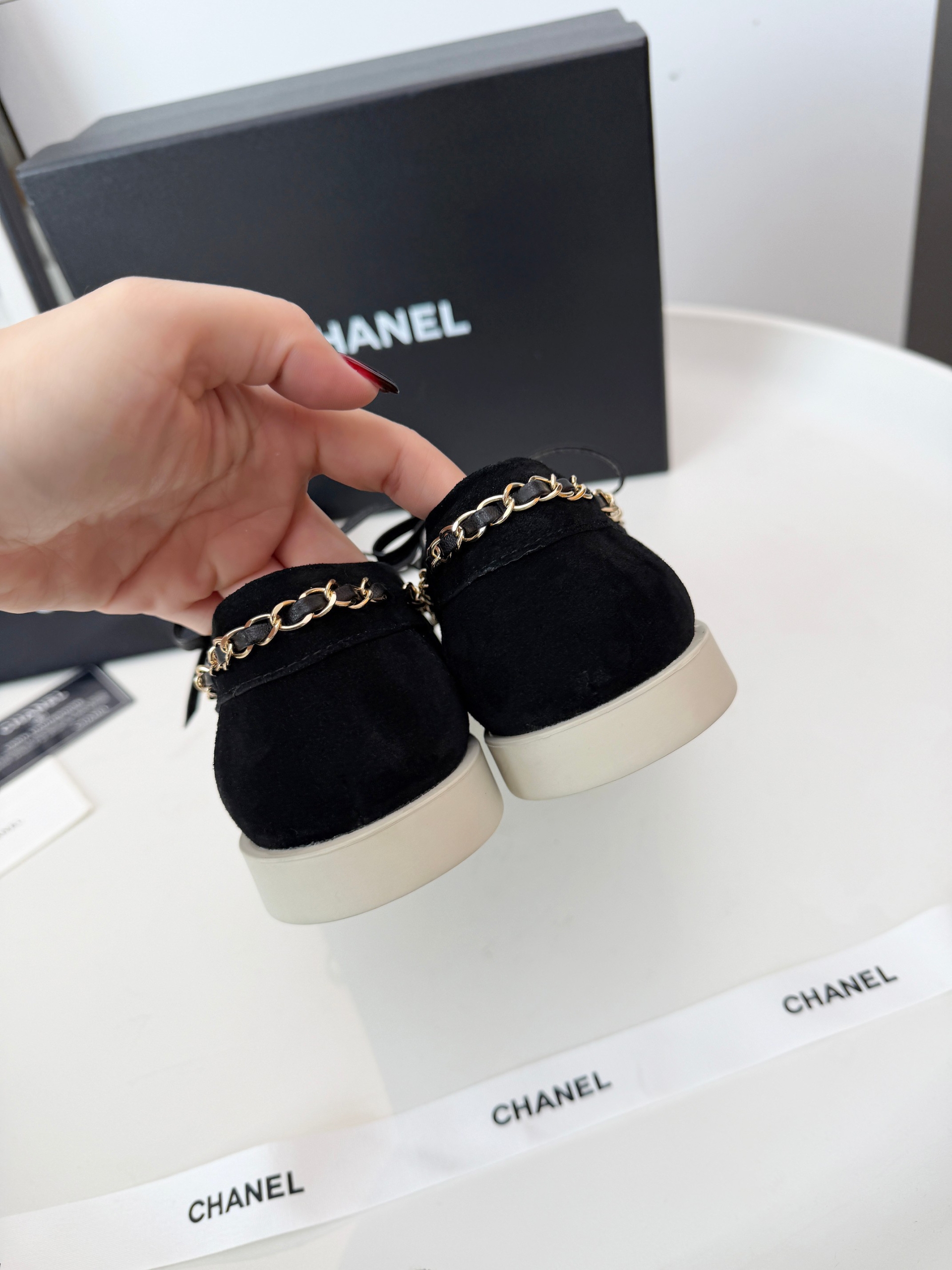 2026 Chanel classic design, featuring high-gloss suede upper, classic double-C metal buckle, lambskin lining, lightweight TPU outsole, and a pure copper chain that won’t rust. Available in brown, black, and mint blue, each color exudes a gentle and relaxed feel. The shoe shape is so soft, like walking on clouds ☁️ It goes well with both skirts and pants, making it the kind of shoe you’ll want to buy at first sight ✨ Women’s shoe sizes: 5-11