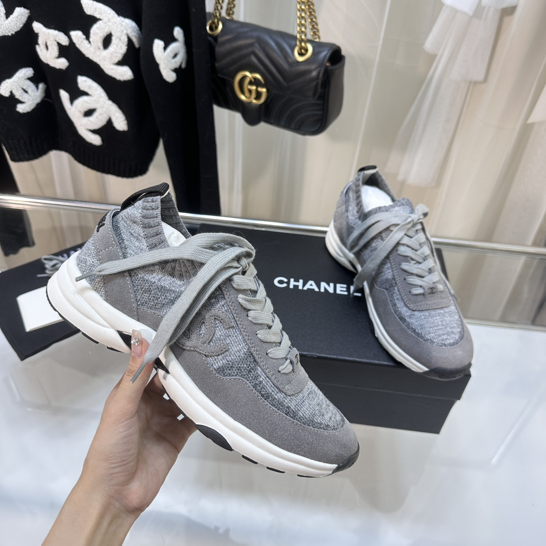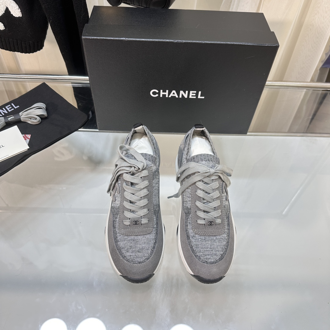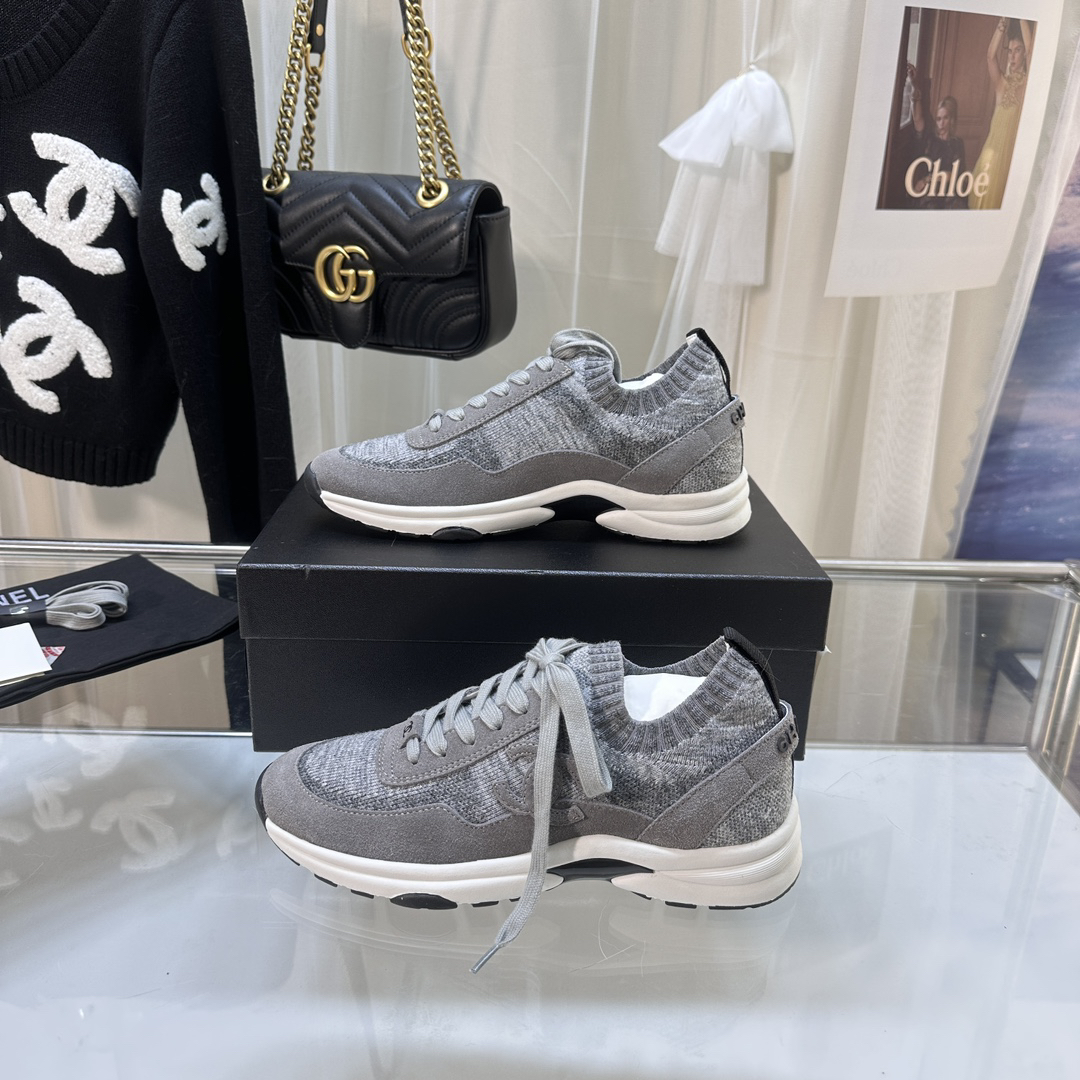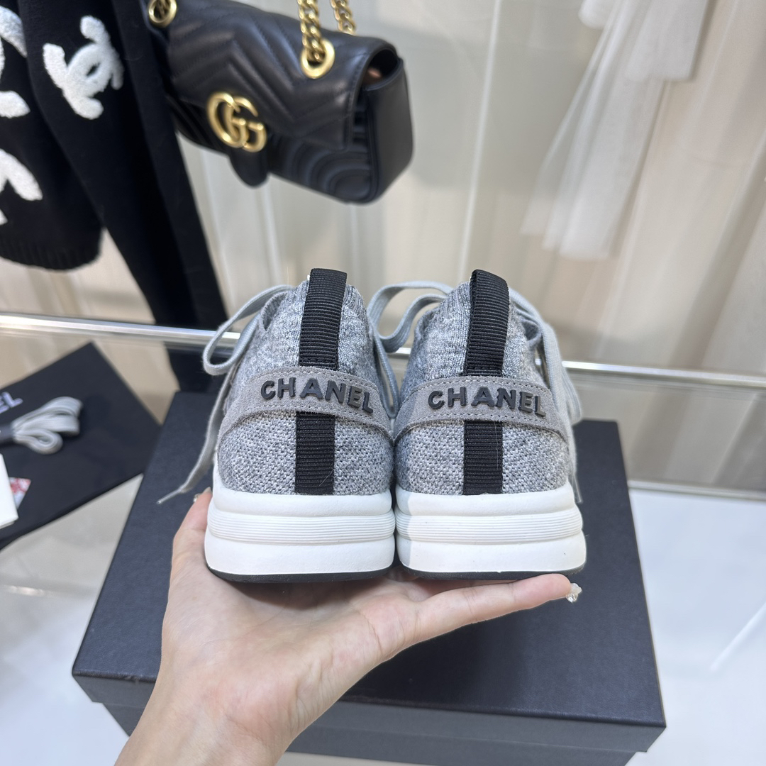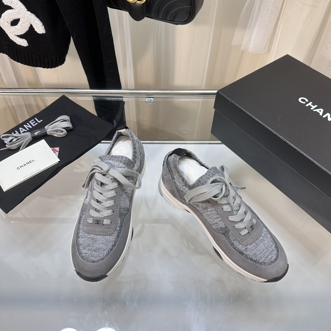 Chanel-style grey knit casual sneakers