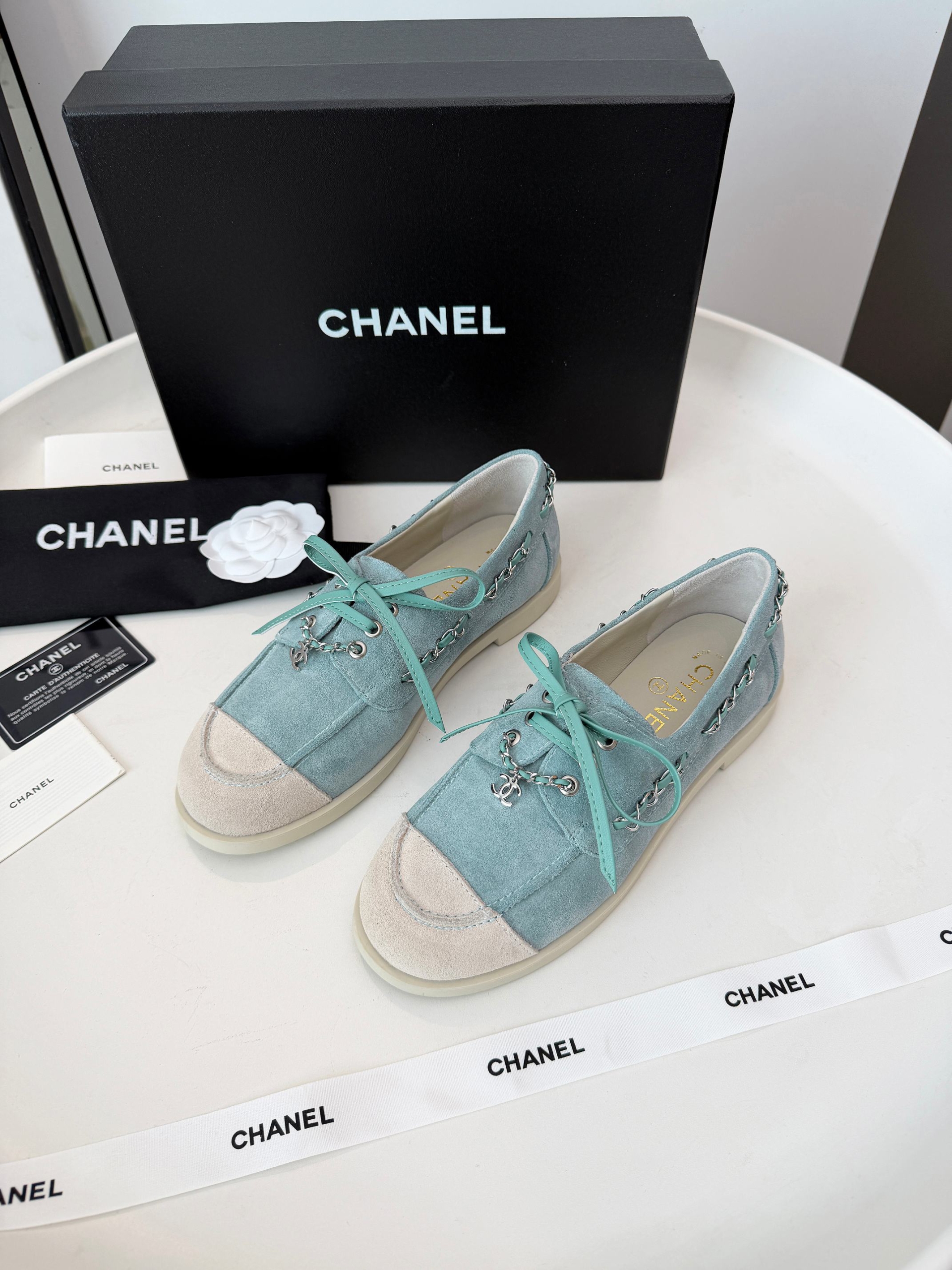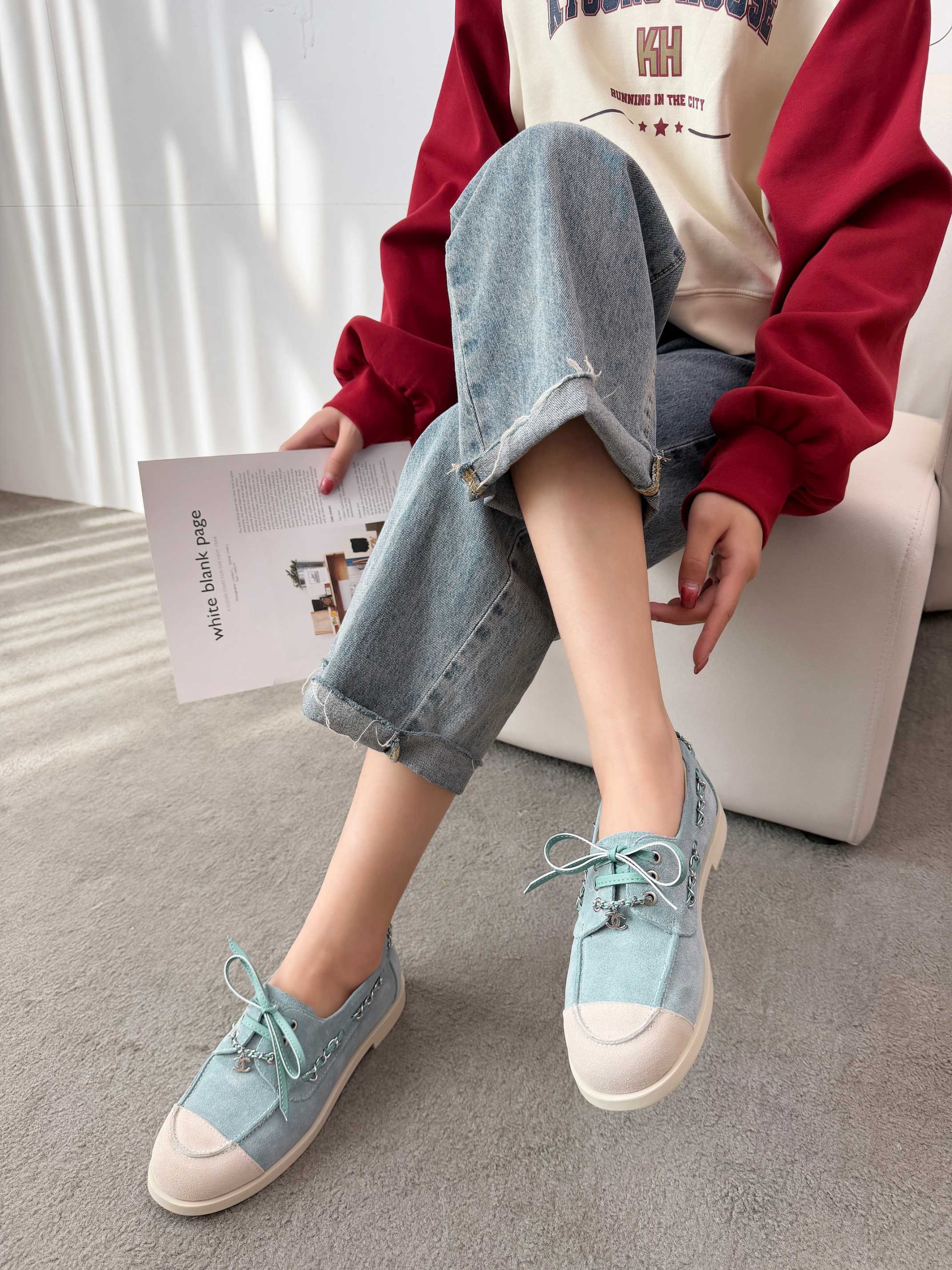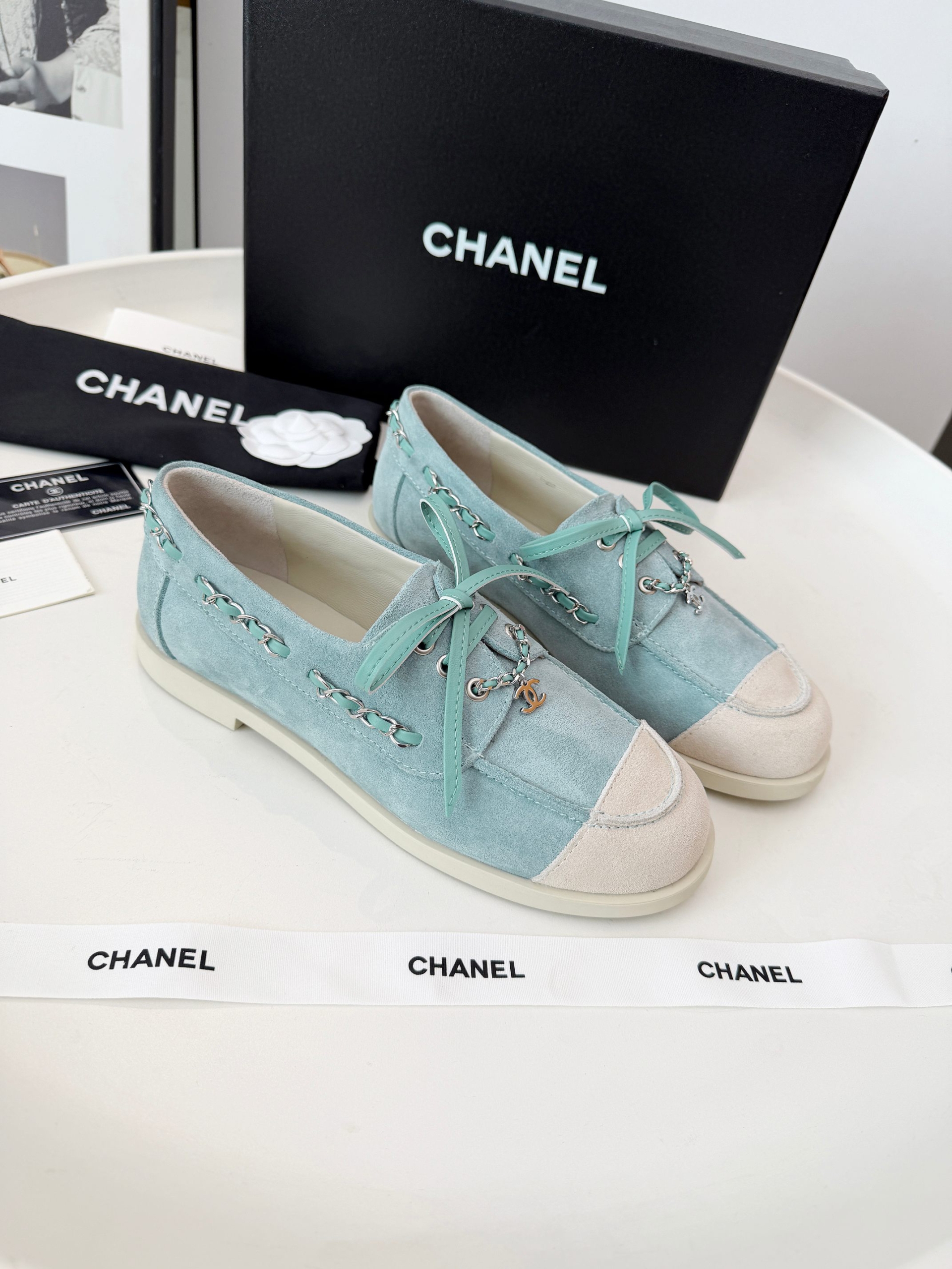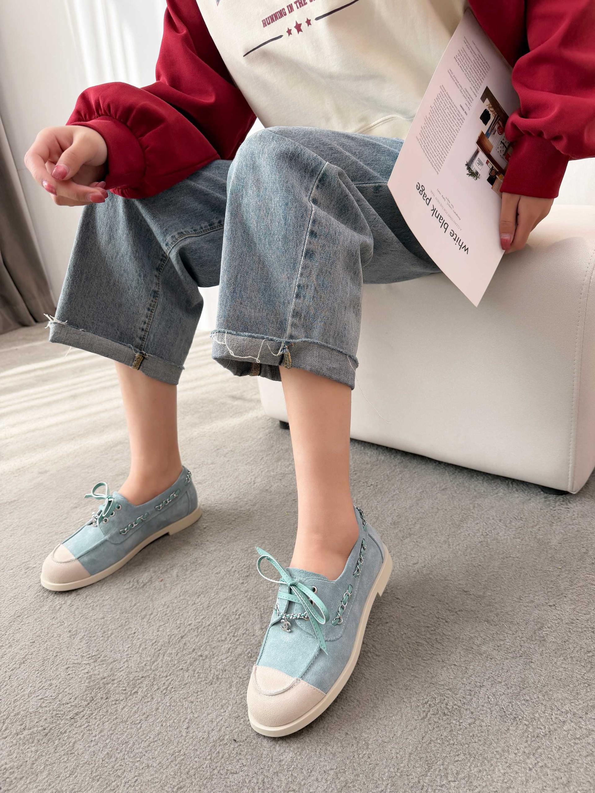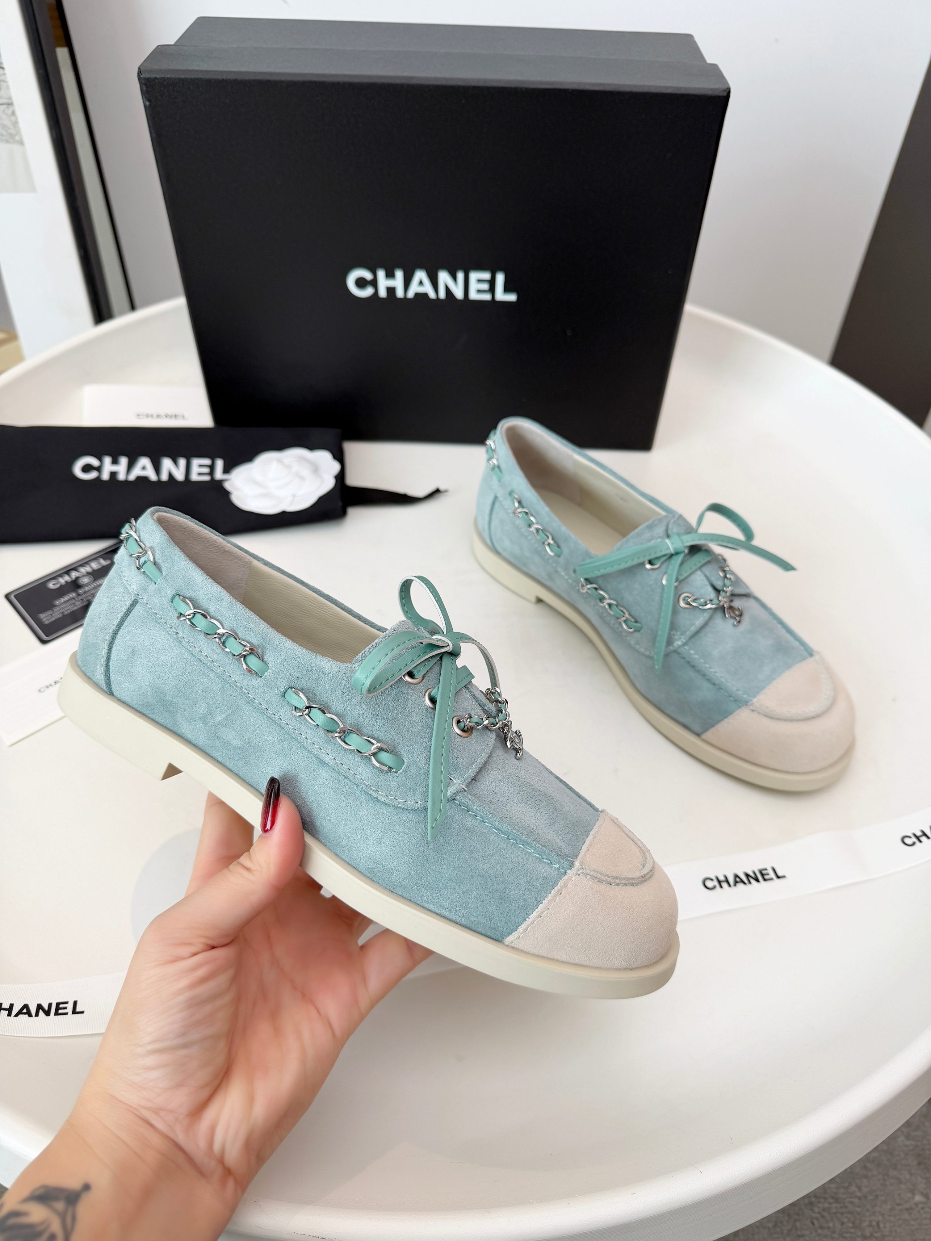 2026 Chanel classic design, featuring high-gloss suede upper, classic double-C metal buckle, lambskin lining, lightweight TPU outsole, and a pure copper chain that won’t rust. Available in brown, black, and mint blue, each color exudes a gentle and relaxed feel. The shoe shape is so soft, like walking on clouds ☁️ It goes well with both skirts and pants, making it the kind of shoe you’ll want to buy at first sight ✨ Women’s shoe sizes: 5-11