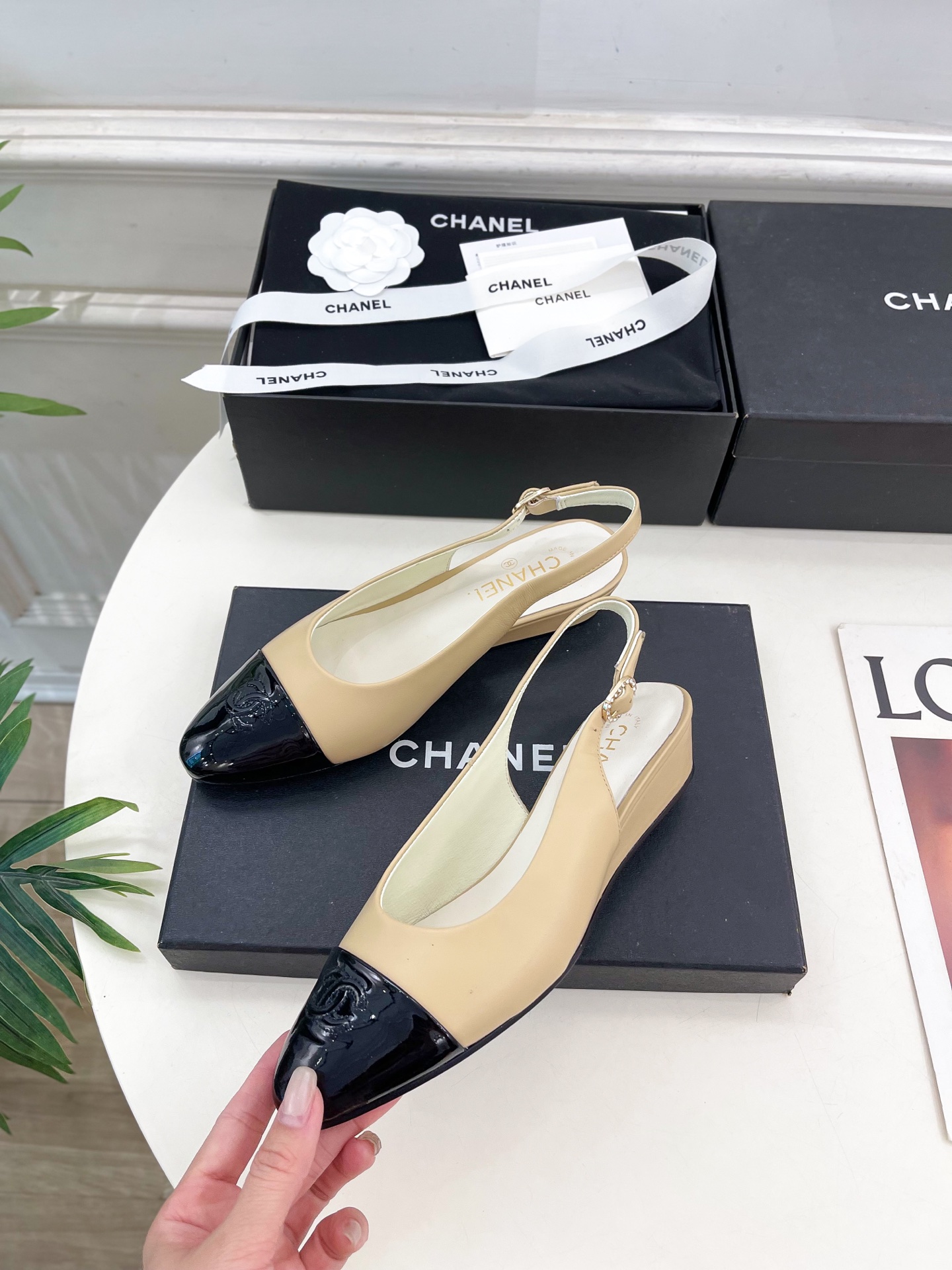 CREAM | Chanel 25K: New arrivals in Chanel’s color-blocked open-back wedge sandal collection.