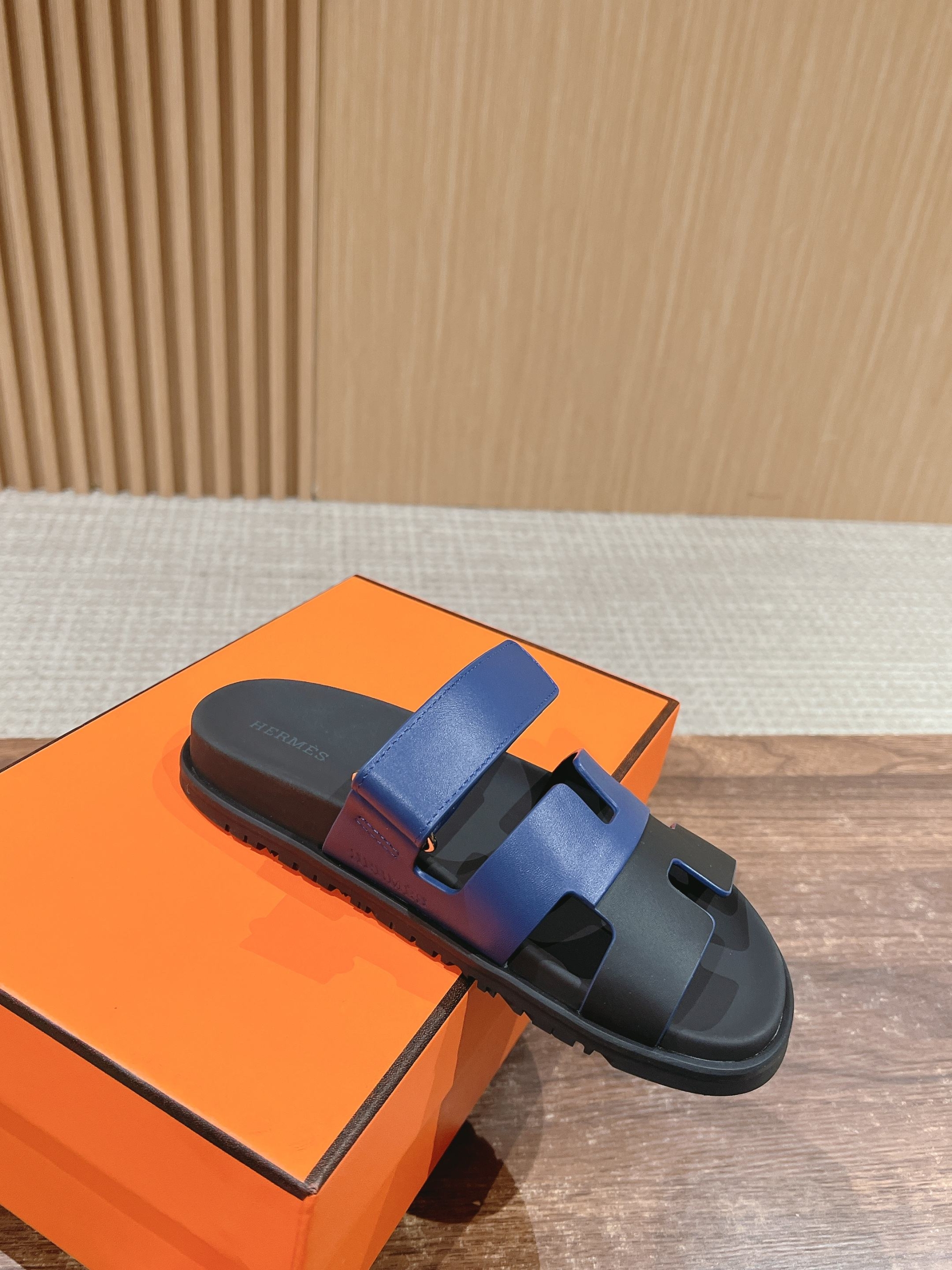 Couple style Hermes Chypre series, vintage-style slippers, H-shaped slippers, Velcro sandals.