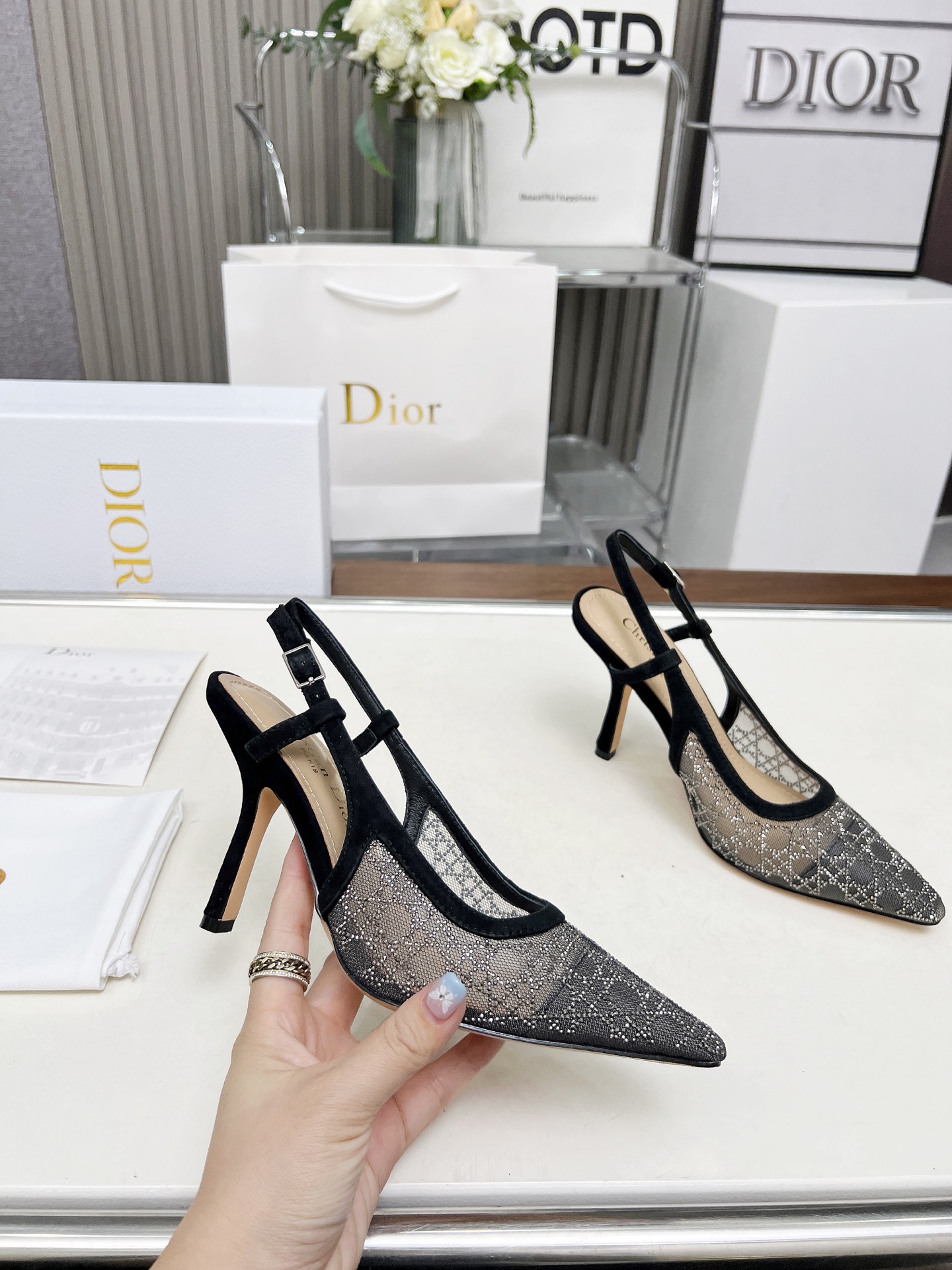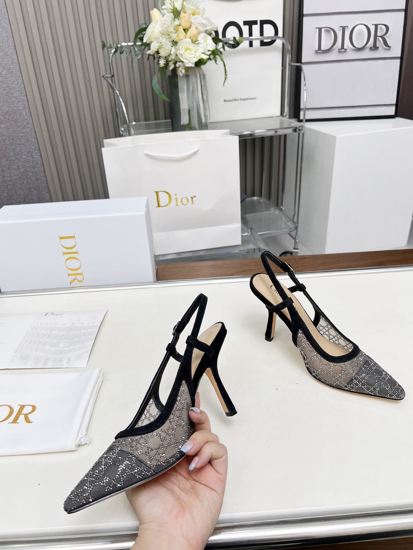 Dior 2025 SS New Strass High-Heeled Sandals | Jacquard & Hot-Fix Crystal Pattern