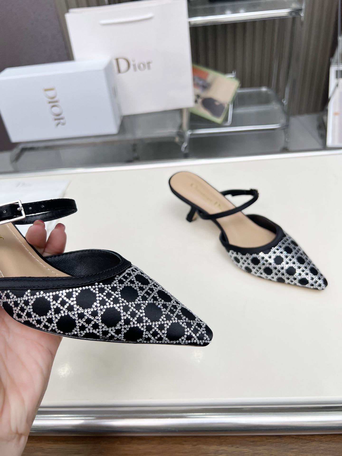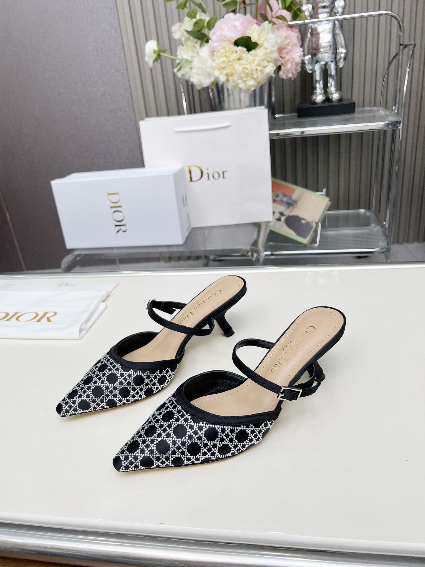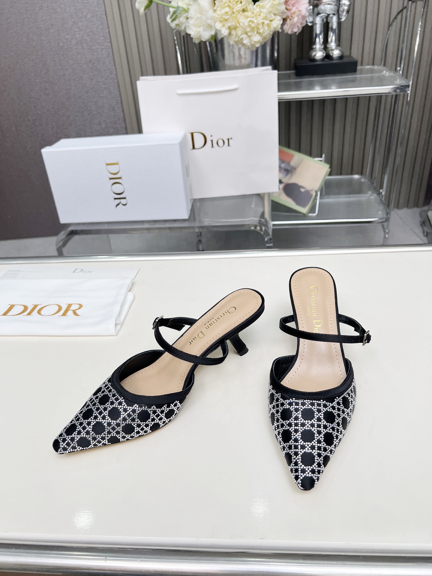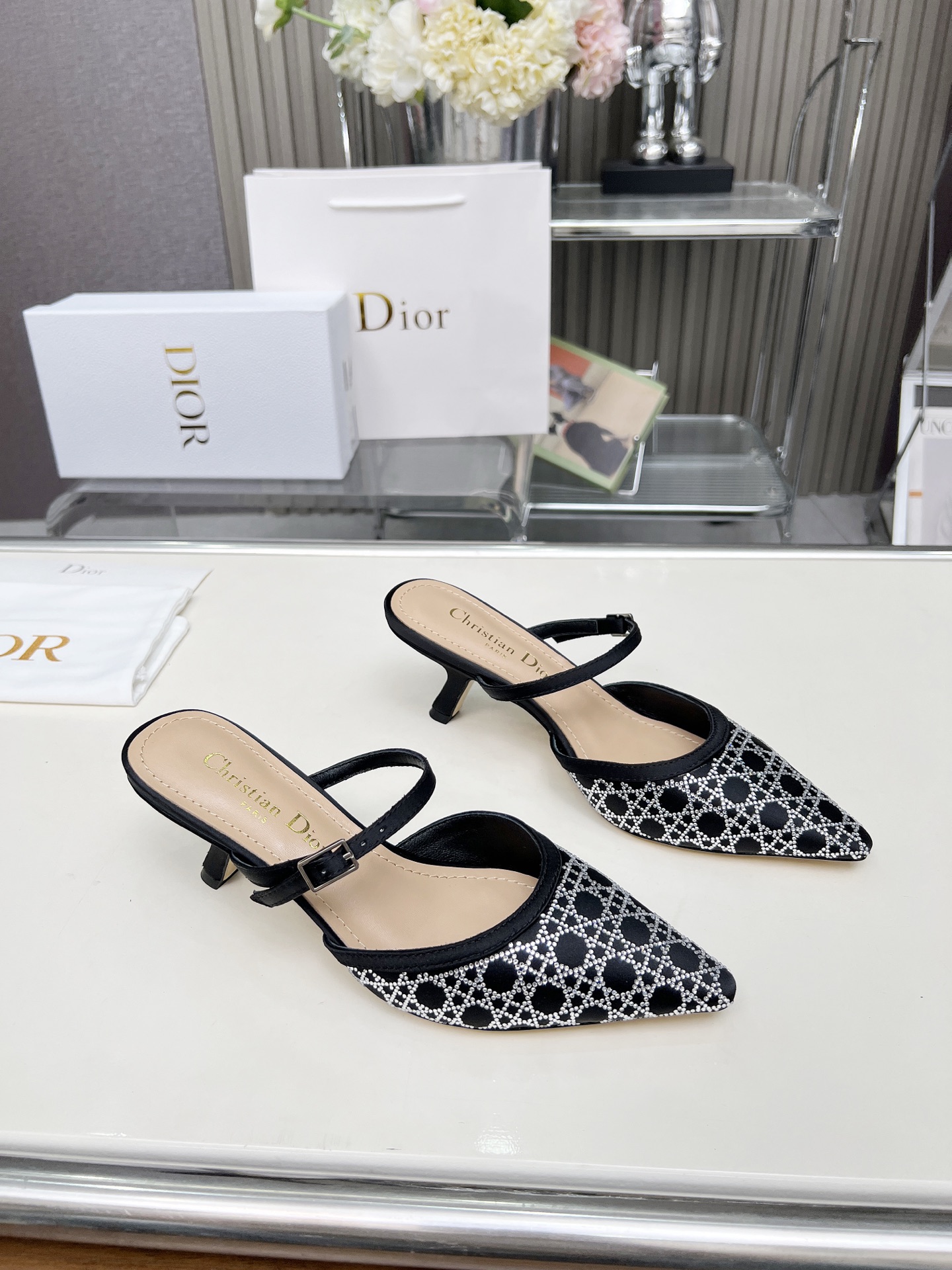 Dior 2025 SS New Strass High-Heeled Sandals | Jacquard & Hot-Fix Crystal Pattern