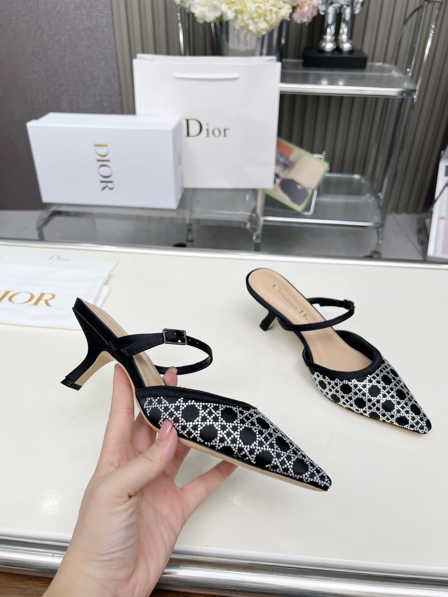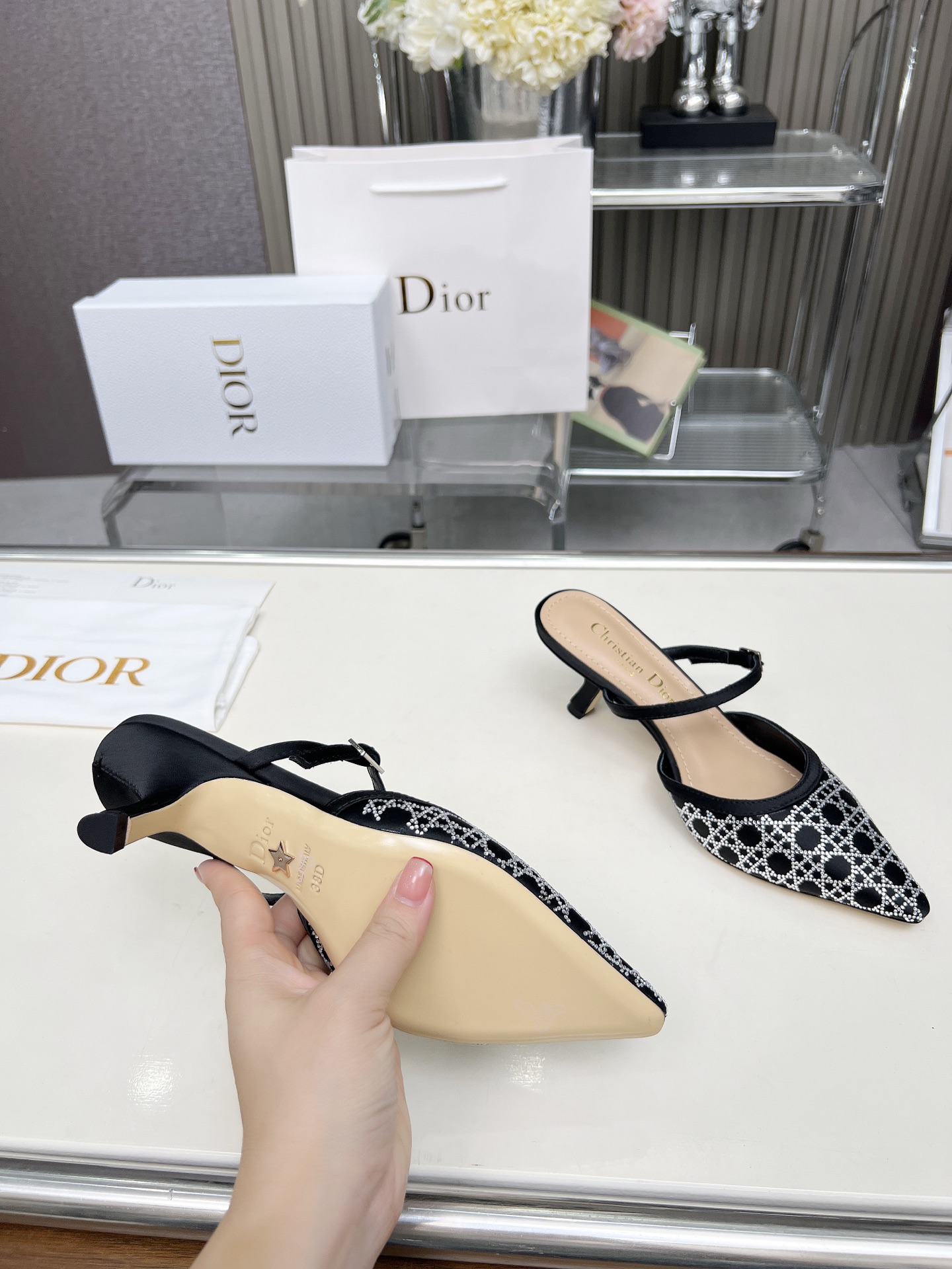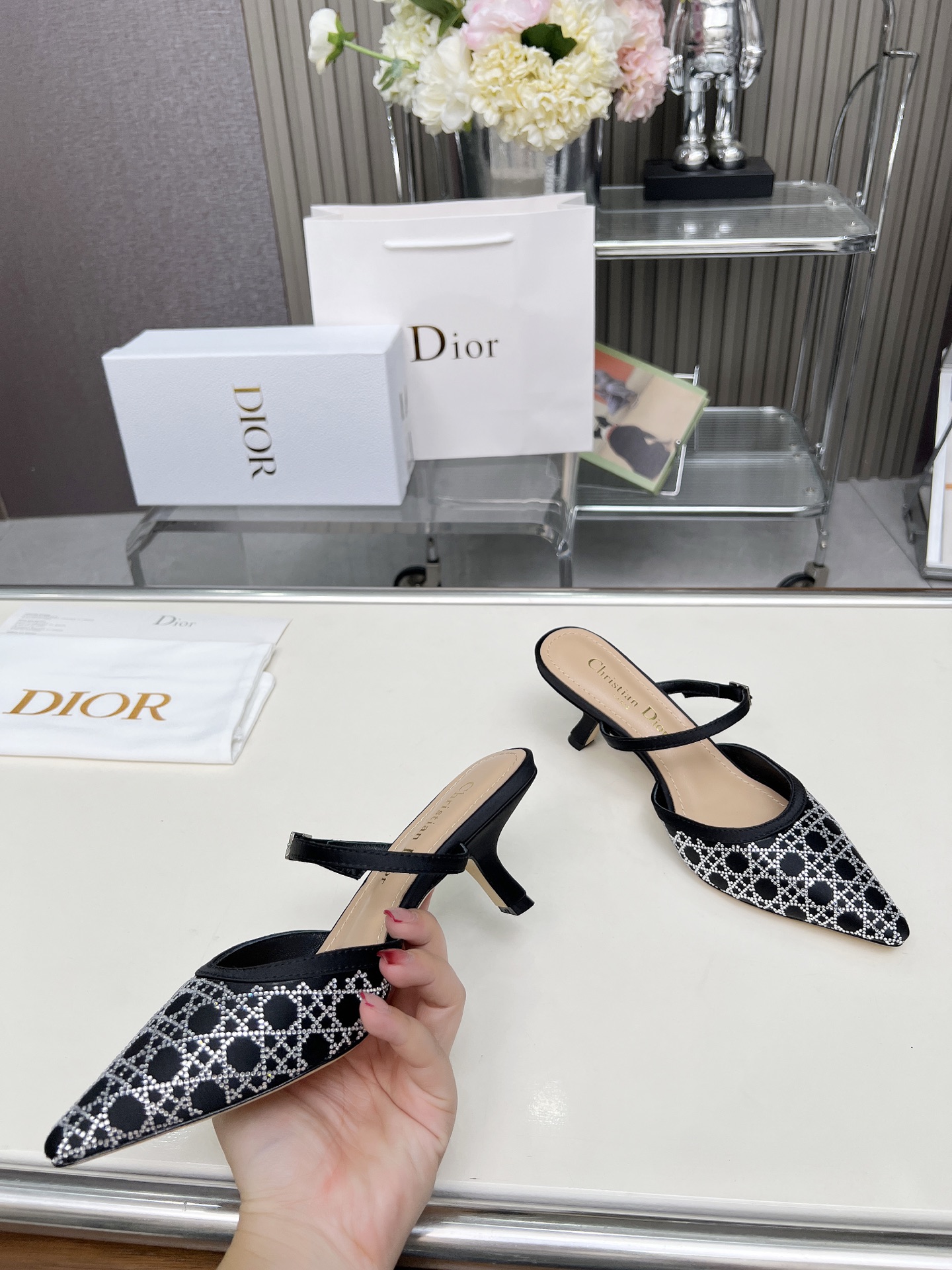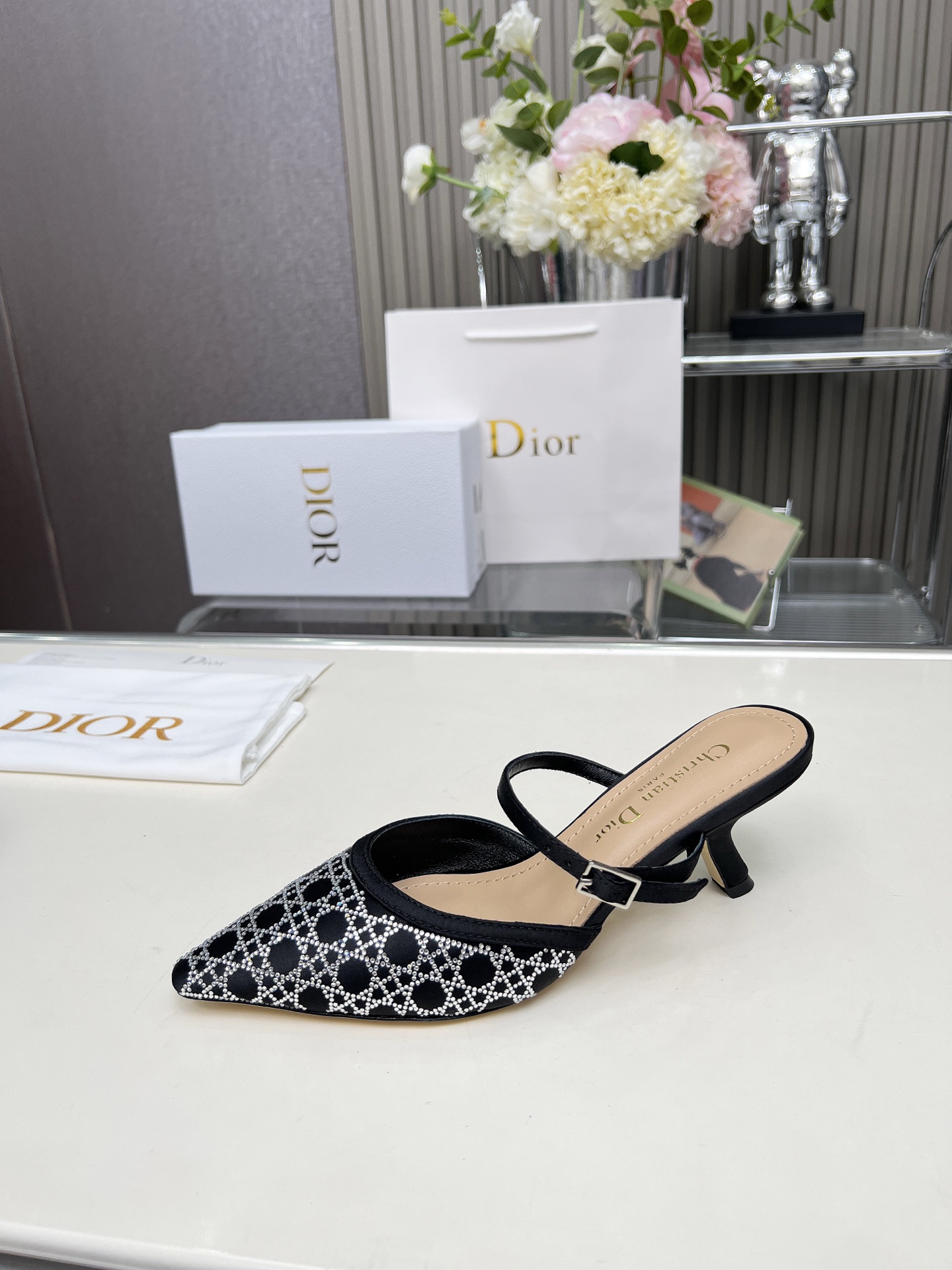 Dior 2025 SS New Strass High-Heeled Sandals | Jacquard & Hot-Fix Crystal Pattern