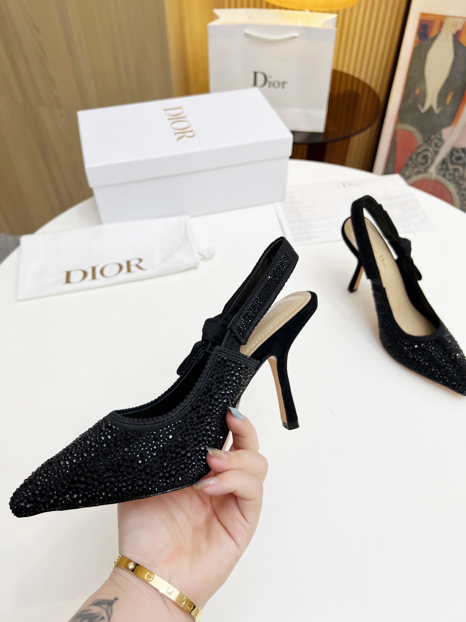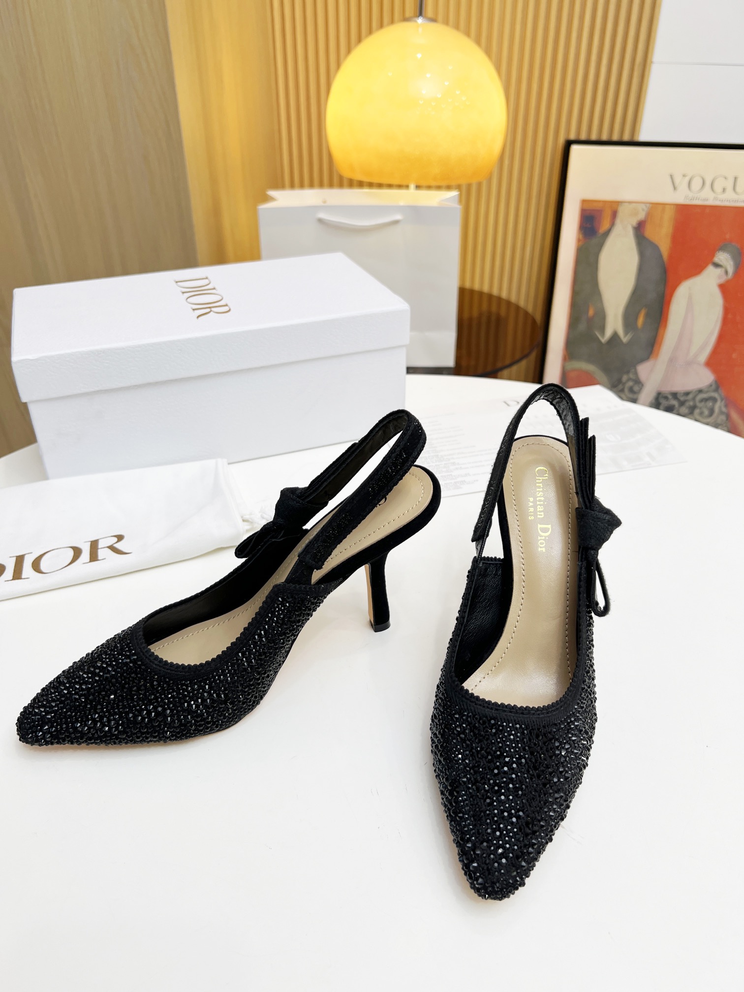 Shoe Shape: Pointed toe with a slingback design and a stiletto heel (approximately 8-9cm high), elongating the legs while maintaining an elegant look.