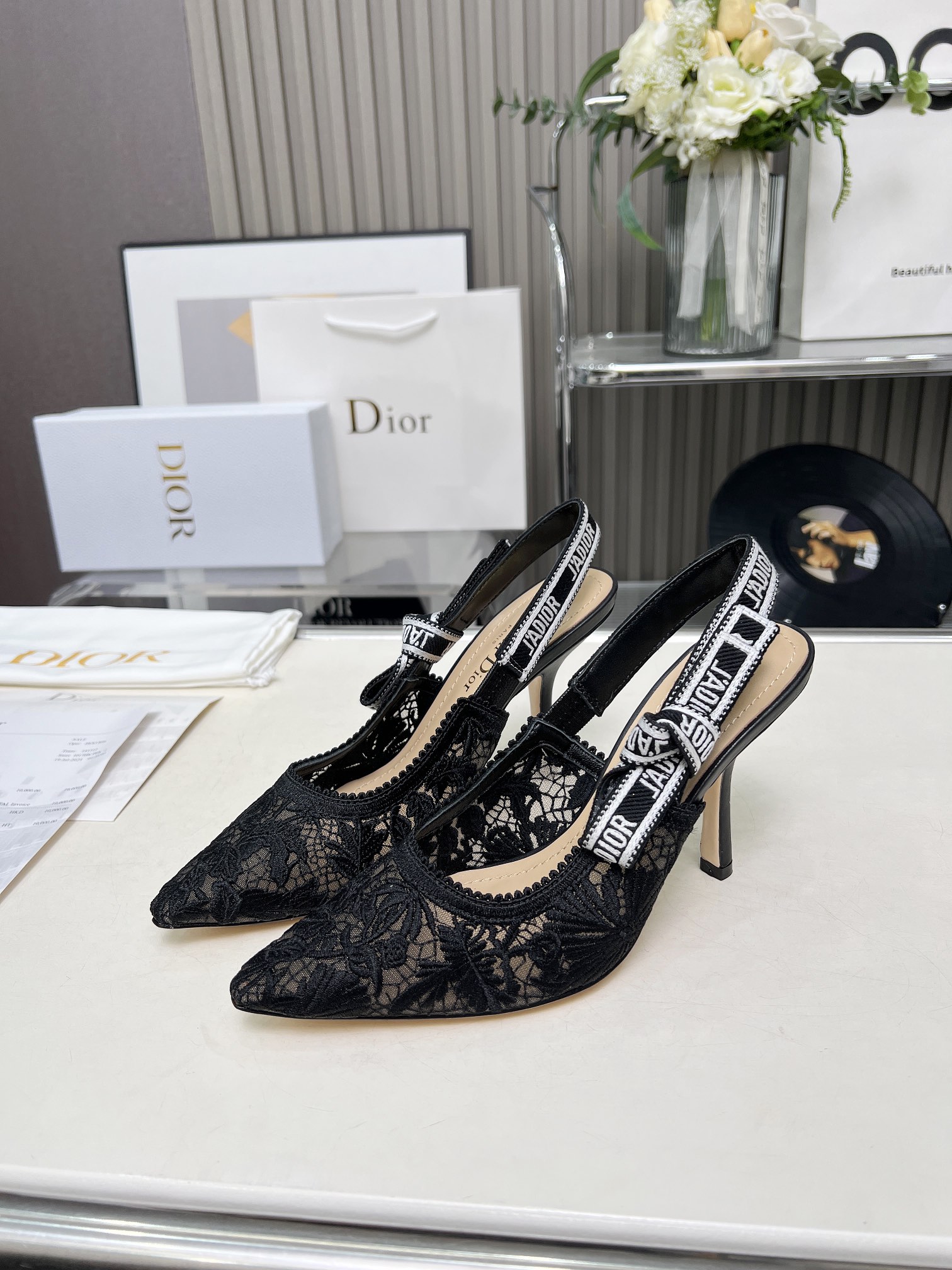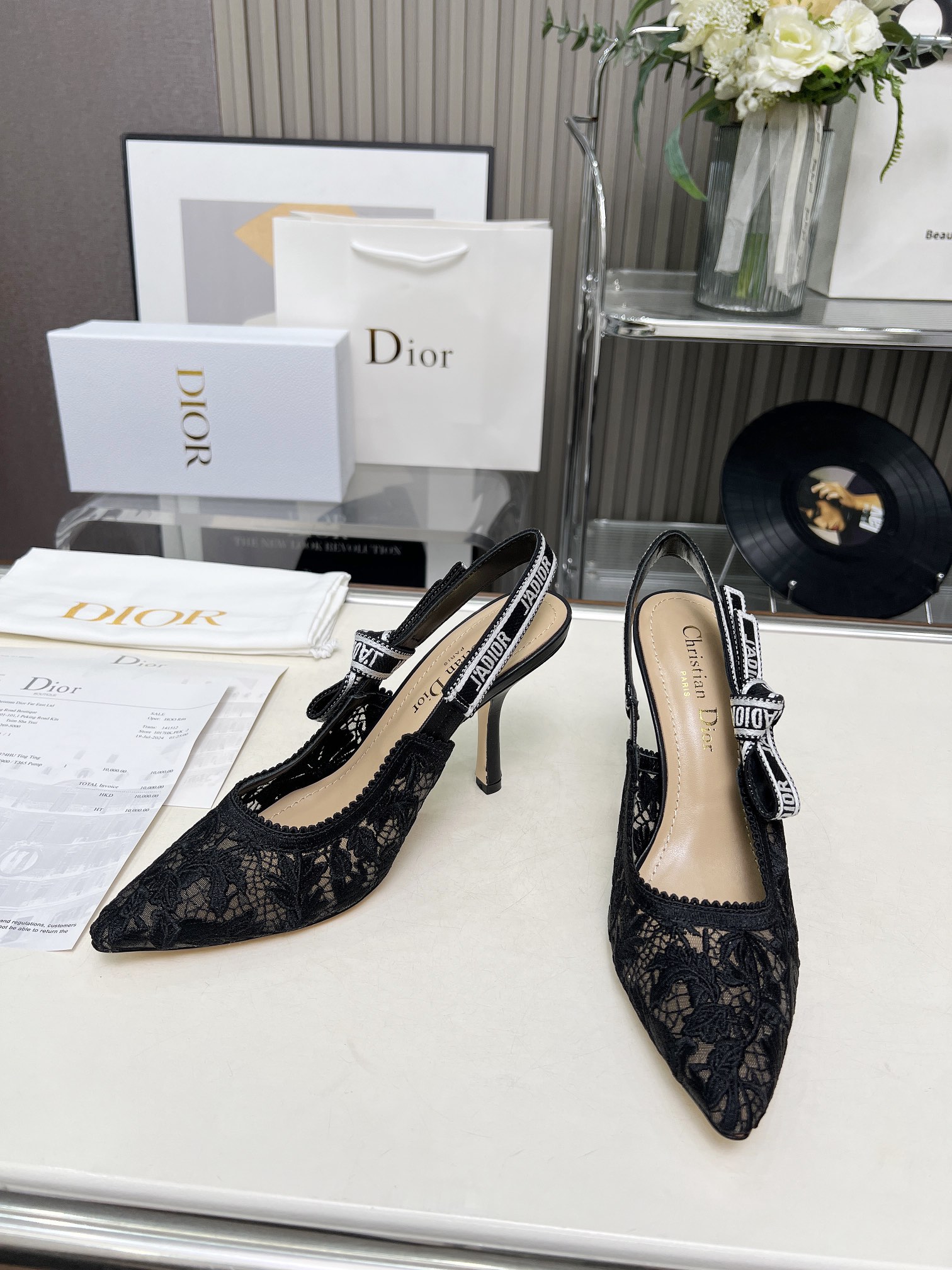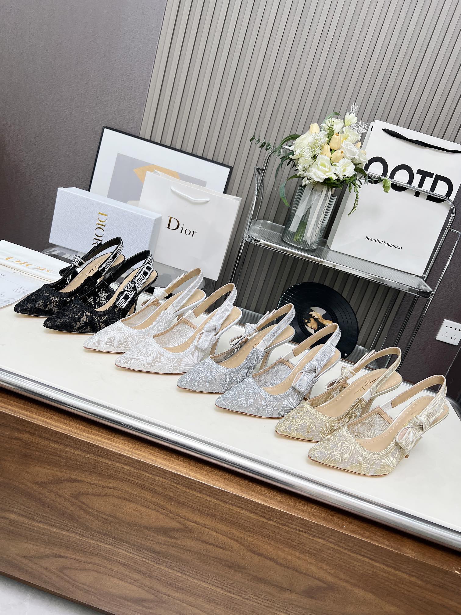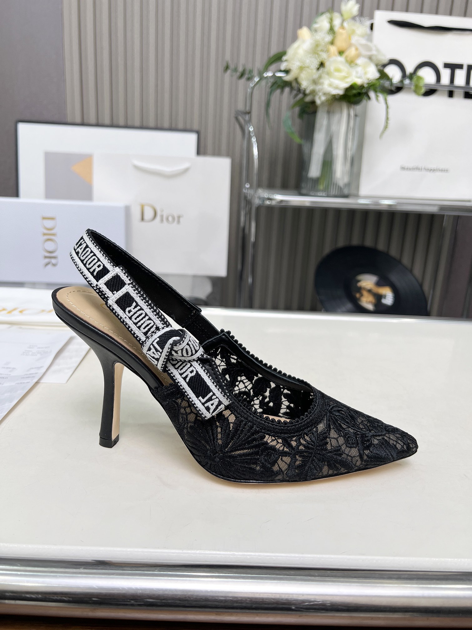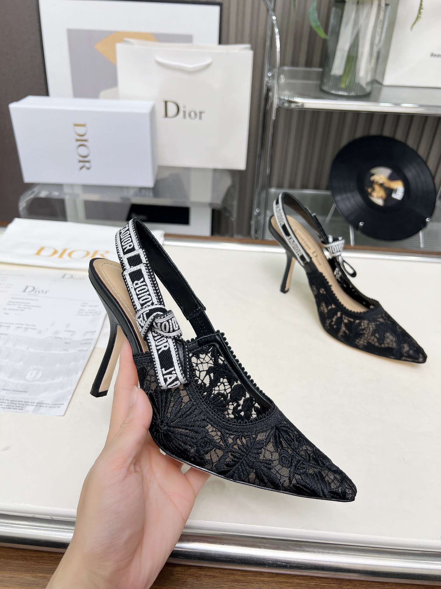 Dior Addict Lace Satin Slingback Pumps