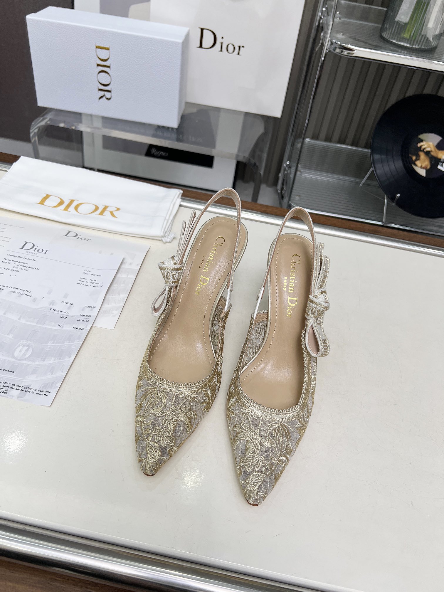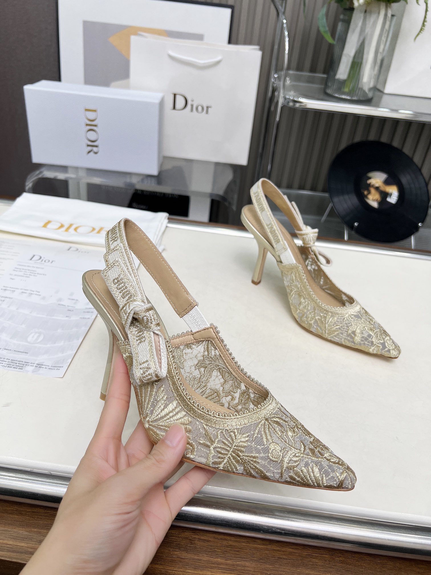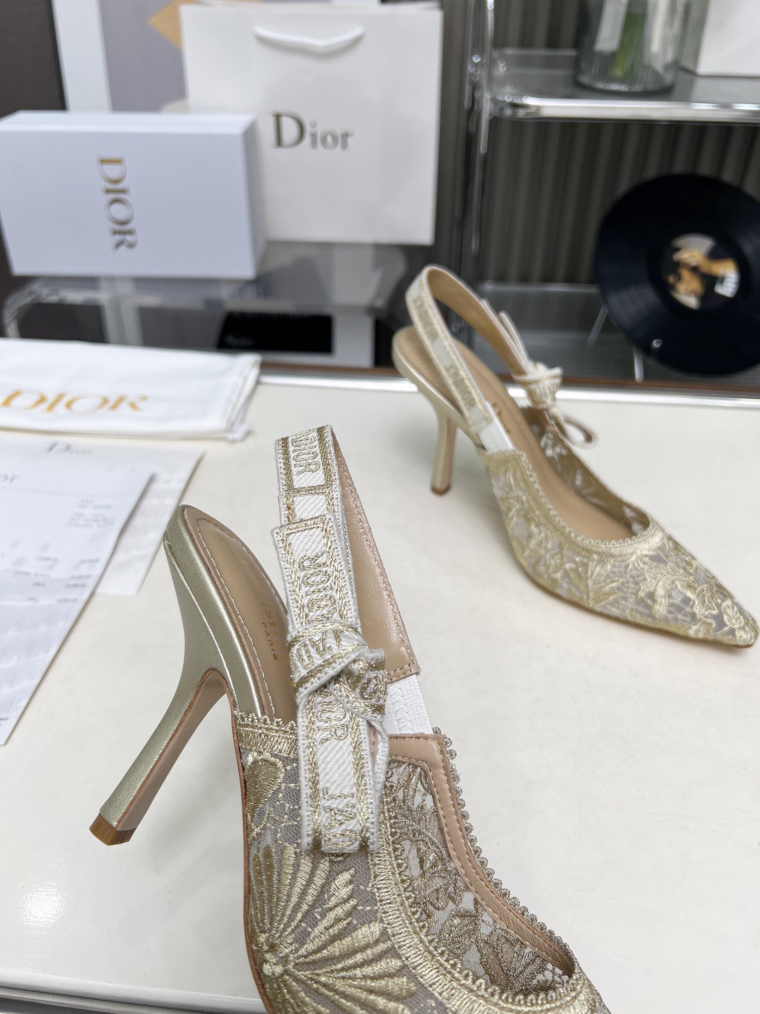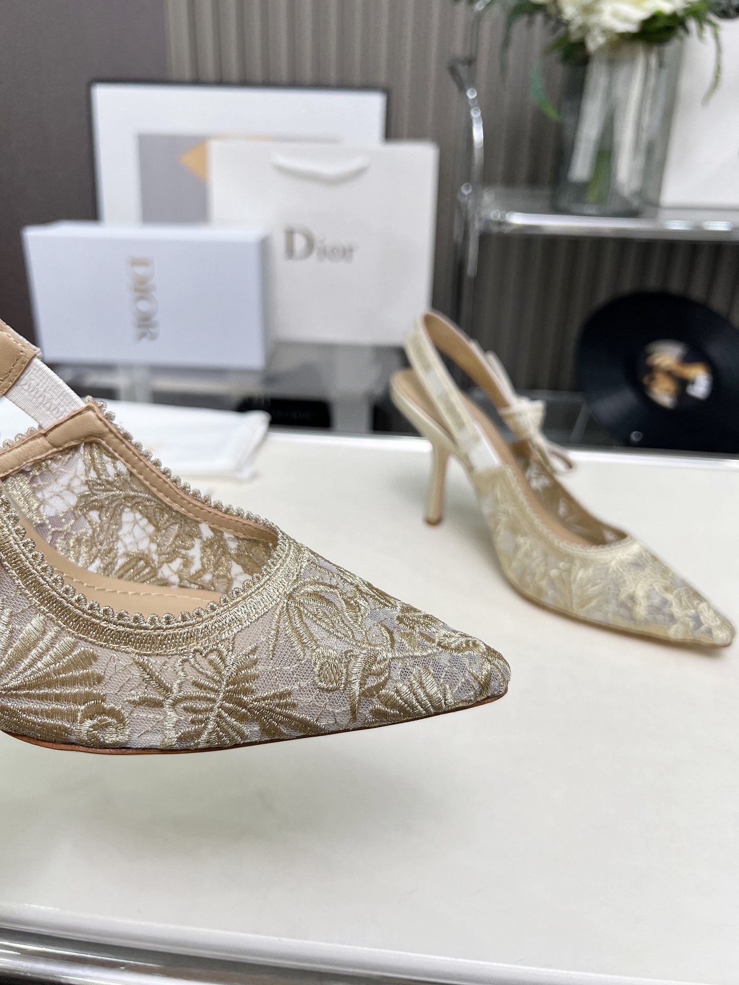 Dior Addict Lace Satin Slingback Pumps