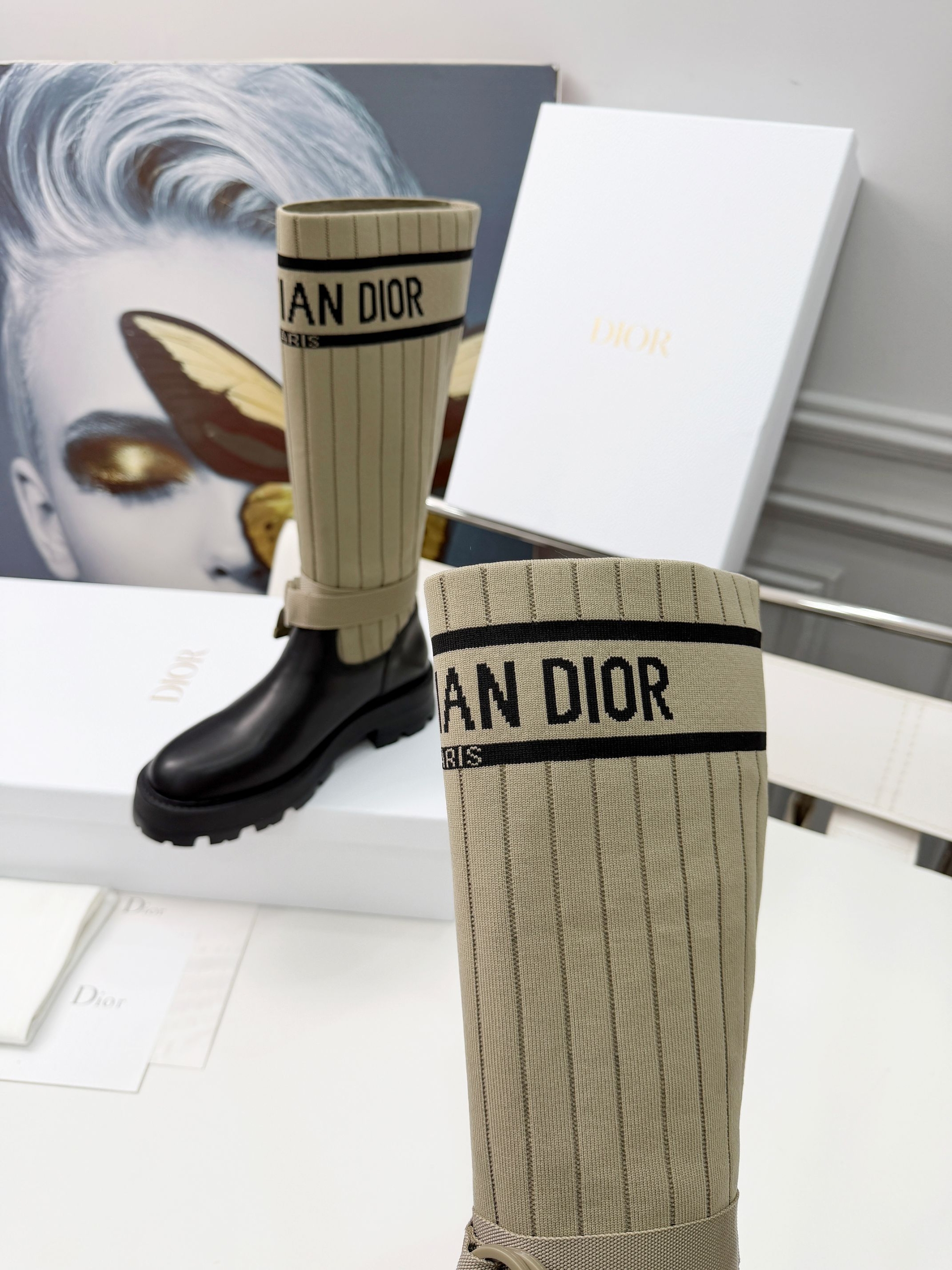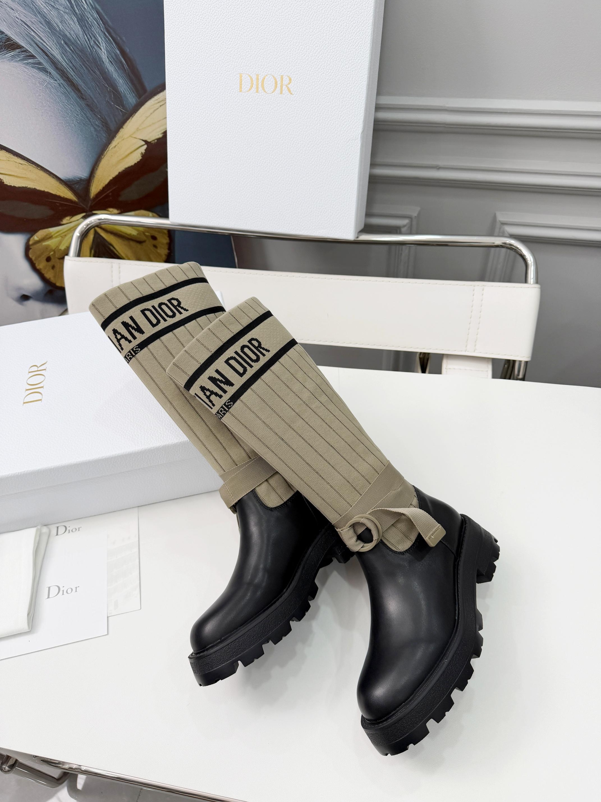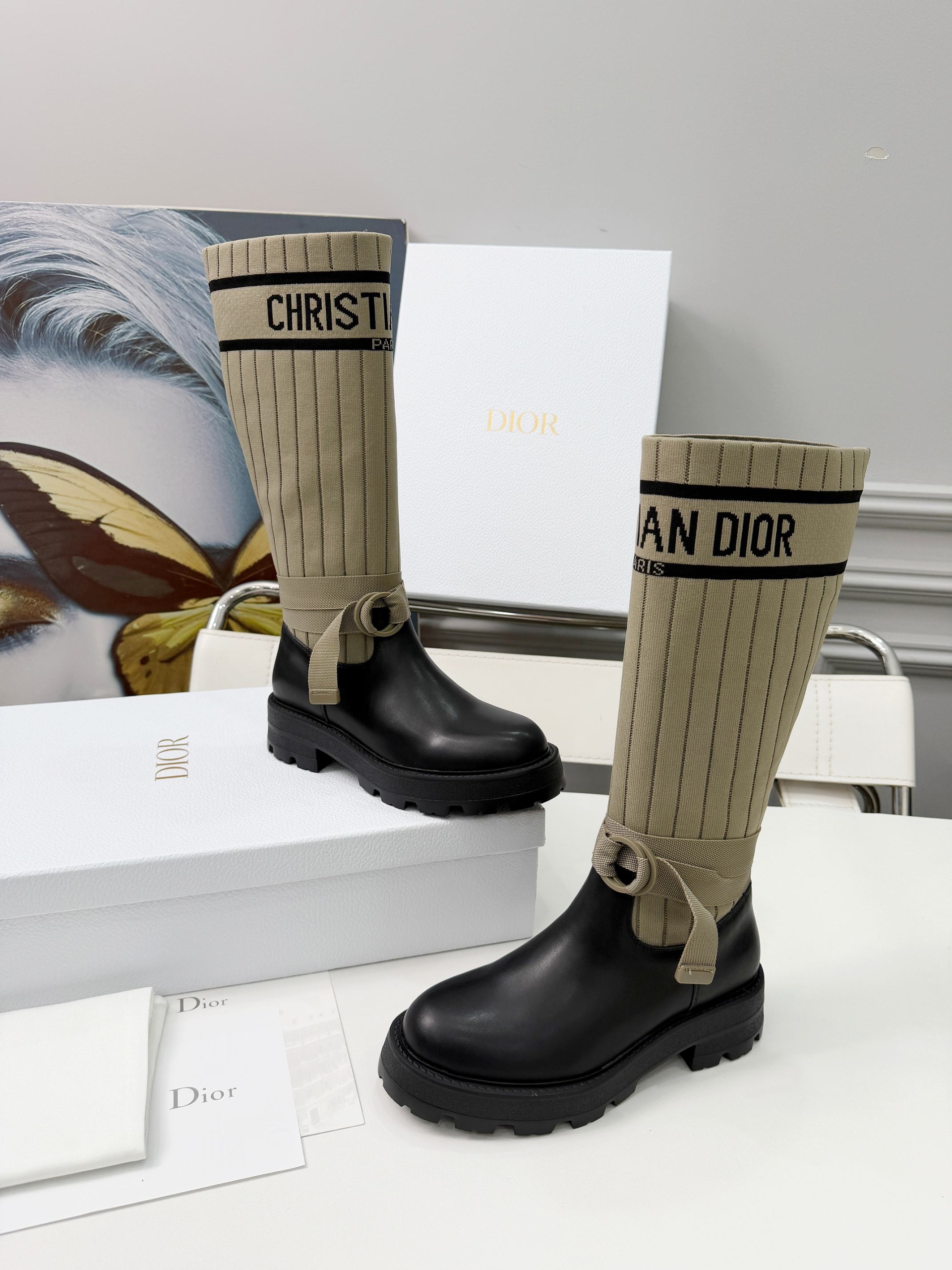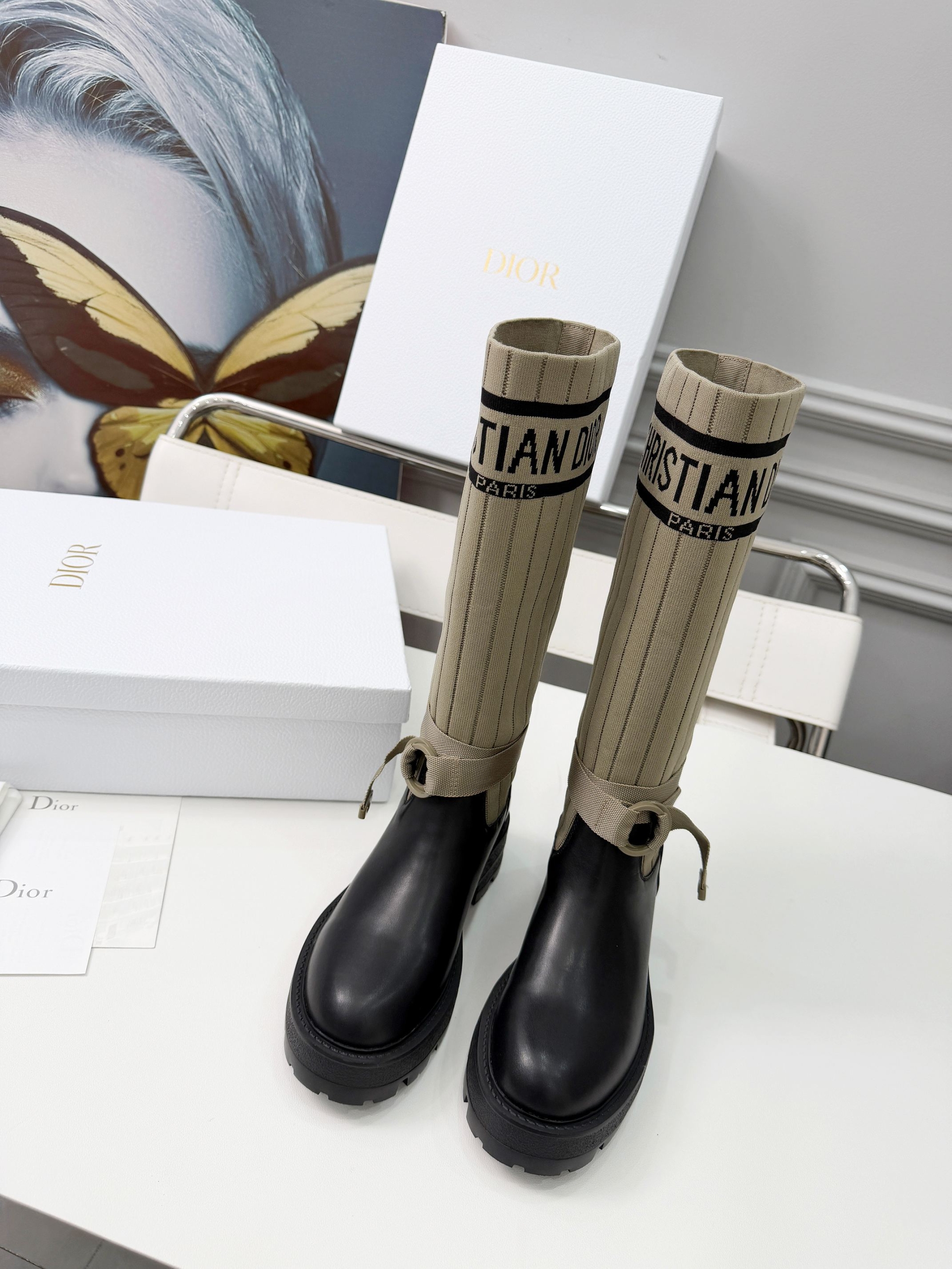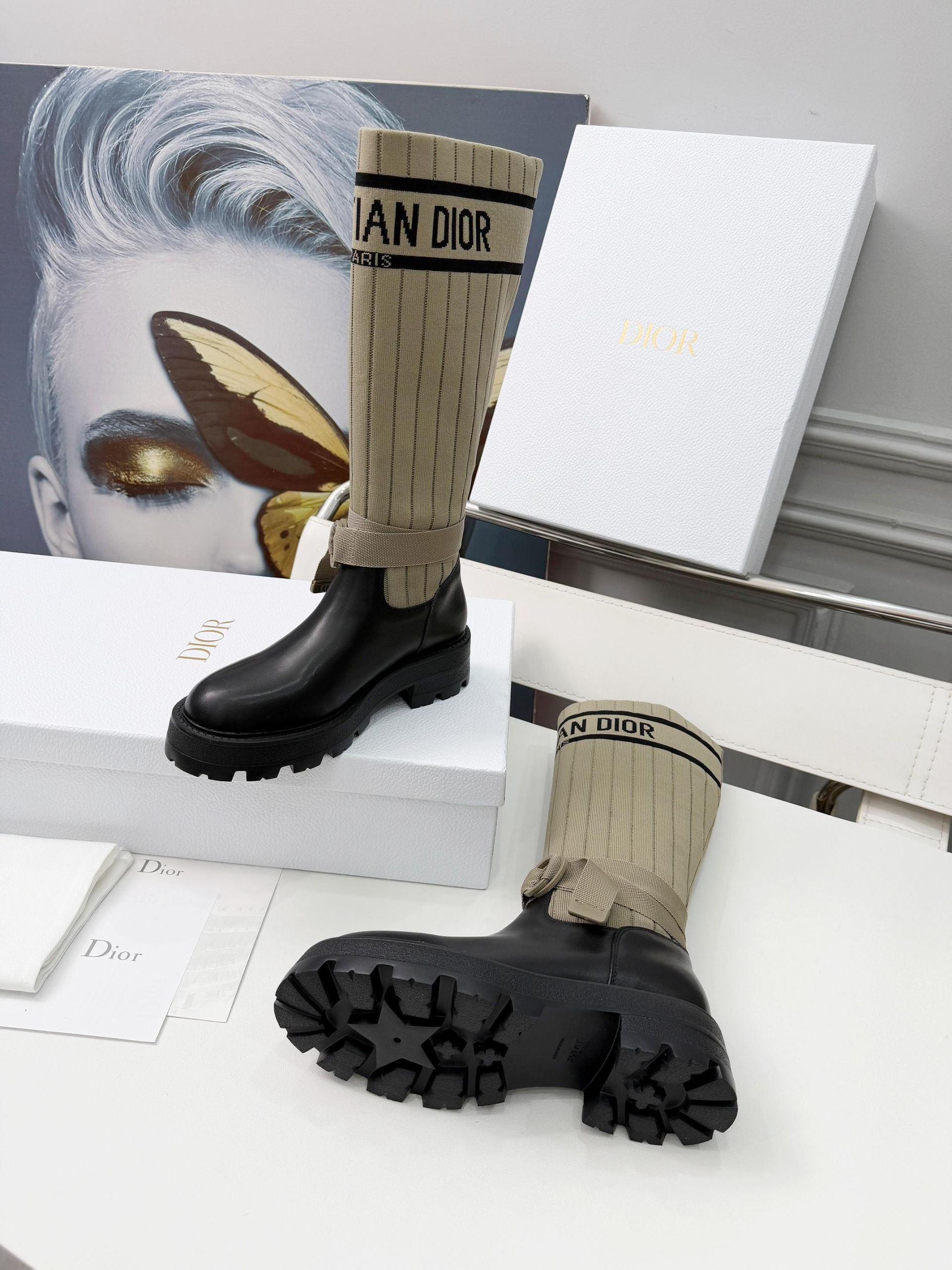 Details: Adjustable straps at the boot shaft to accommodate different leg sizes; the sole features Dior’s iconic star decoration, enhancing brand recognition.