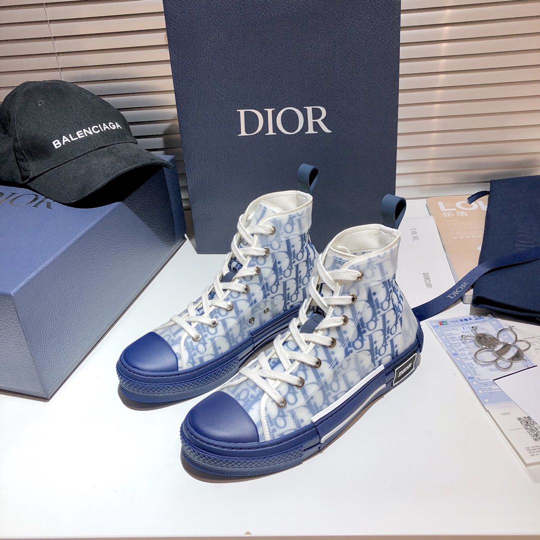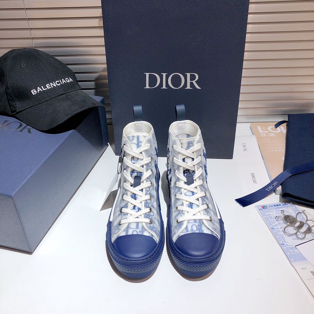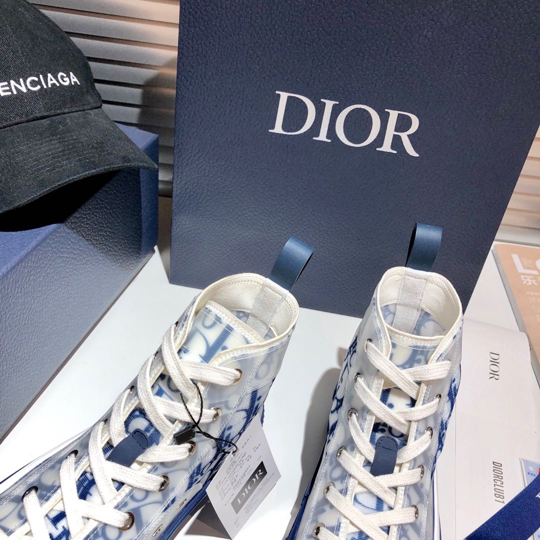 Dior B23 Oblique Blue & White Transparent High-Top Sneakers