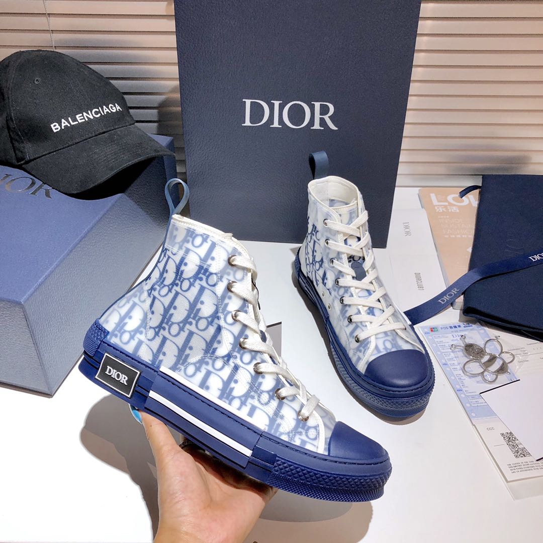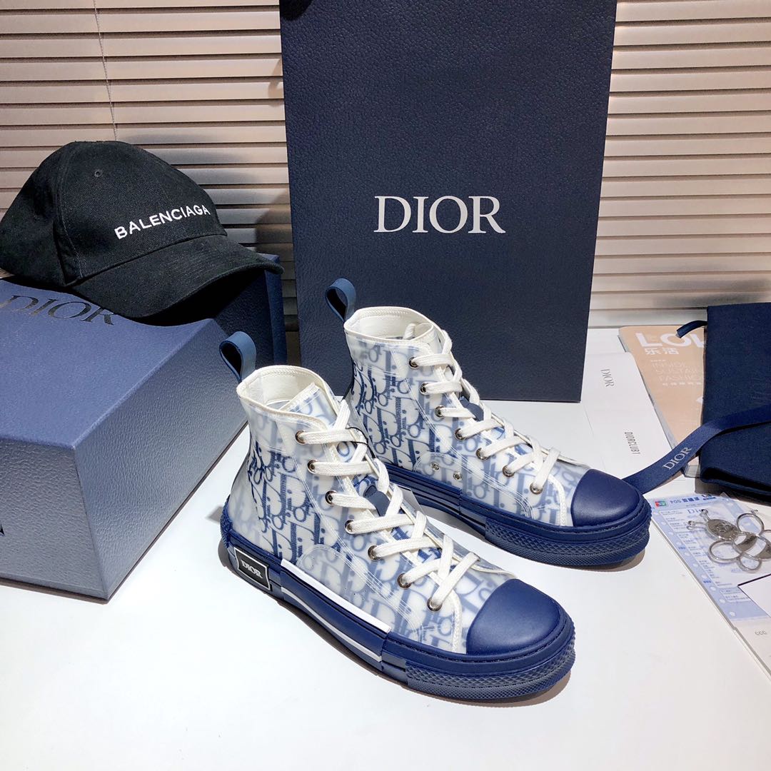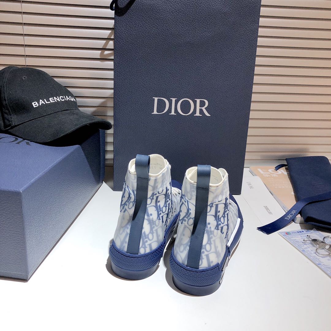 Dior B23 Oblique Blue & White Transparent High-Top Sneakers
