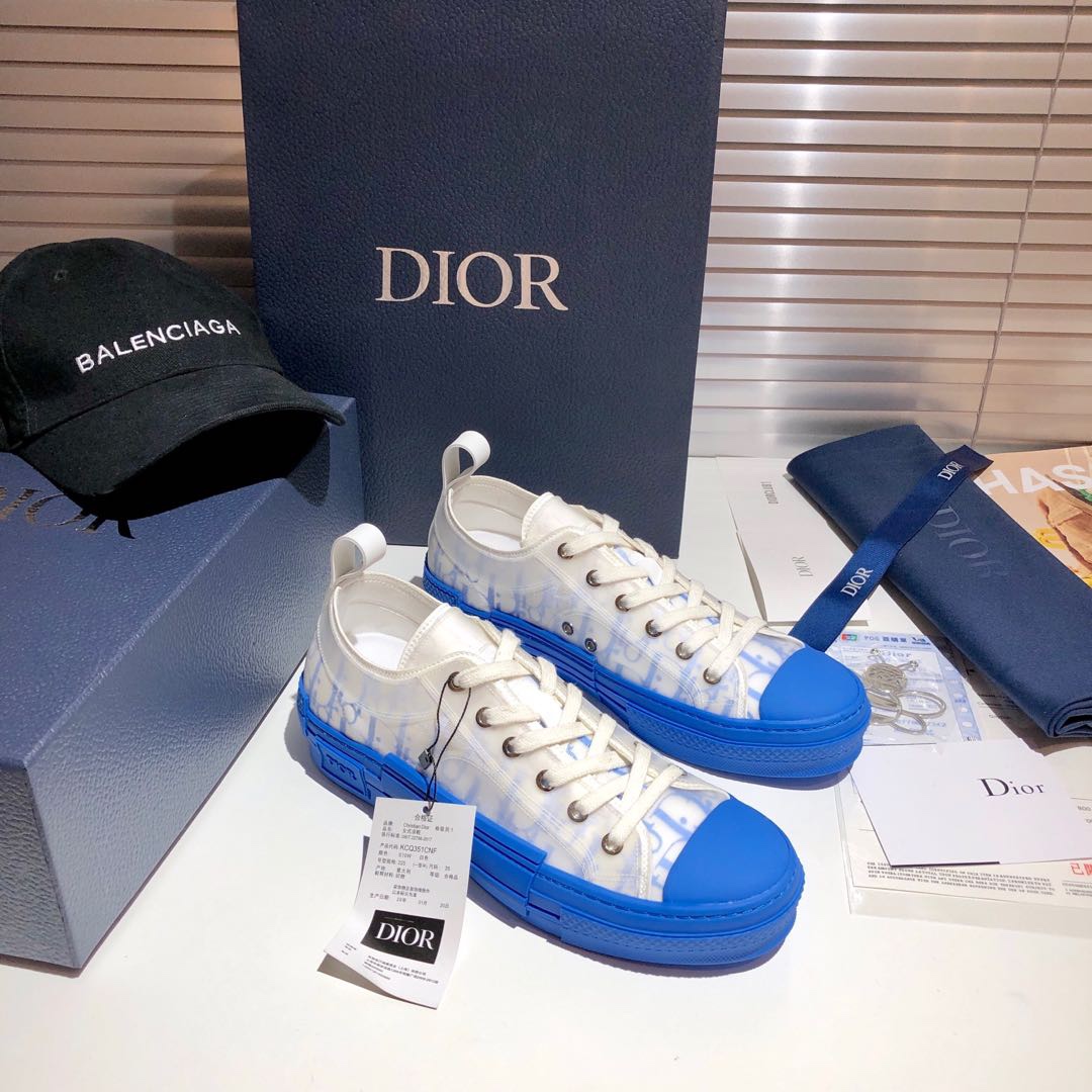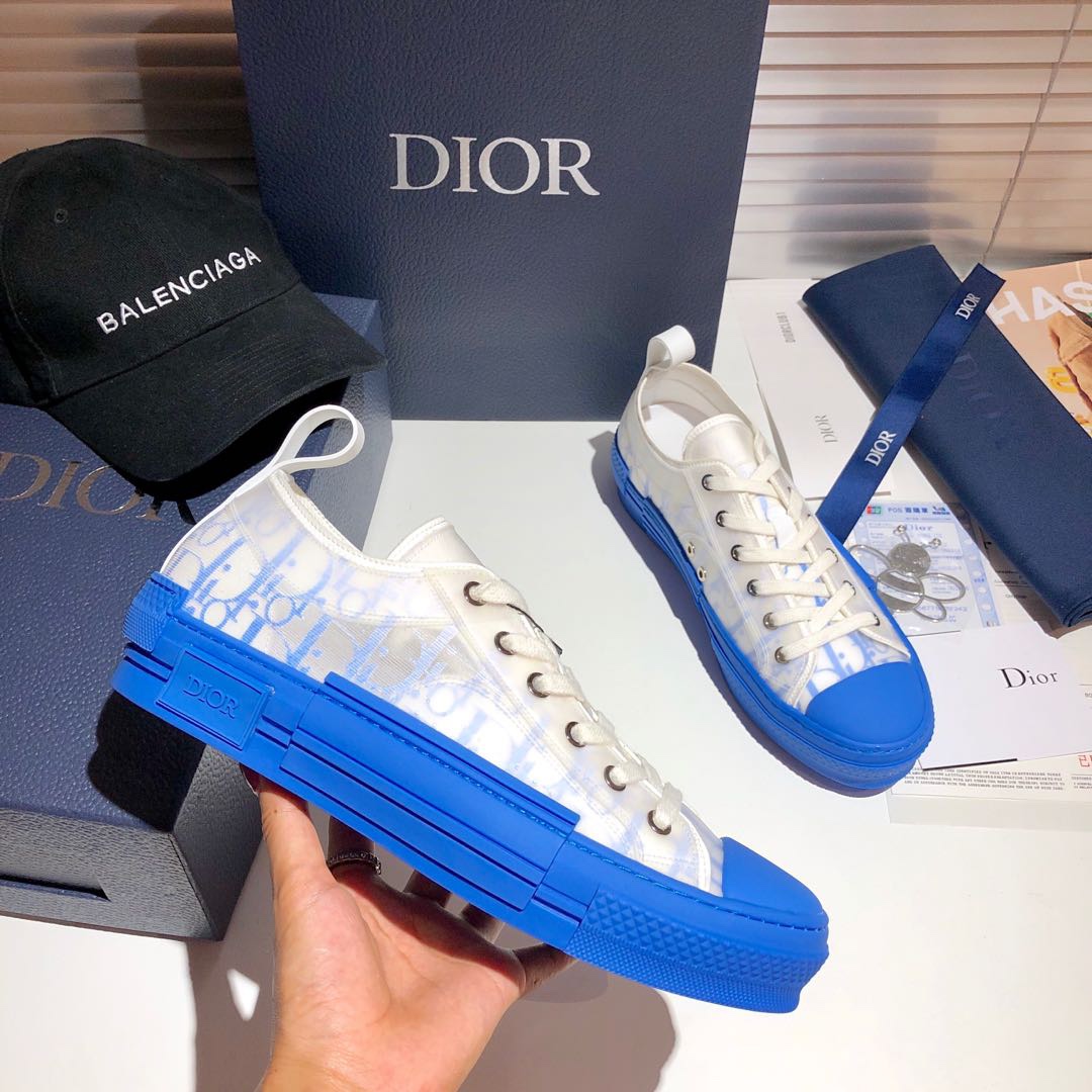 Dior B23 Oblique Transparent Blue & White Low-Top Sneakers
