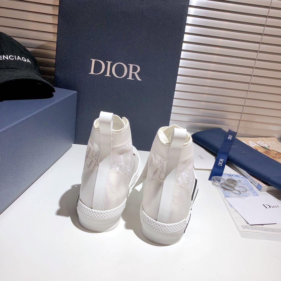 Upper: Made of fully transparent mesh material, featuring an all-over Dior “Oblique” monogram print (pure white), offering understated brand recognition through its transparency; the shoe body is adorned with silver metallic eyelets, showcasing exquisite yet subtle details.