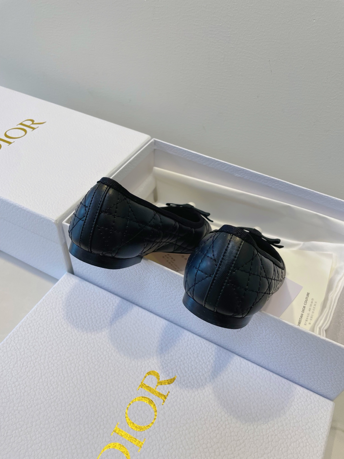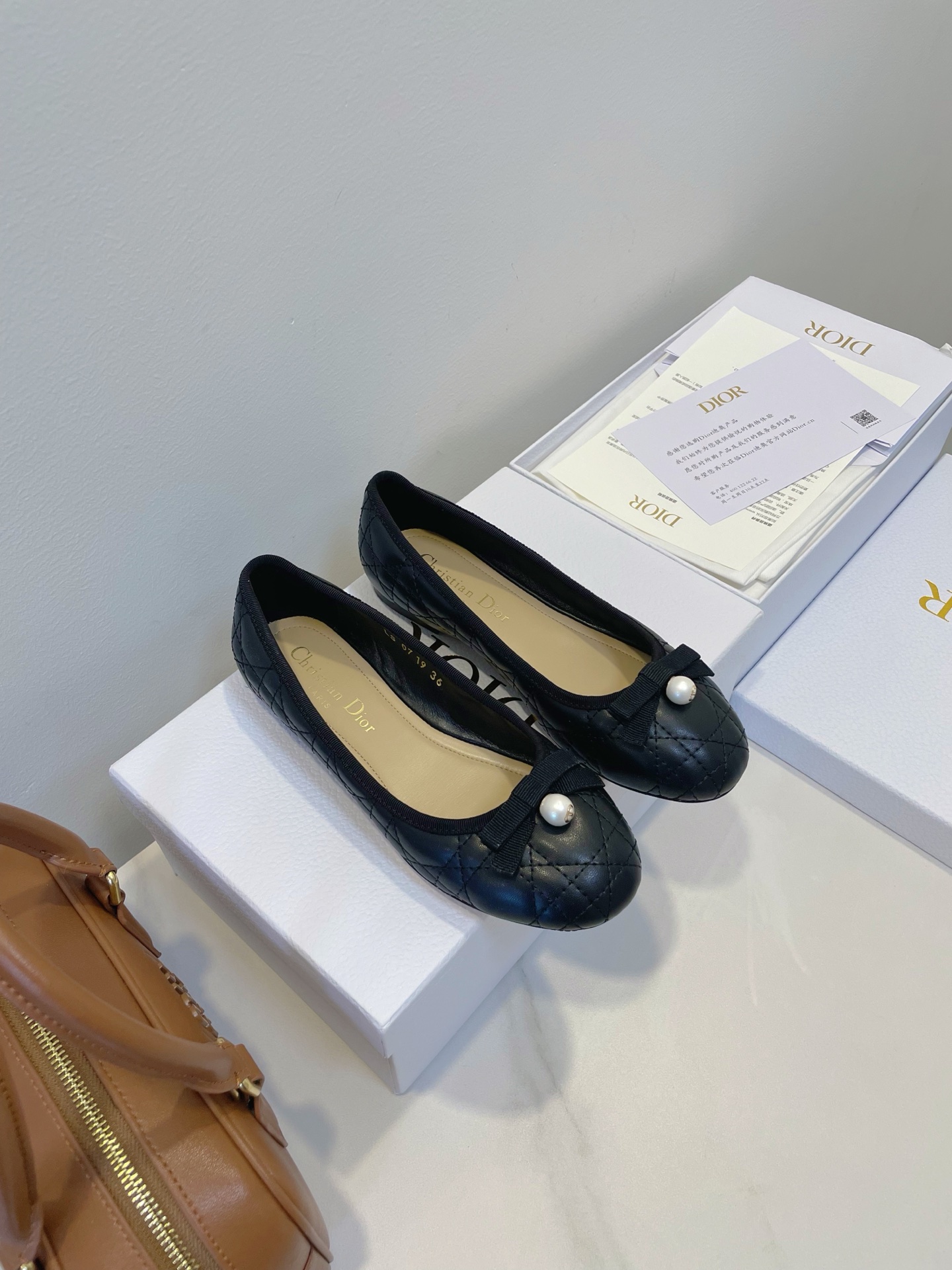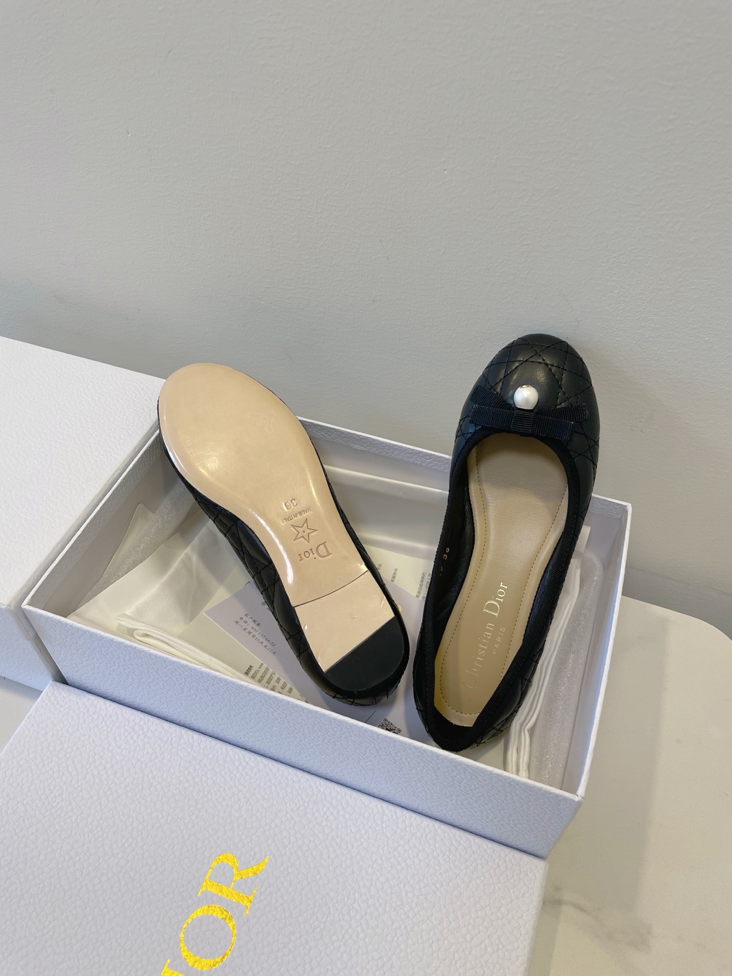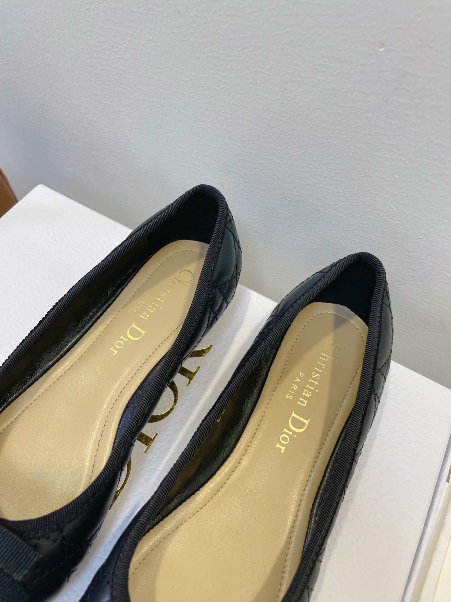 Embellishing: A matching bow at the toe, centered with a pearl buckle (a signature Dior element), combining elegance and sophistication.