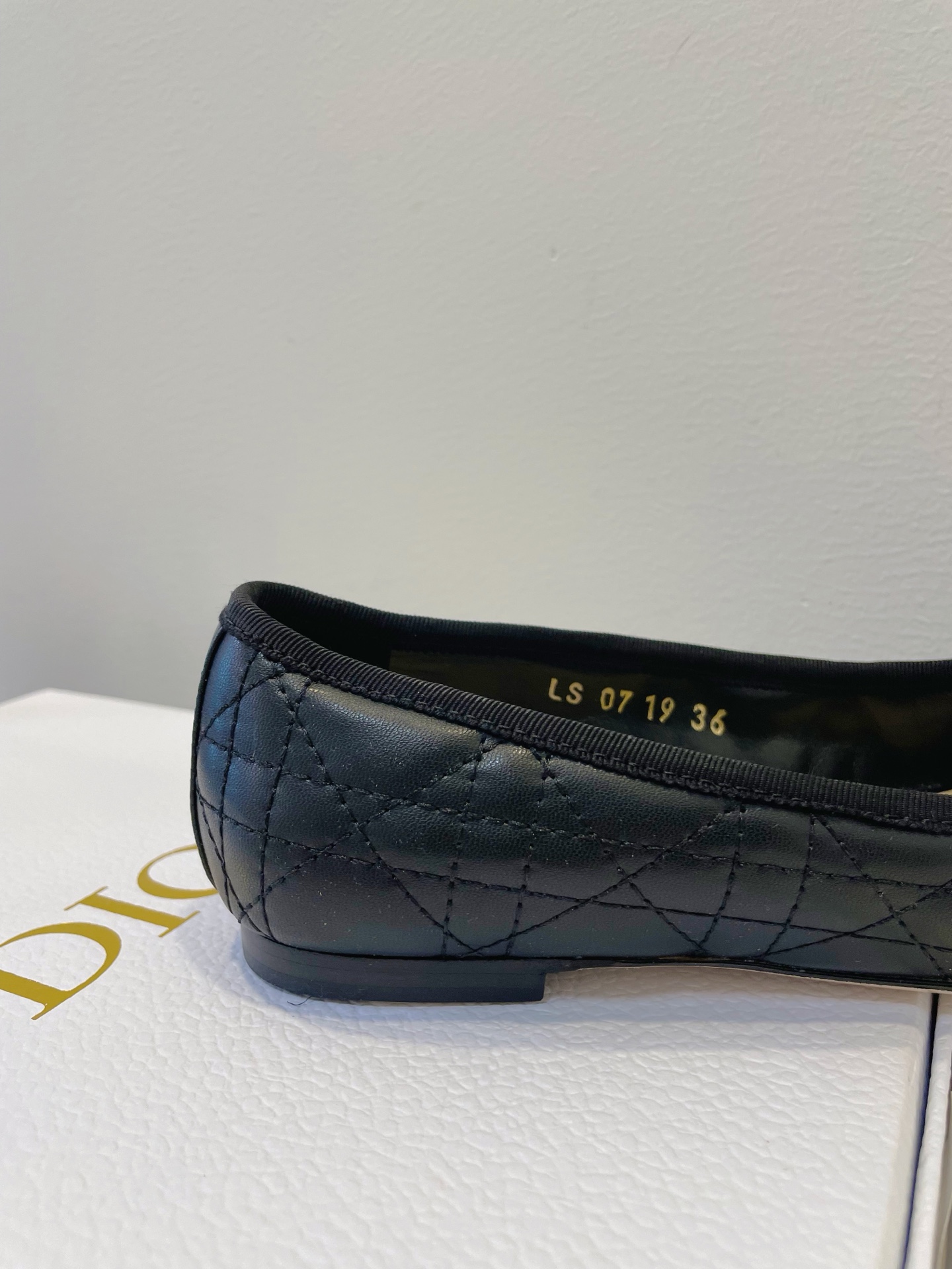 Upper: Crafted from nude black lambskin with Dior’s signature diamond quilting, resulting in a delicate texture and soft touch.