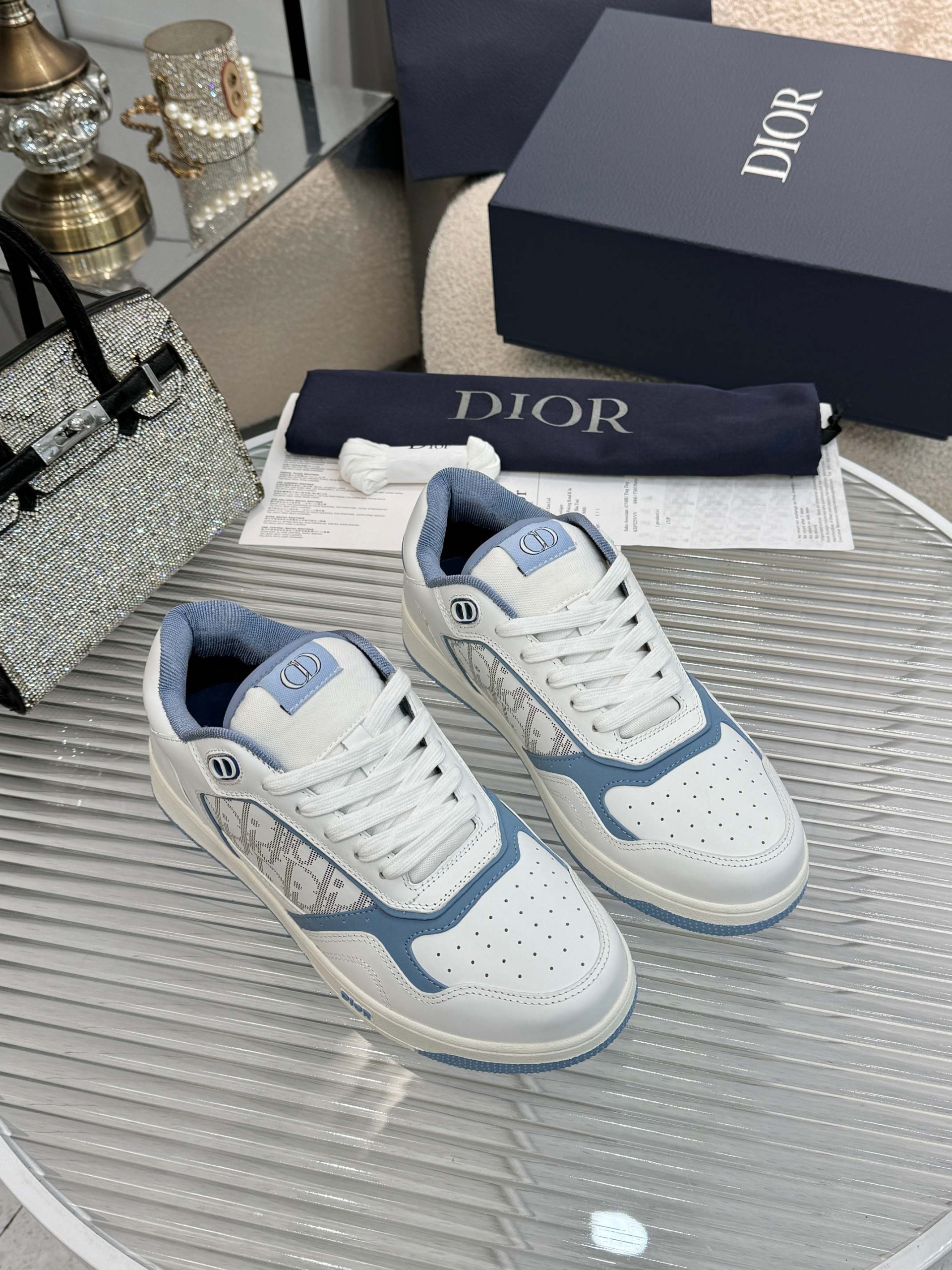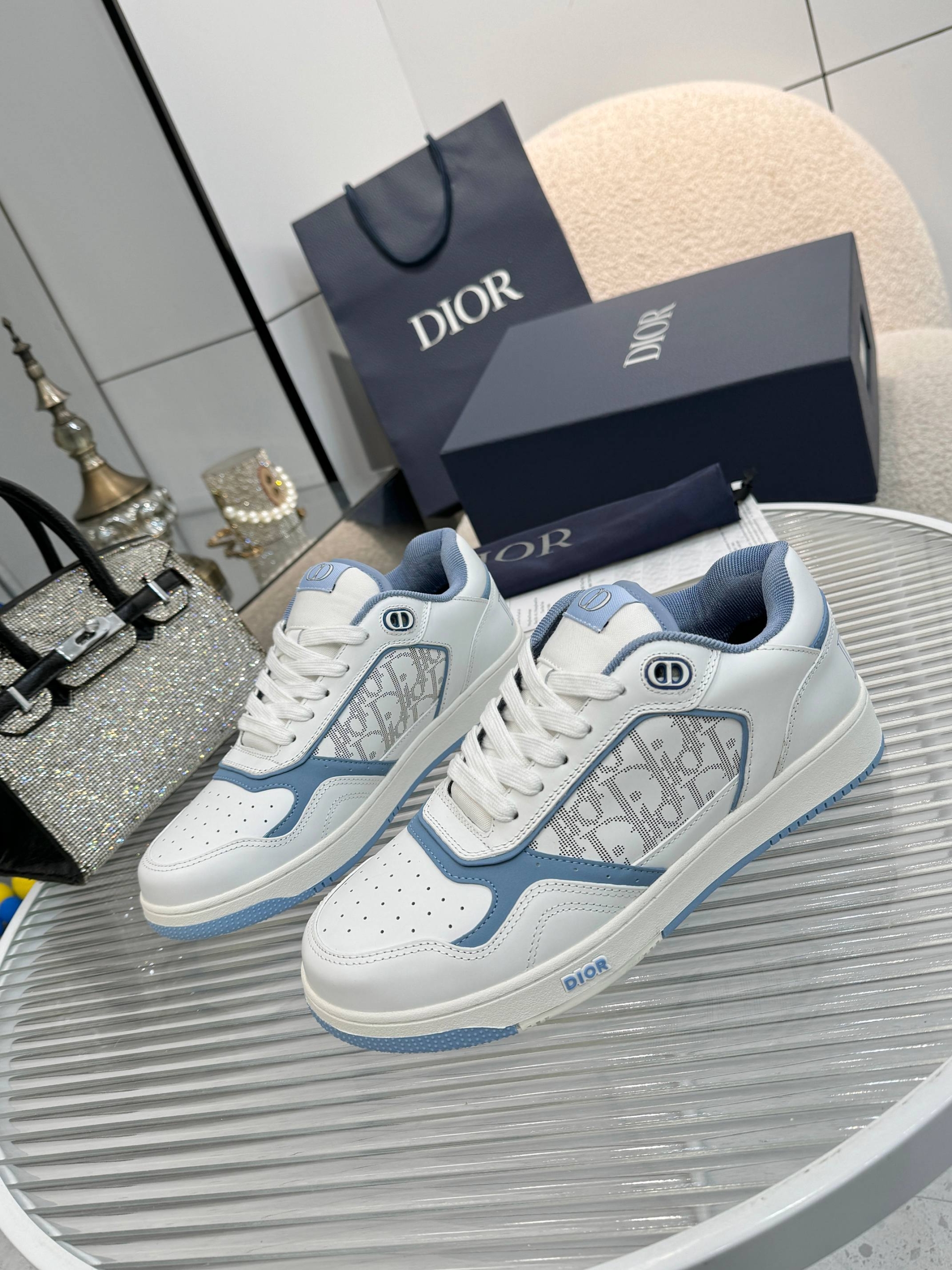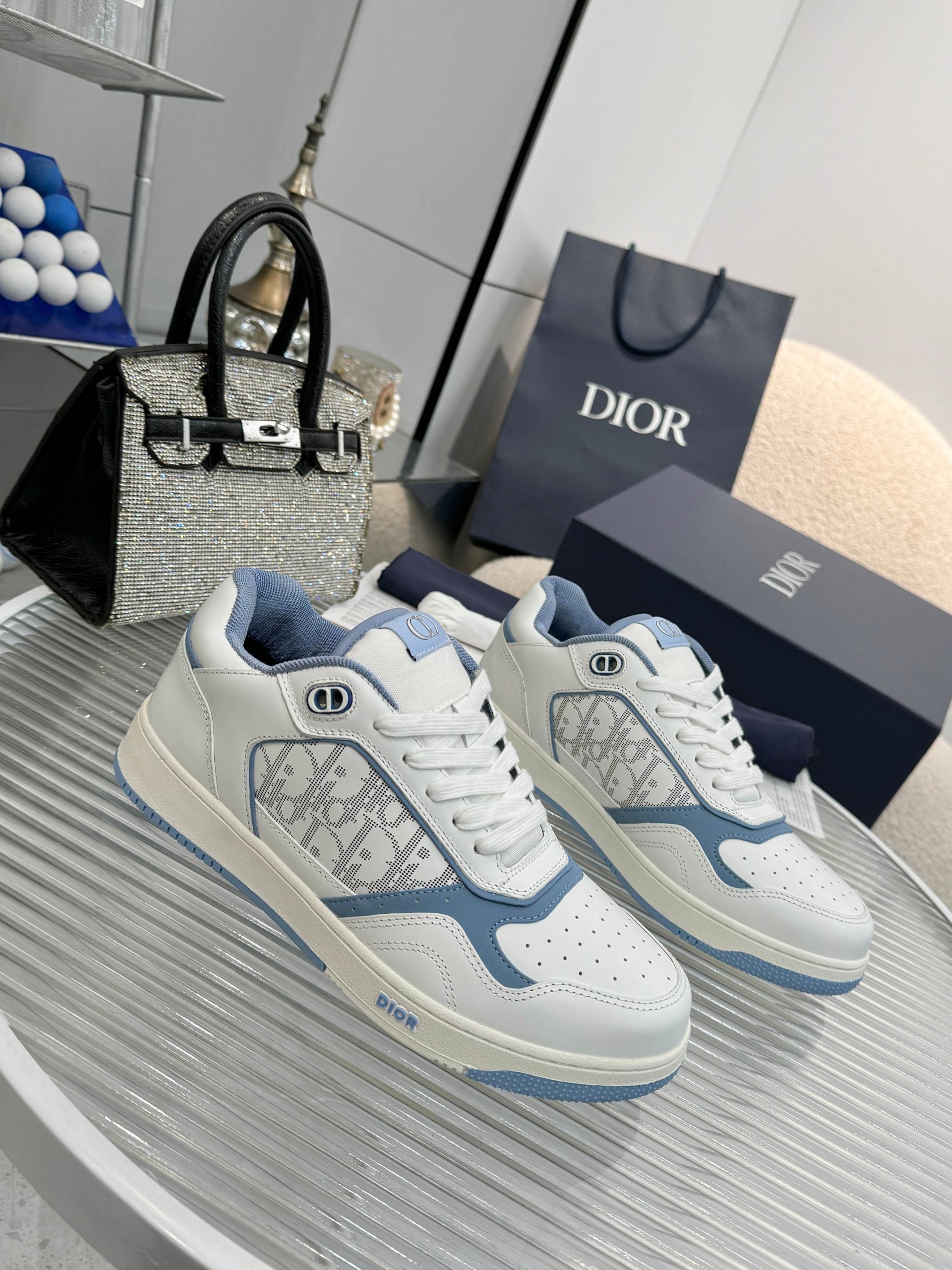 🔘Material: Original custom-made top-grade silk smooth cowhide, nubuck leather, Dior logo monogram fabric, color-blocked design