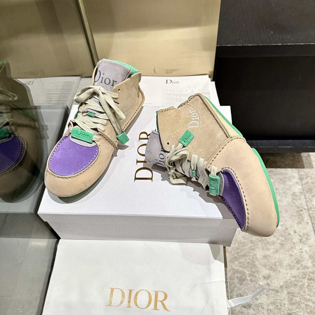 $114.55Design Highlights: The shoe features Dior’s iconic “Oblique” monogram pattern on the side (in the grey and white colorway), and the “CD” logo on the tongue and heel. The upper is constructed from calfskin and mesh, paired with a white rubber sole, creating a “minimalist luxury” sneaker look.