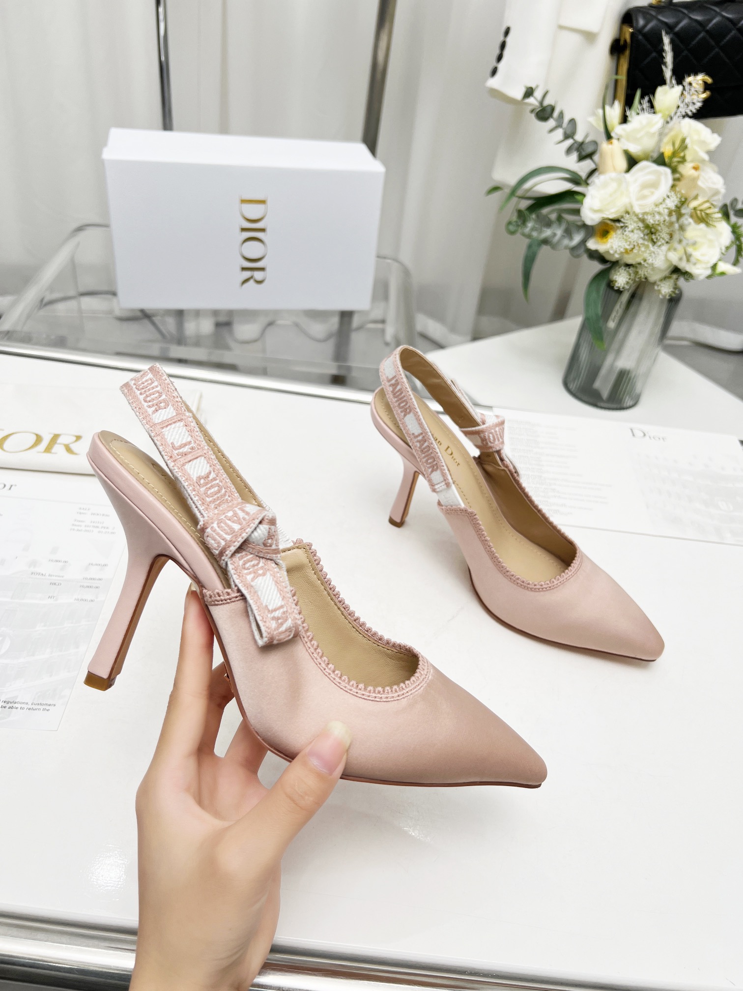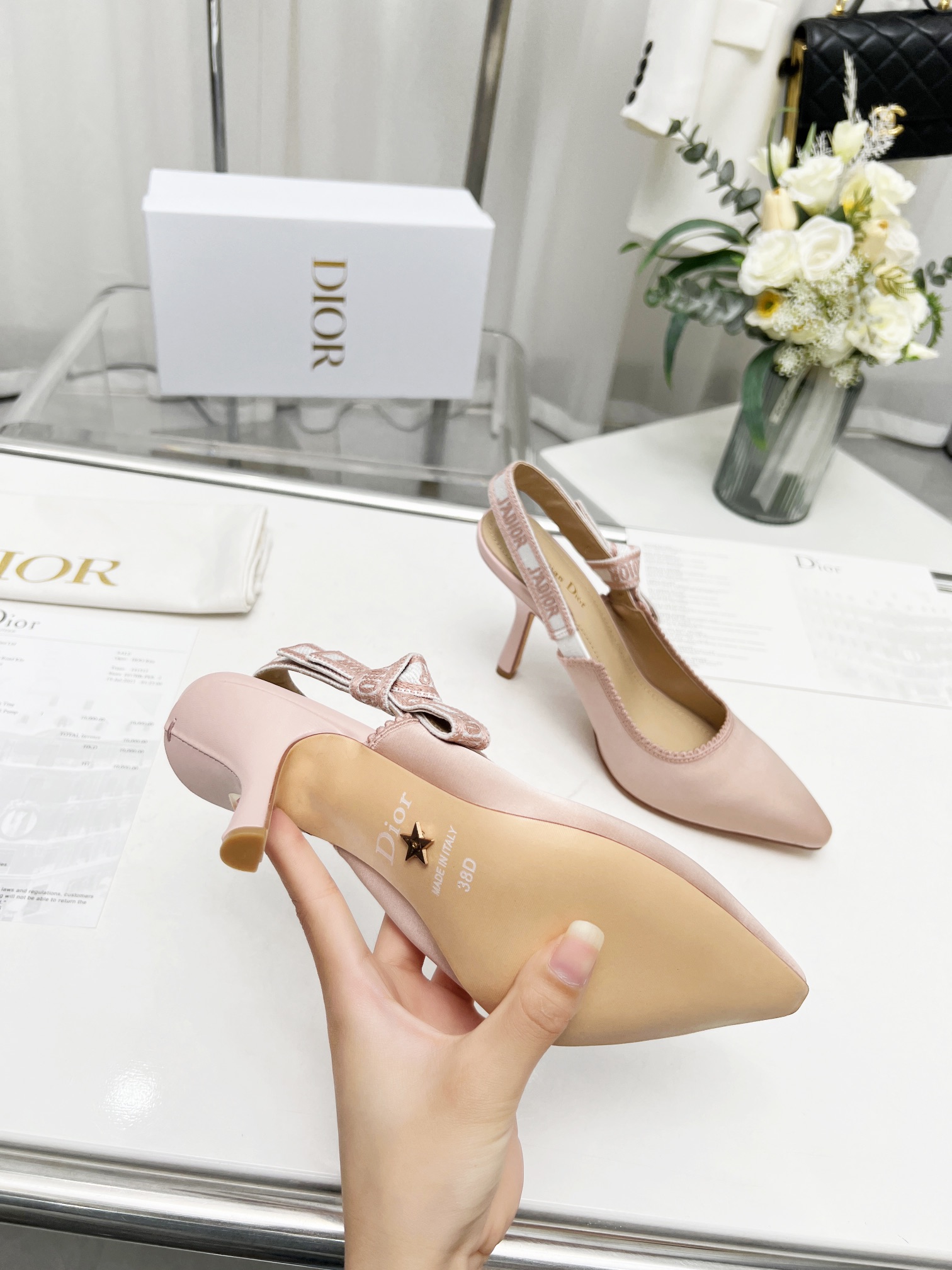 Upper: Made of black lace mesh with delicate, sheer patterns, paired with a black and white “J’Adior” logo webbing (with a bow embellishment), creating a gentle yet distinctive style;