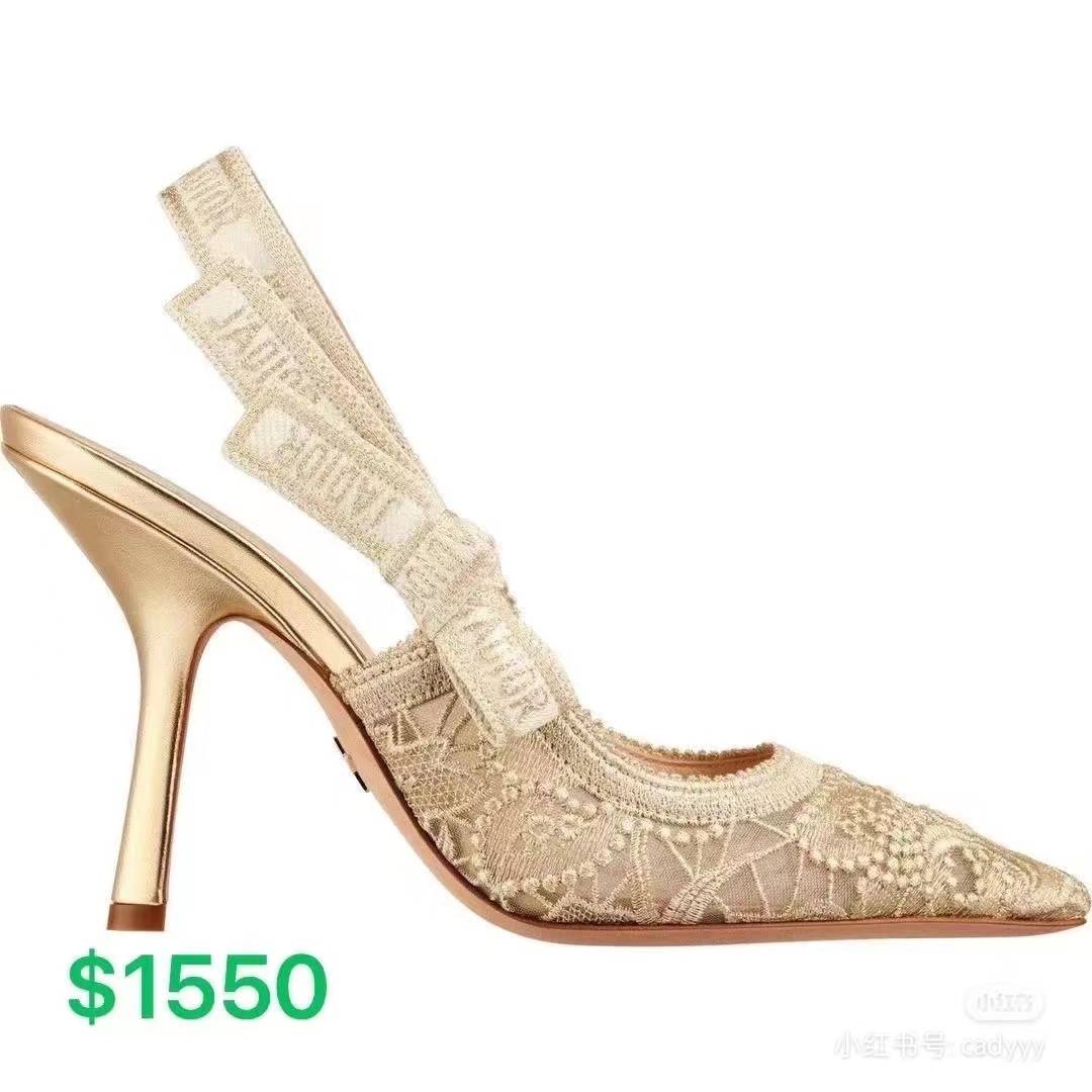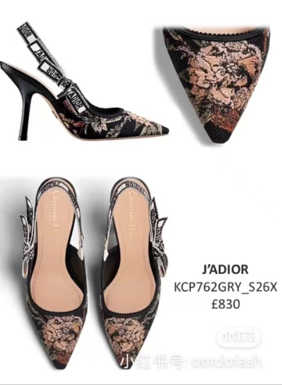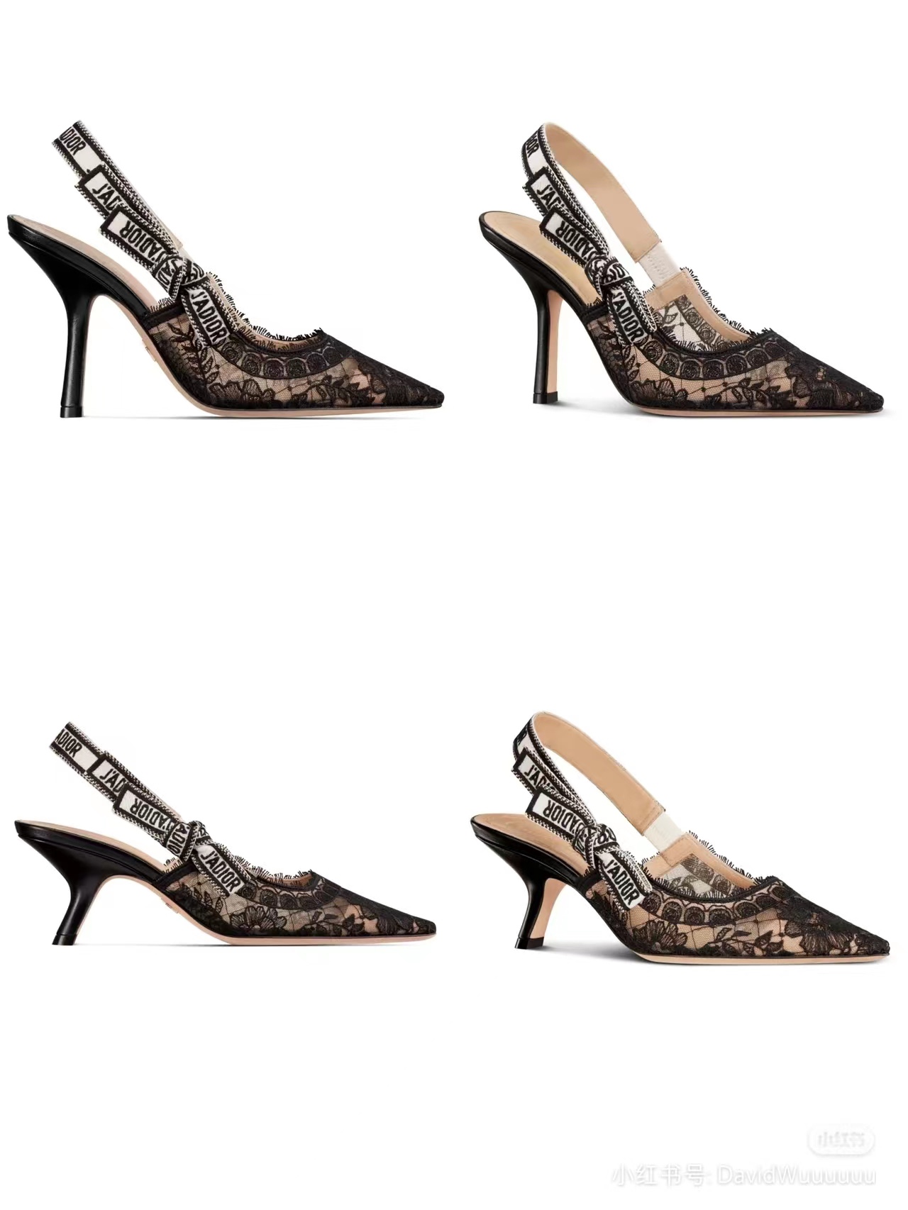 Upper: Made of black lace mesh with delicate, sheer patterns, paired with a black and white “J’Adior” logo webbing (with a bow embellishment), creating a gentle yet distinctive style;